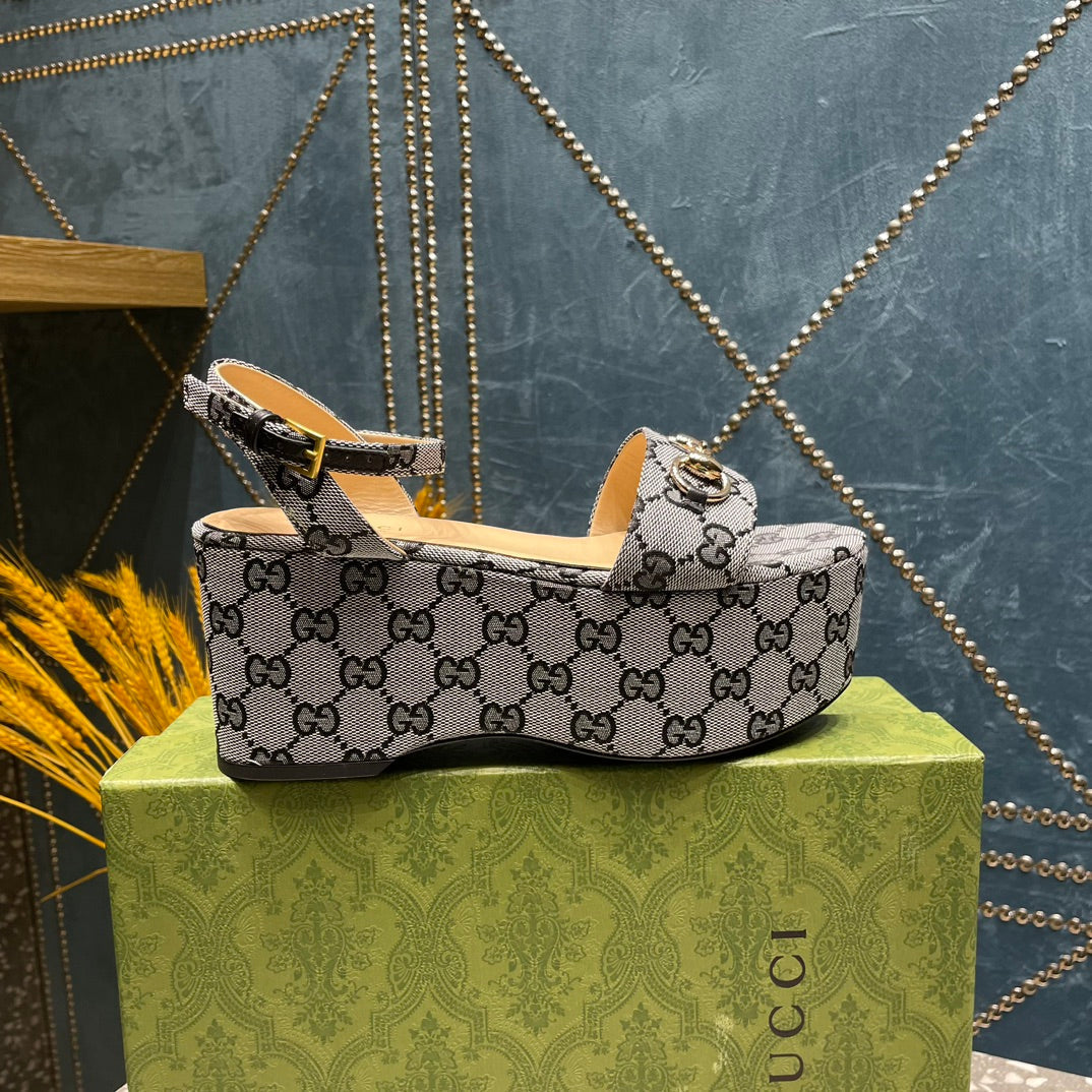 GG HORSEBIT FLATFORM SANDAL LEAD CALFSKIN