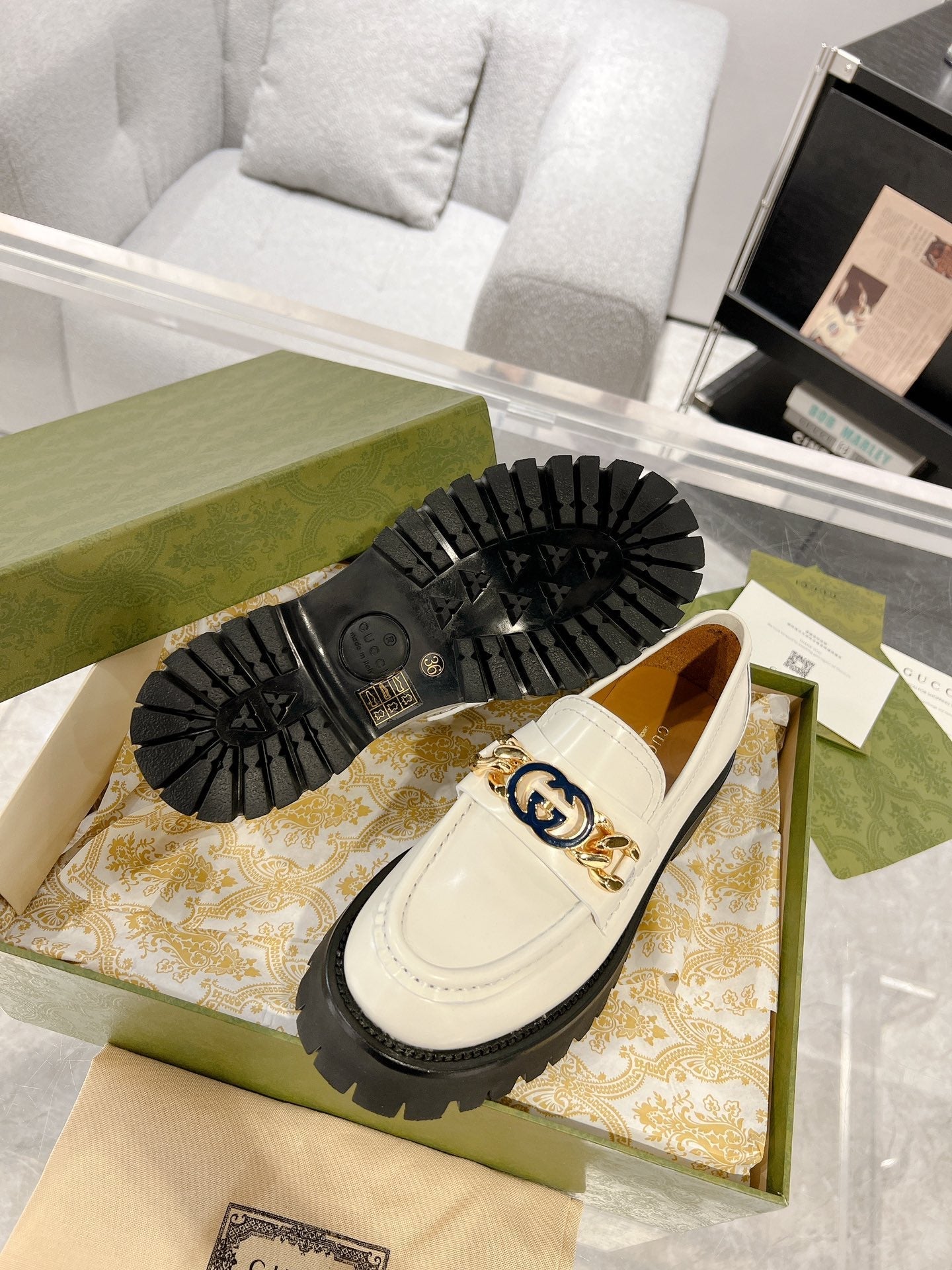 GG LOAFER WITH GG CHAINS WHITE CALFSKIN