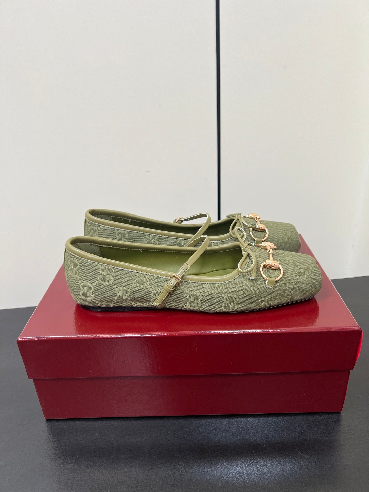 GG MARY JANE 25S IN MOSS GREEN CANVAS WITH GOLD HARDWARE