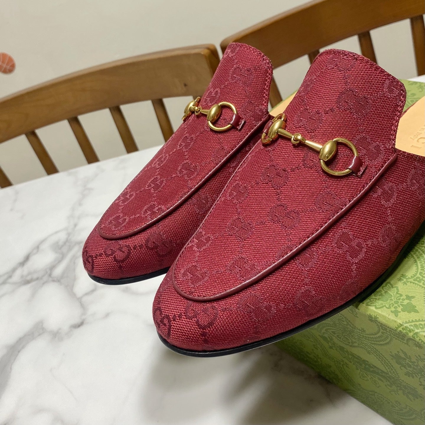 GG MULES IN RED FABRIC GOLD HARD WARE