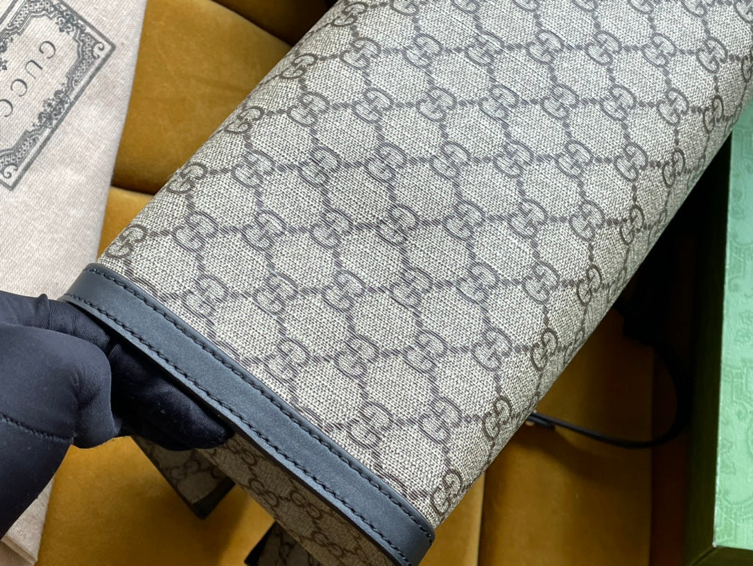 GG PADLOCK LARGE 35 SHOULDER BAG BEIGE CANVAS AND BLACK CALFSKIN