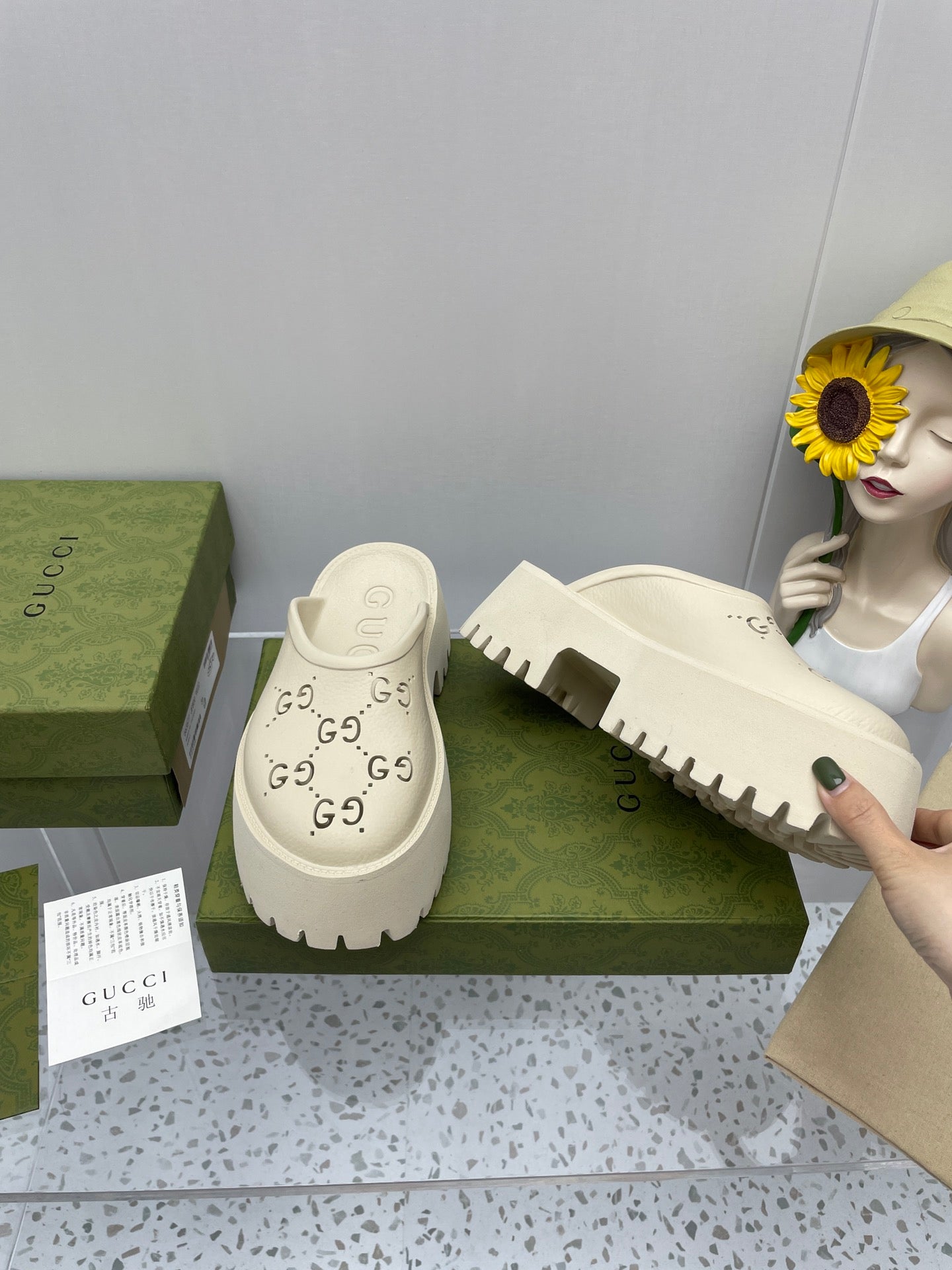 GG PLATFORM PERFORATED G 55 SANDAL CREAM IP FOAM