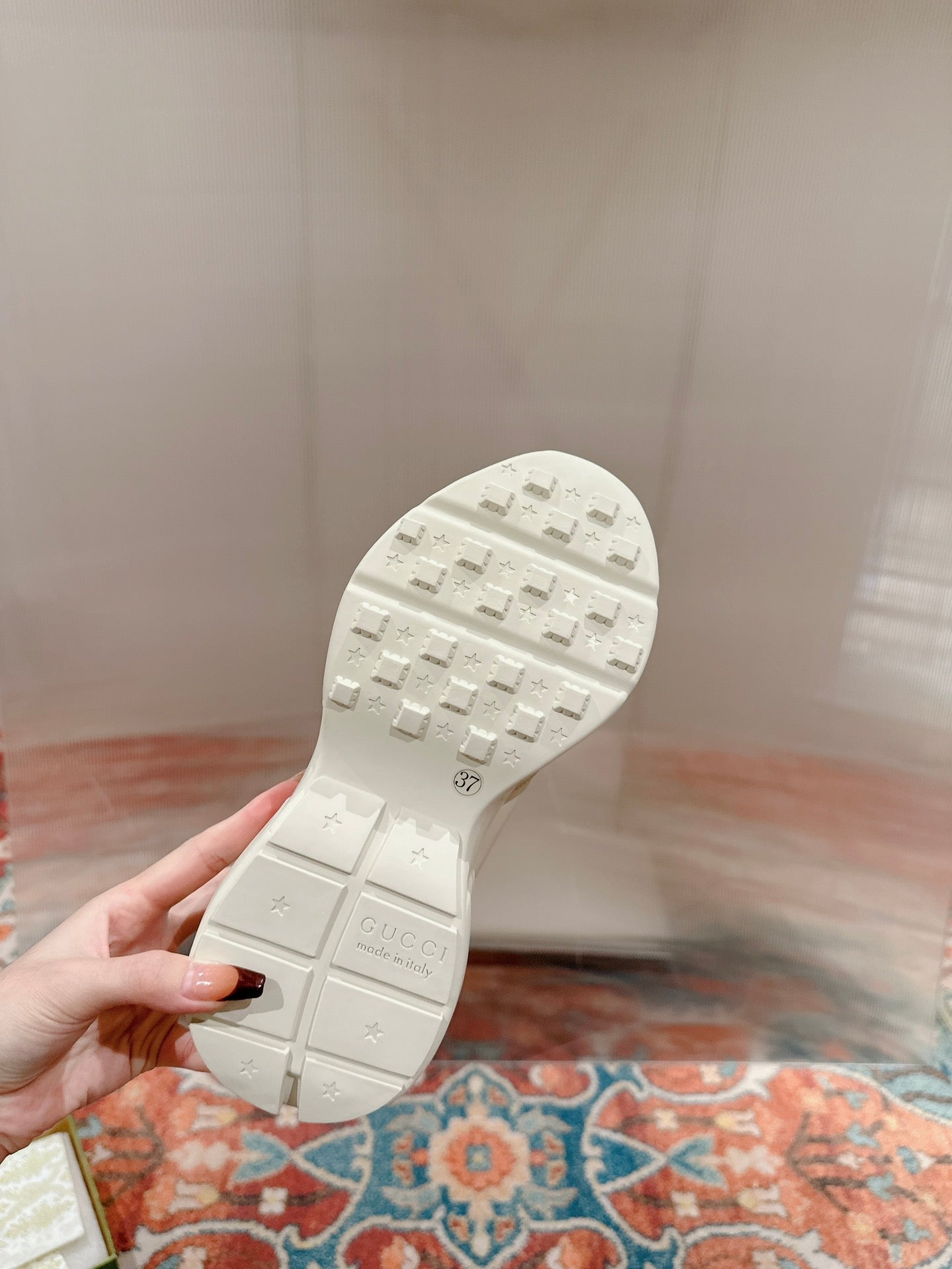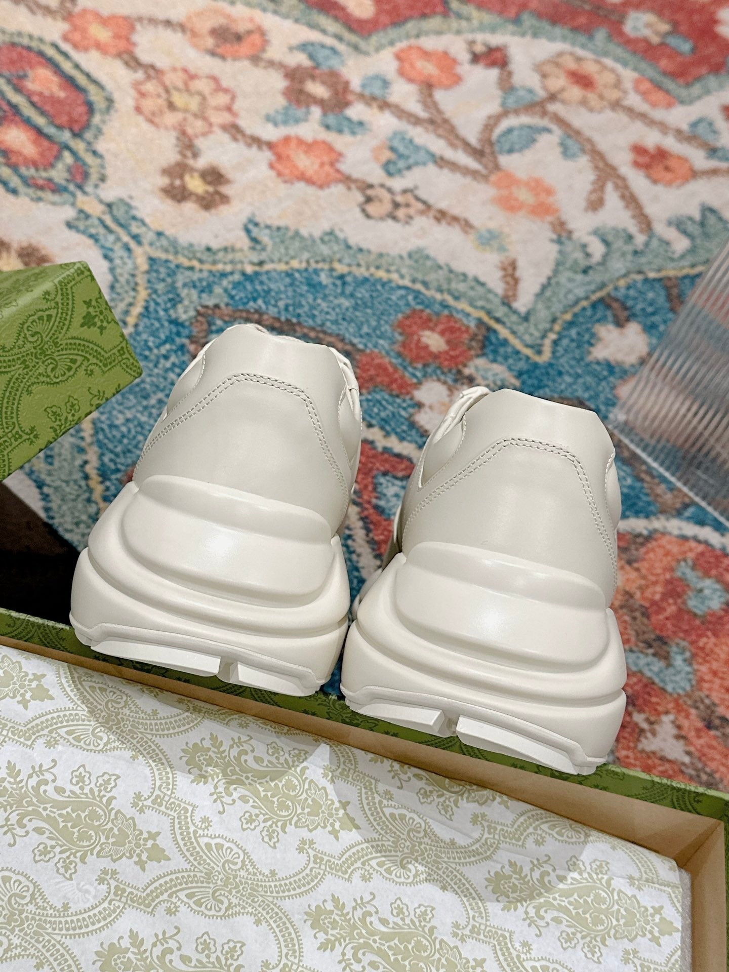 GG RHYTON TRAINER WHITE CALFSKIN WITH NAVY LOGO