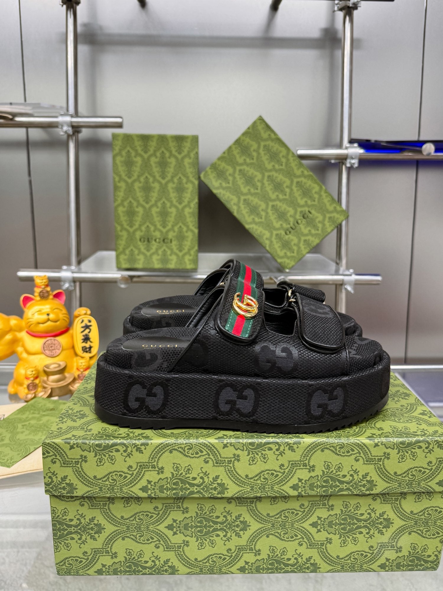 GG SANDALS 22 IN BLACK FABRIC WITH GOLD HARDWARE