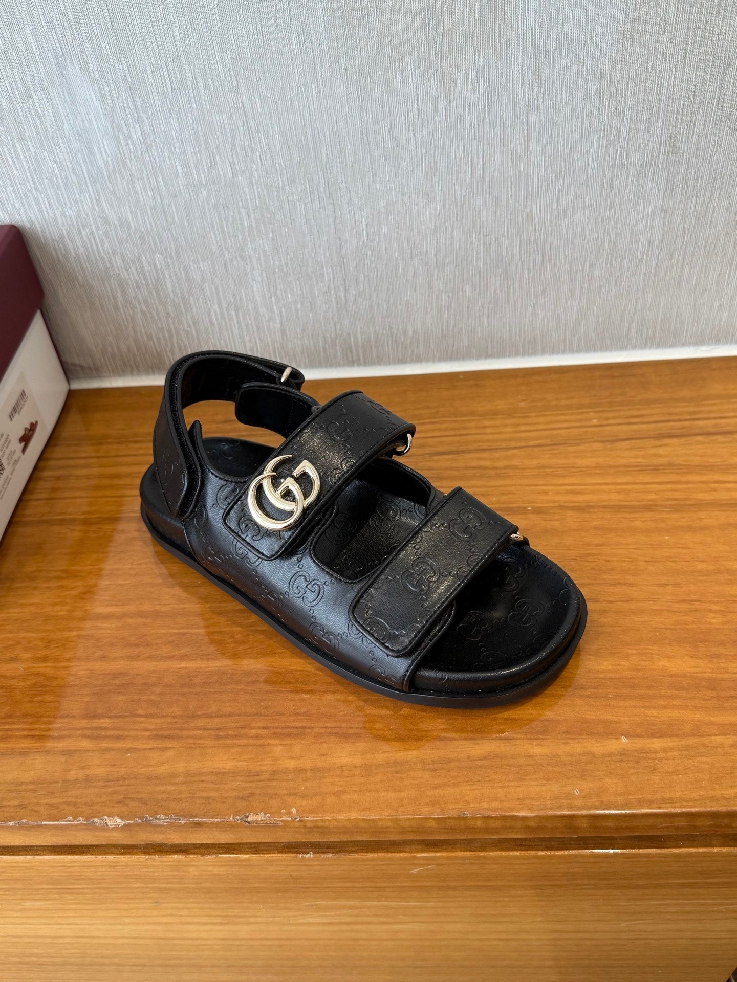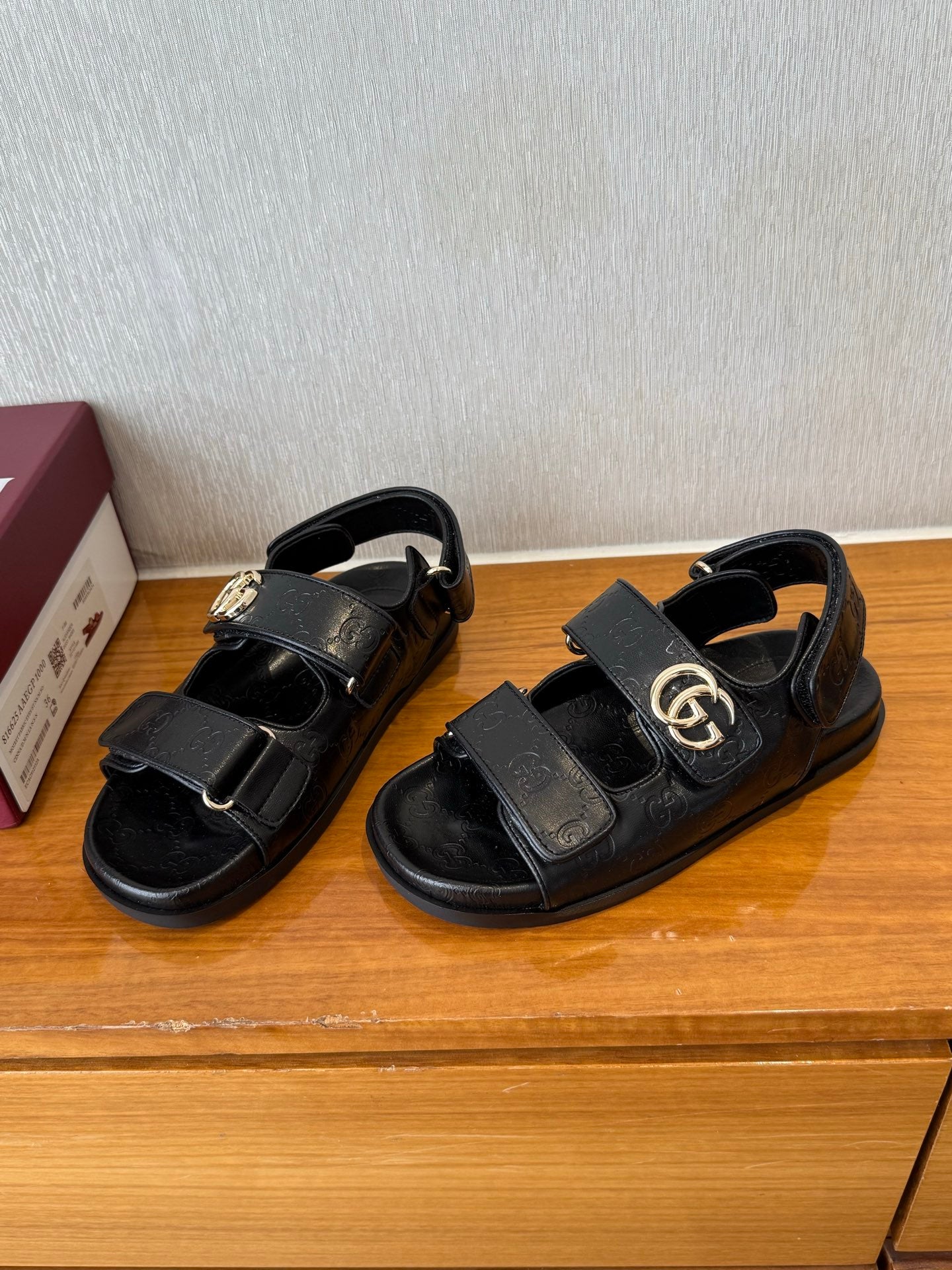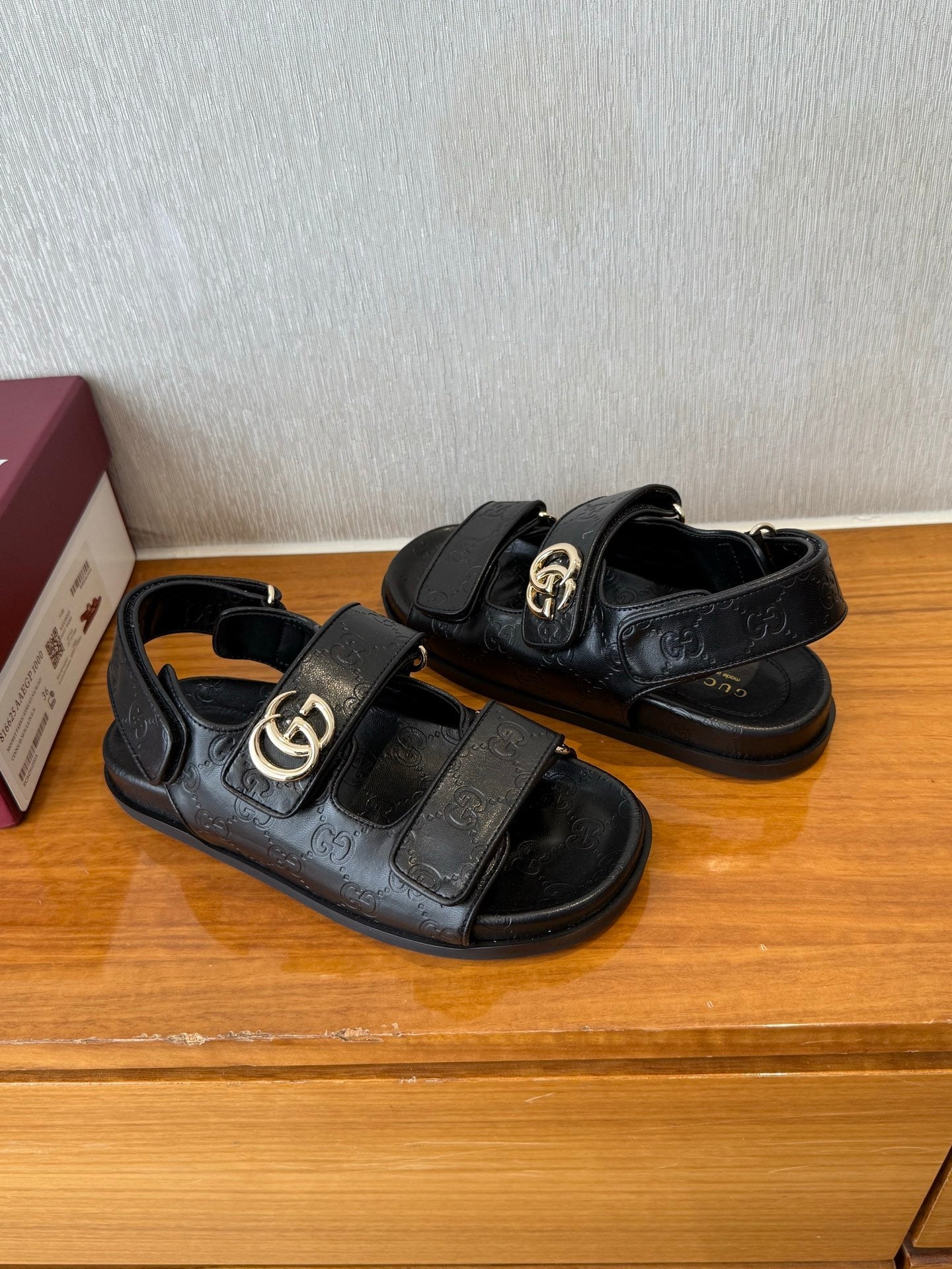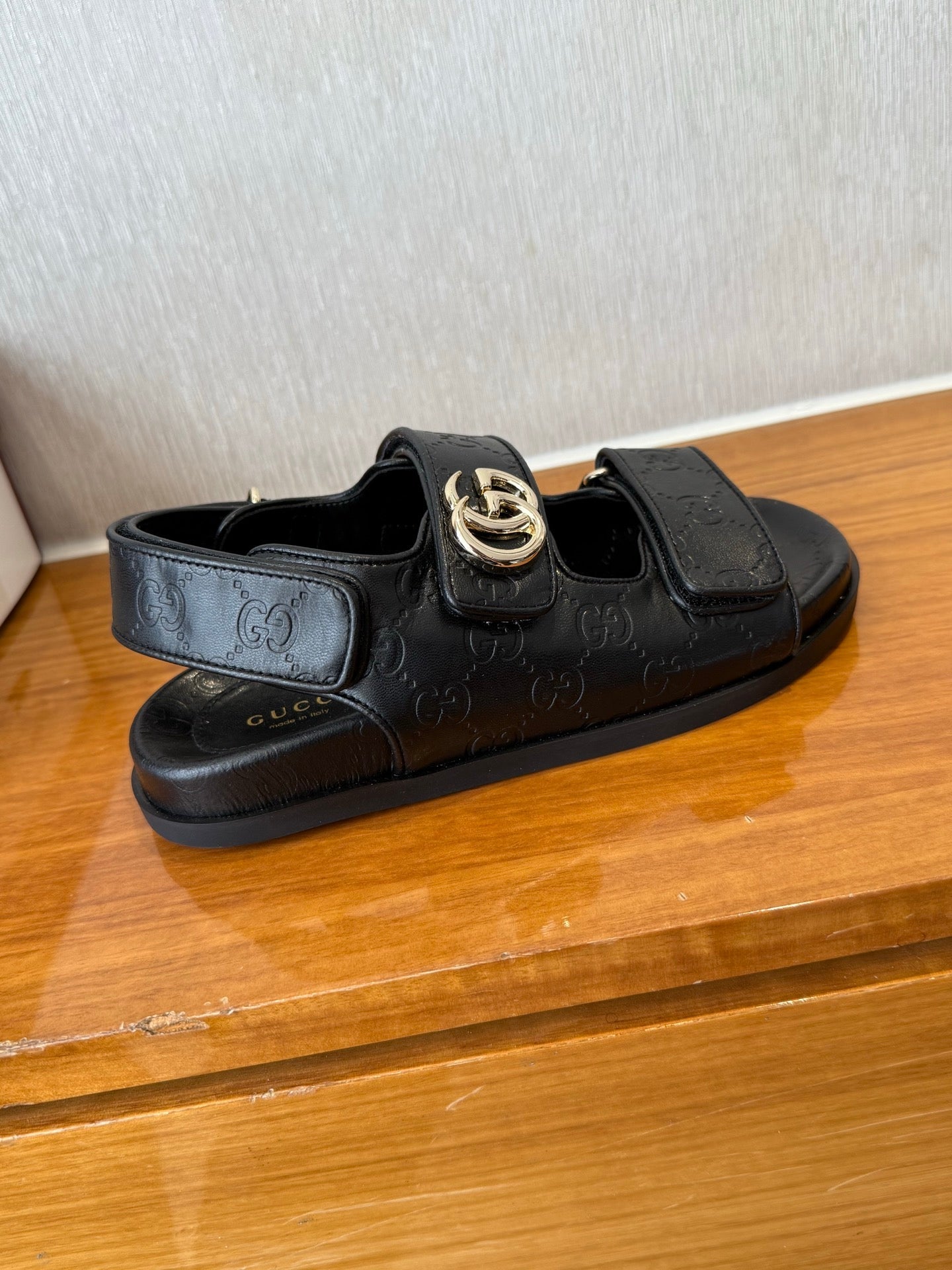 GG SANDALS S25 IN BLACK LAMBSKIN EMBOSSED LOGO WITH GOLD HARDWARE