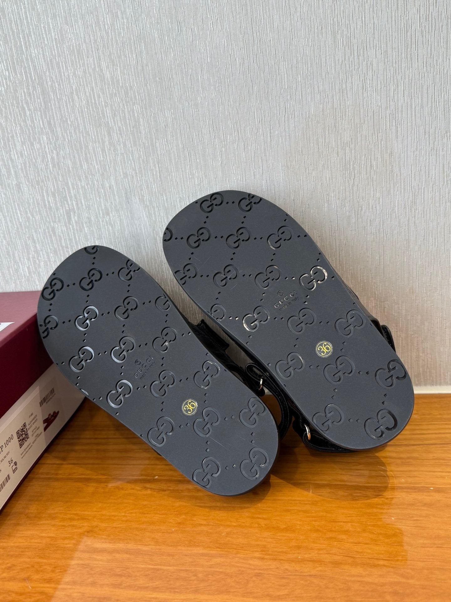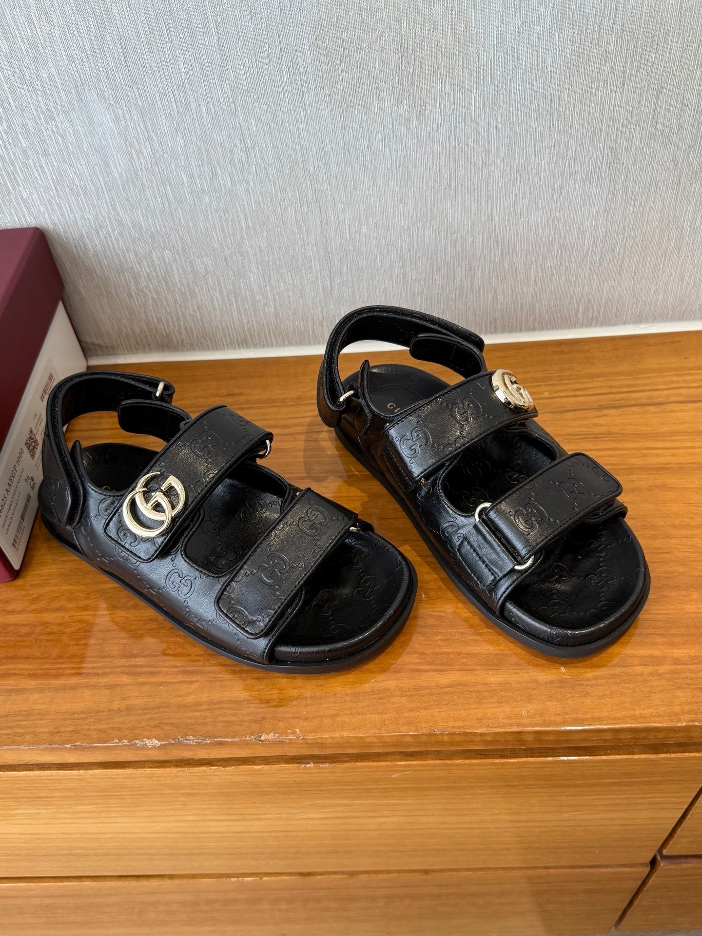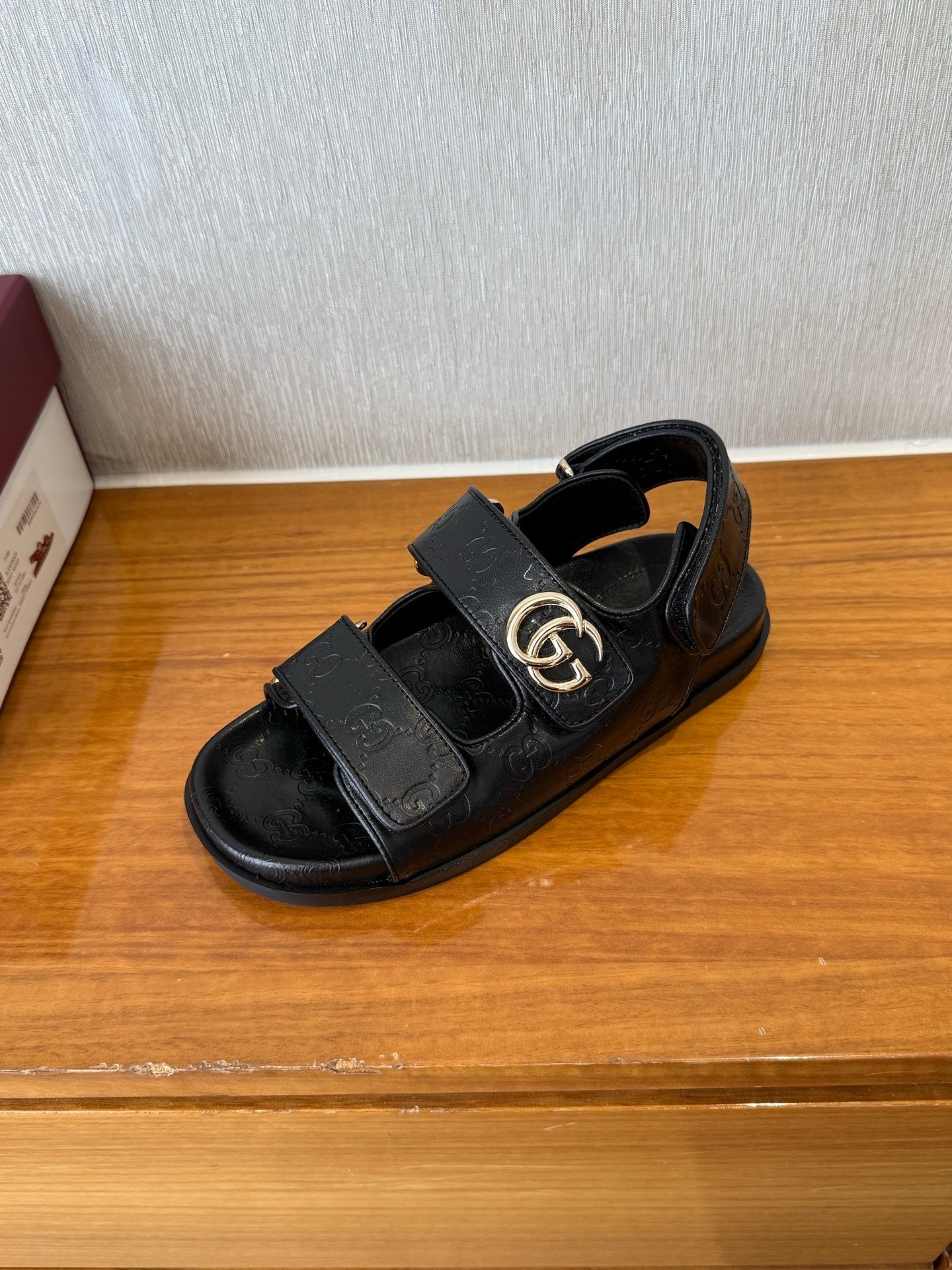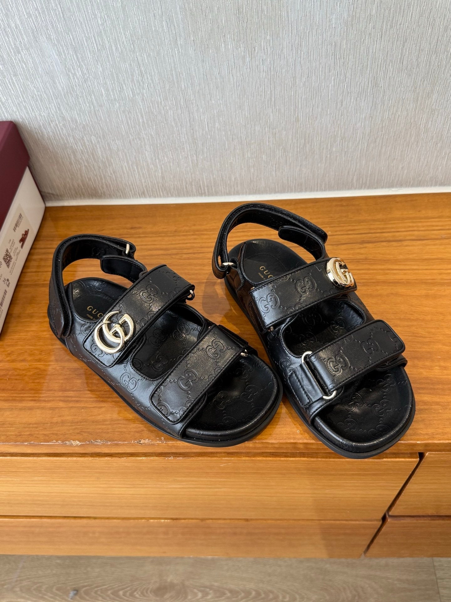 GG SANDALS S25 IN BLACK LAMBSKIN EMBOSSED LOGO WITH GOLD HARDWARE