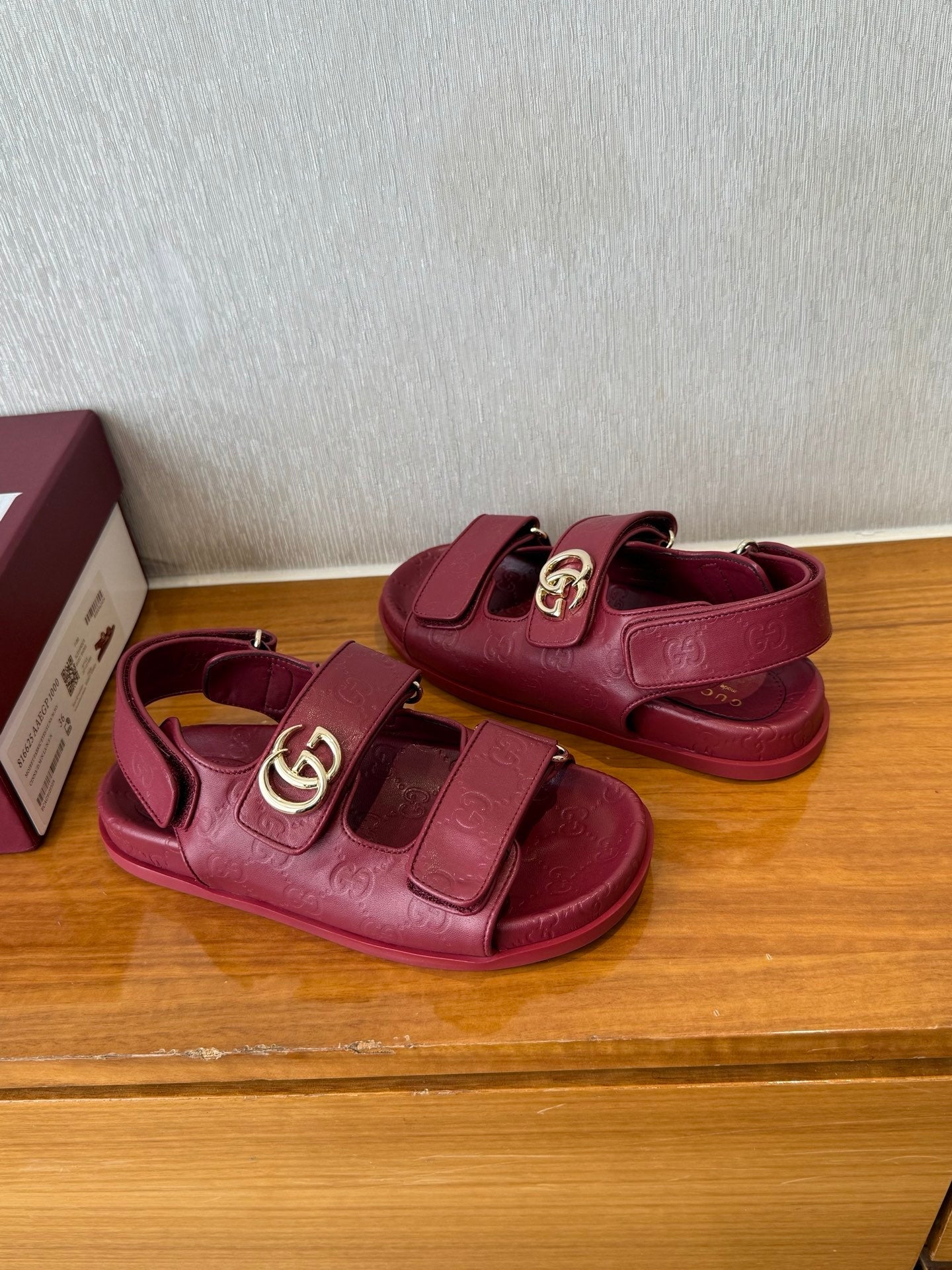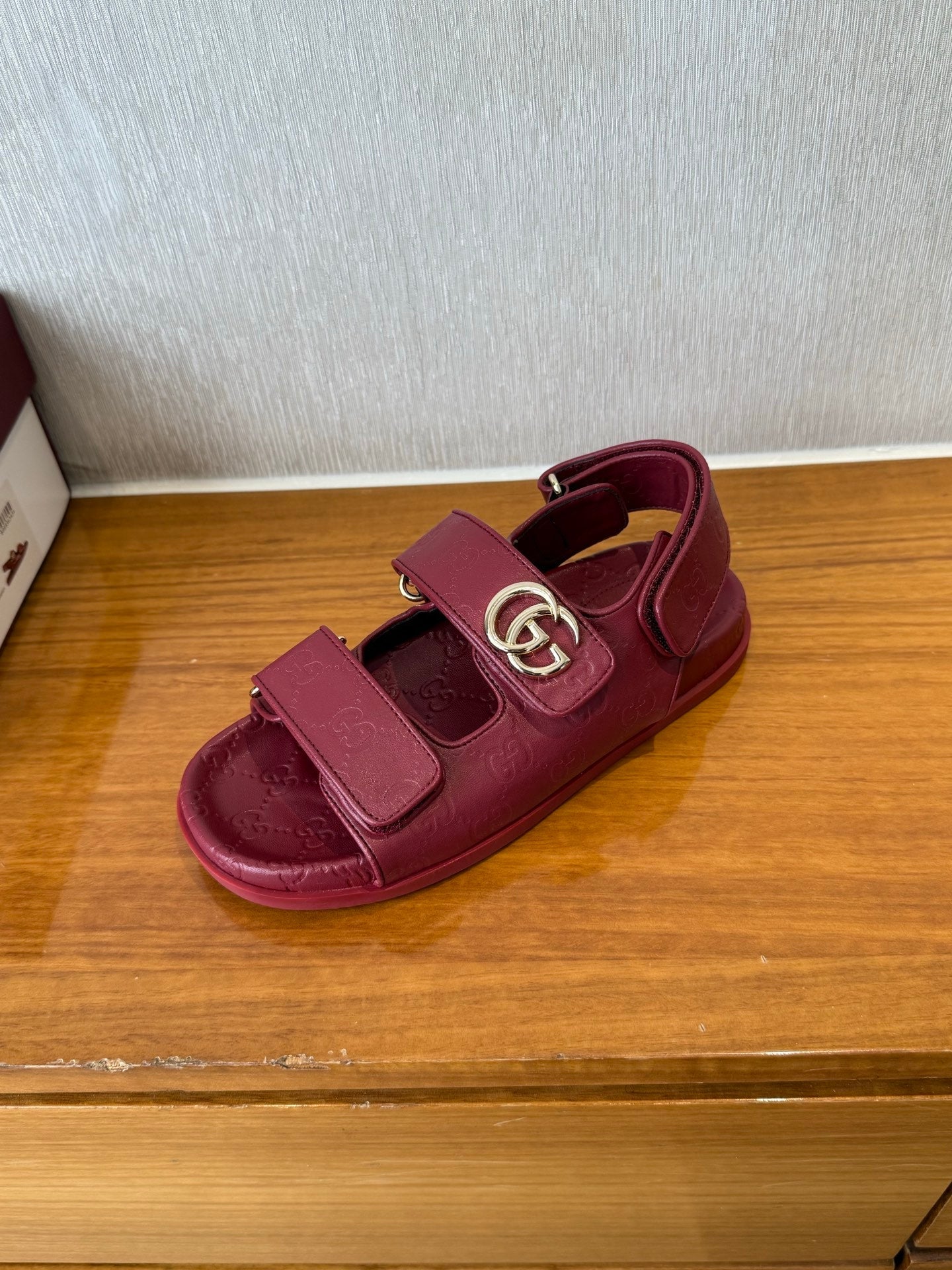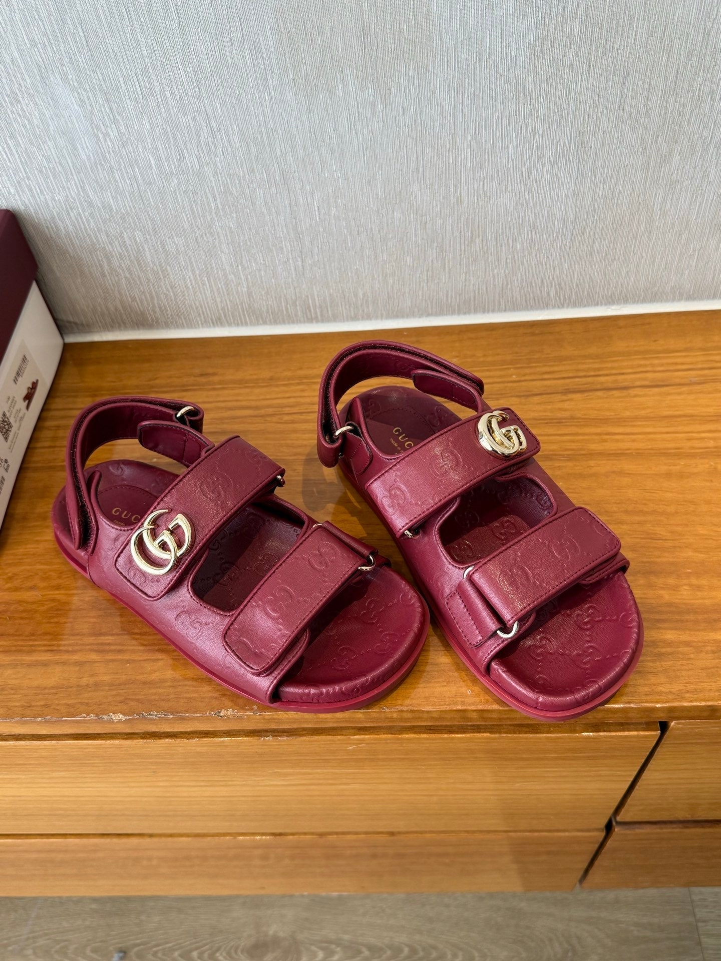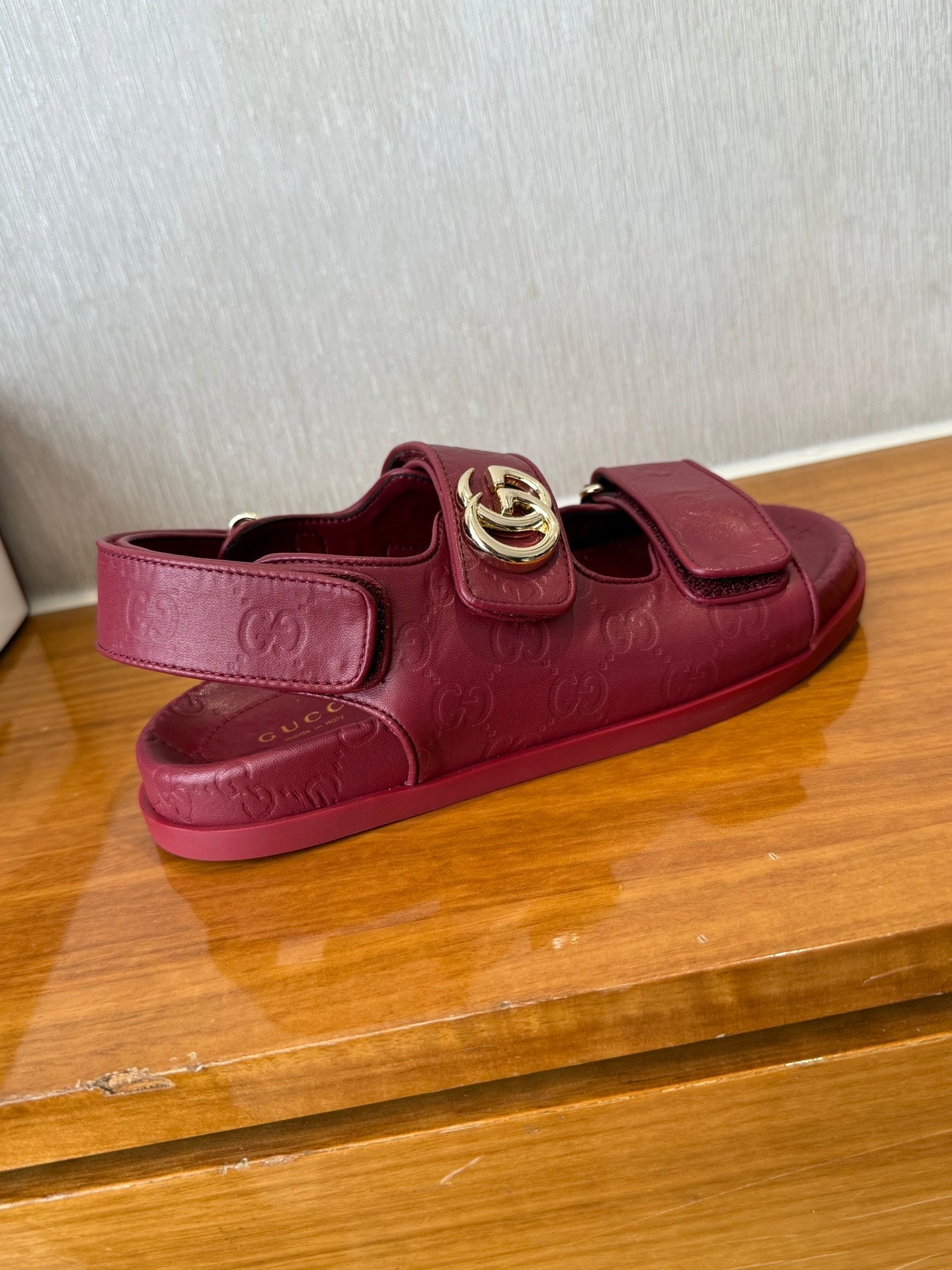 GG SANDALS S25 IN RED LAMBSKIN EMBOSSED LOGO WITH GOLD HARDWARE
