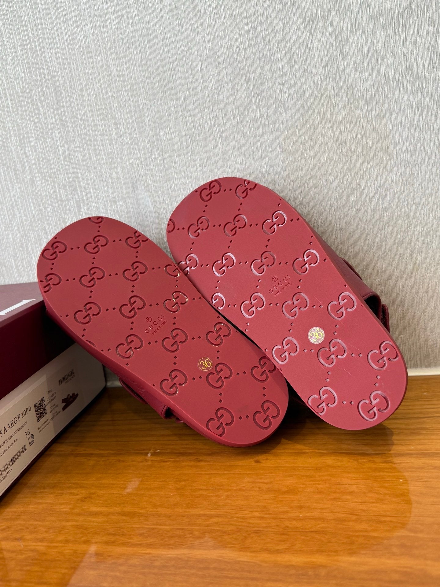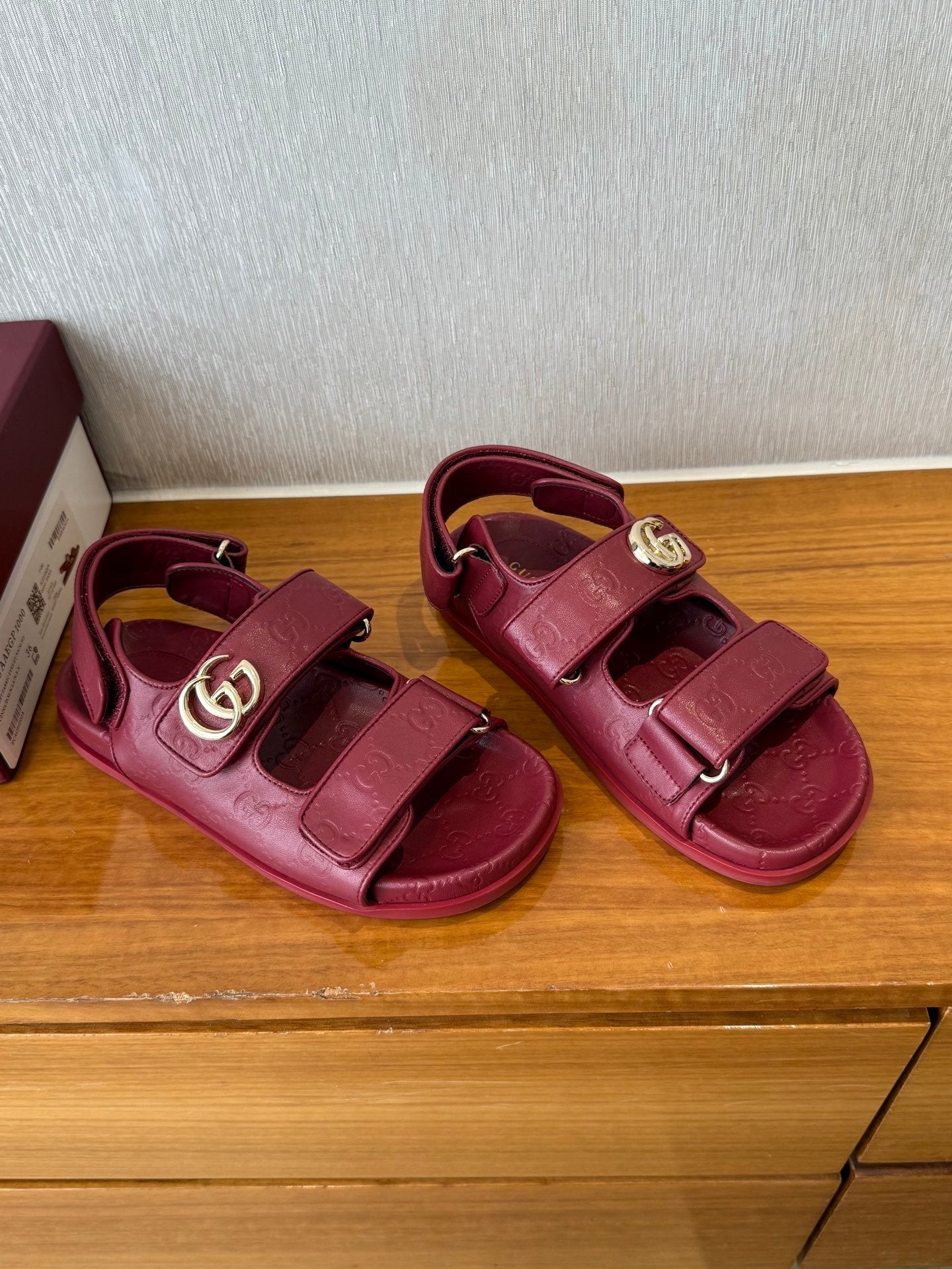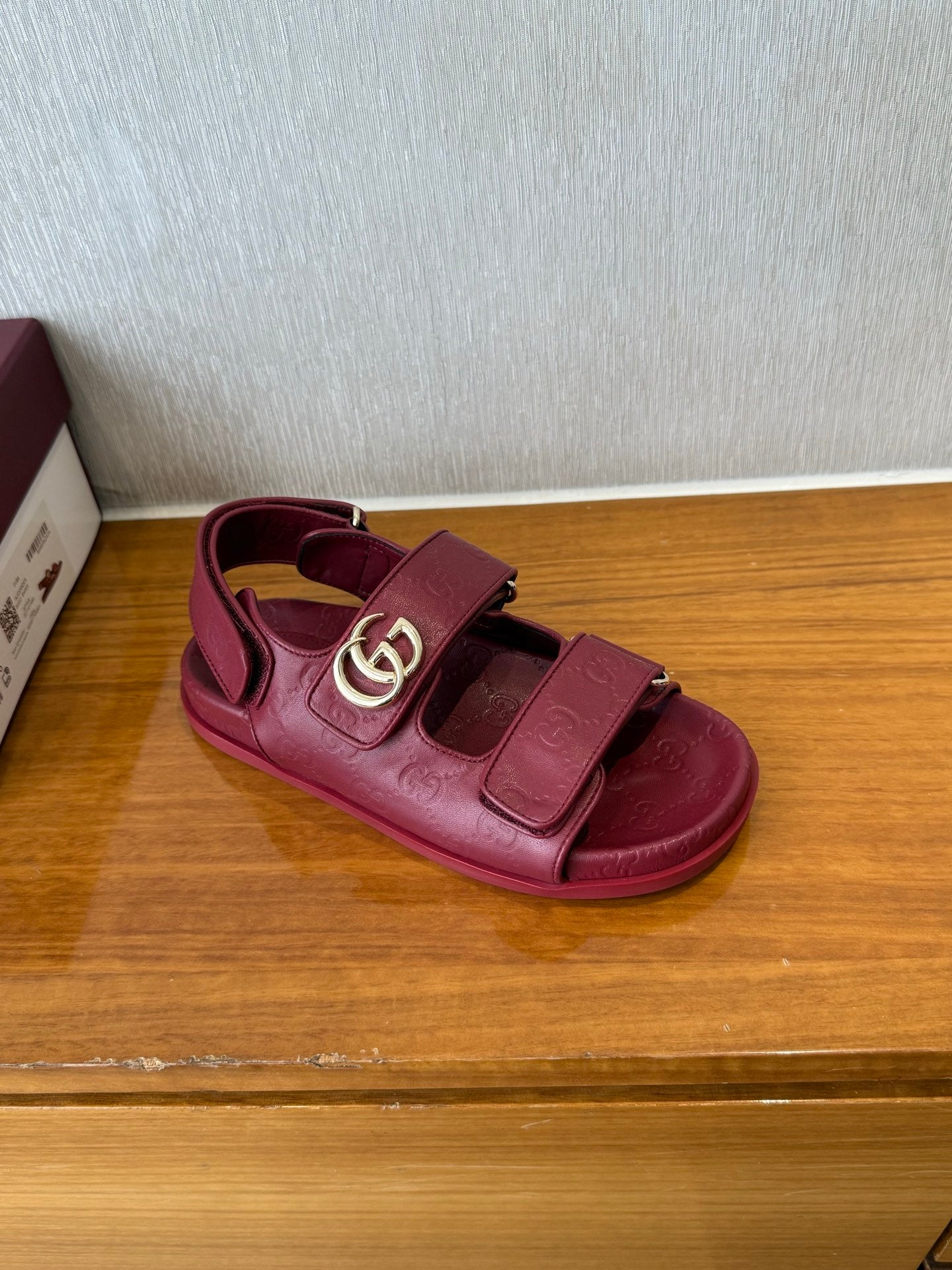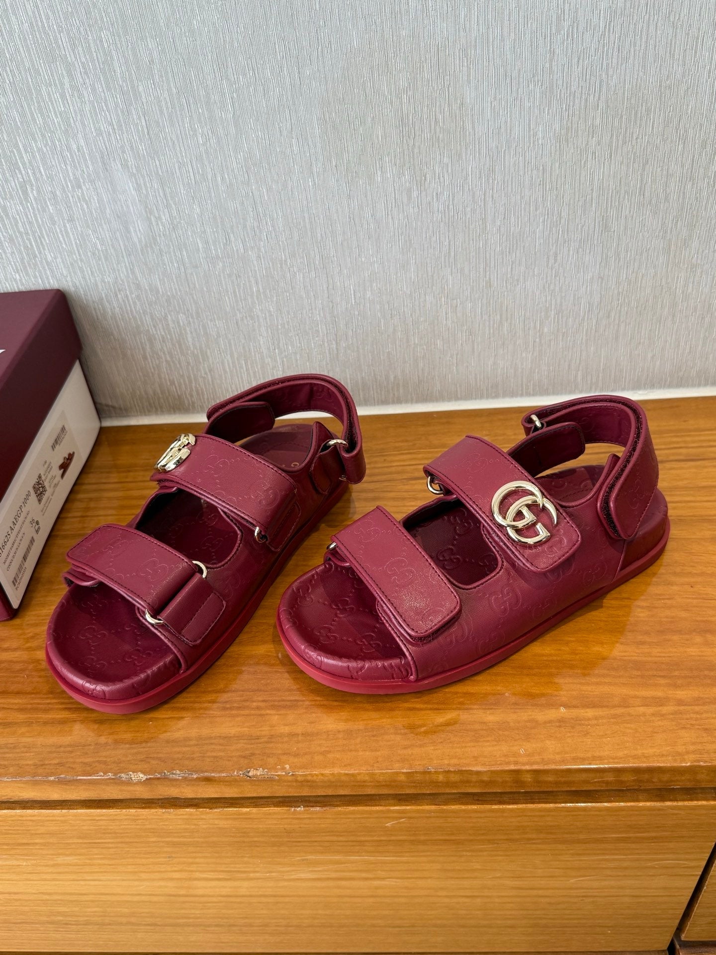 GG SANDALS S25 IN RED LAMBSKIN EMBOSSED LOGO WITH GOLD HARDWARE