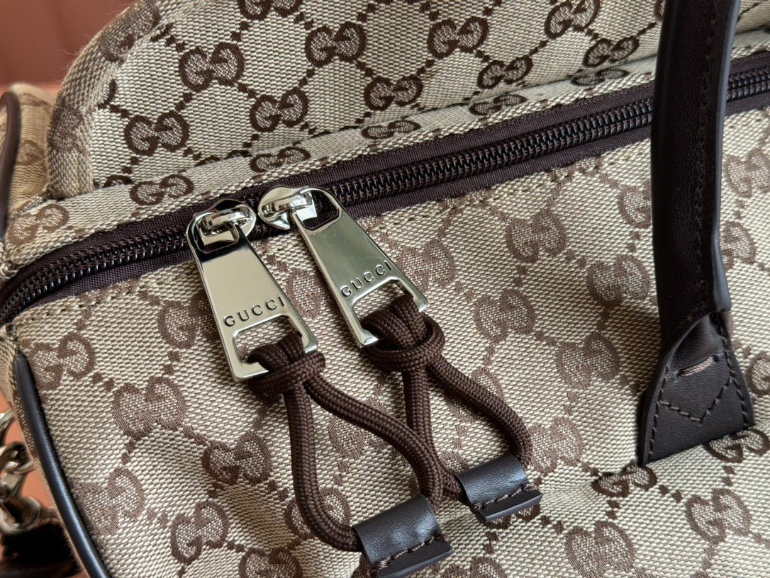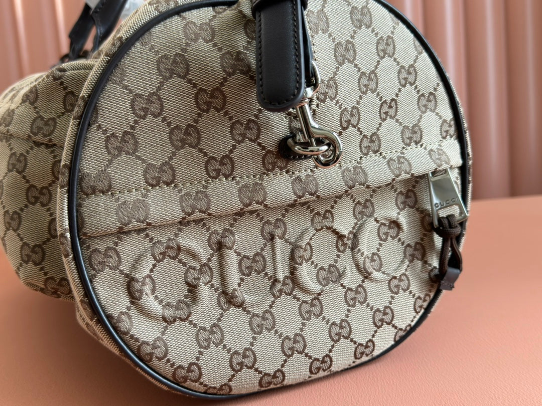 GG SMALL DUFFLE BAG 42 IN BEIGE AND DARK BROWN GG CANVAS