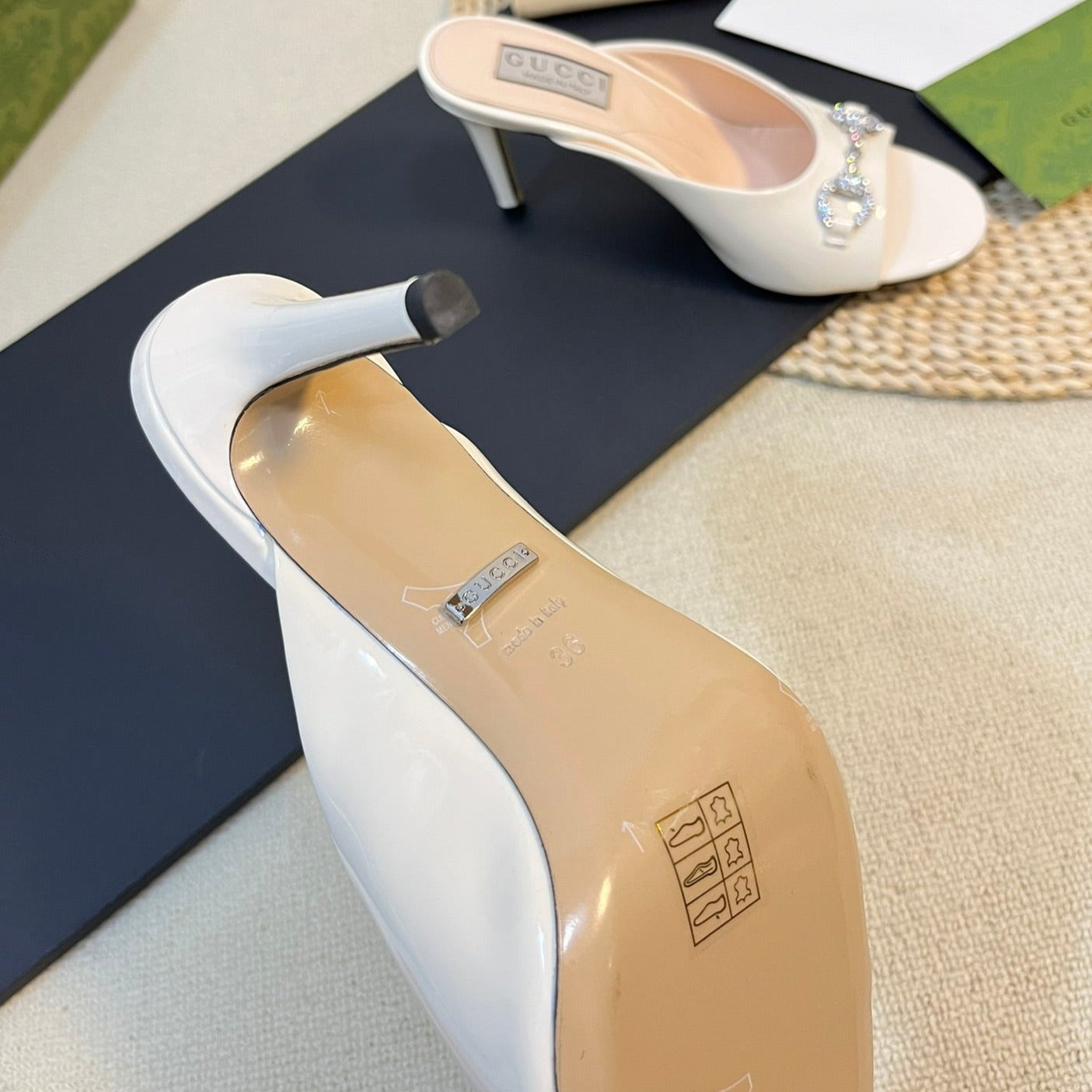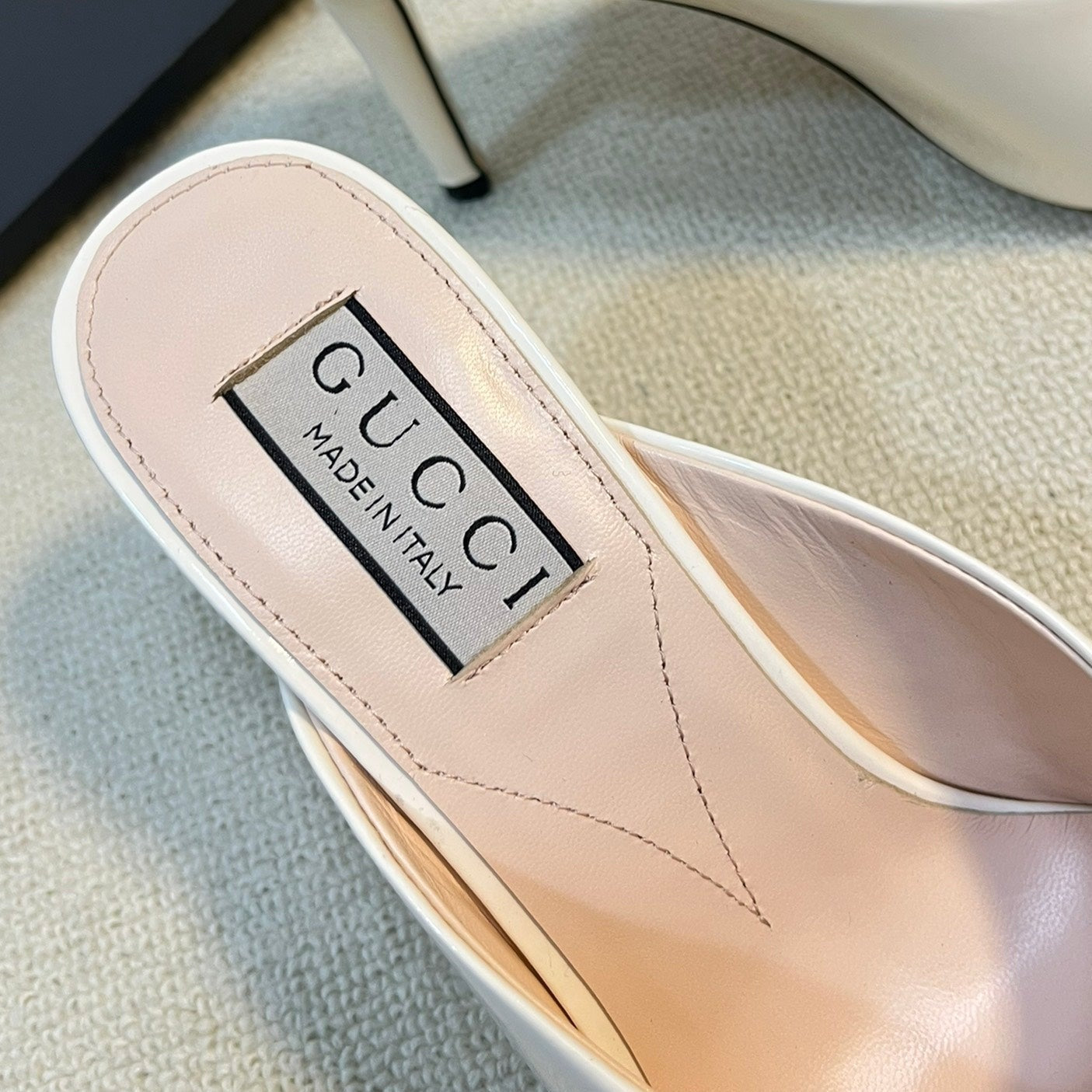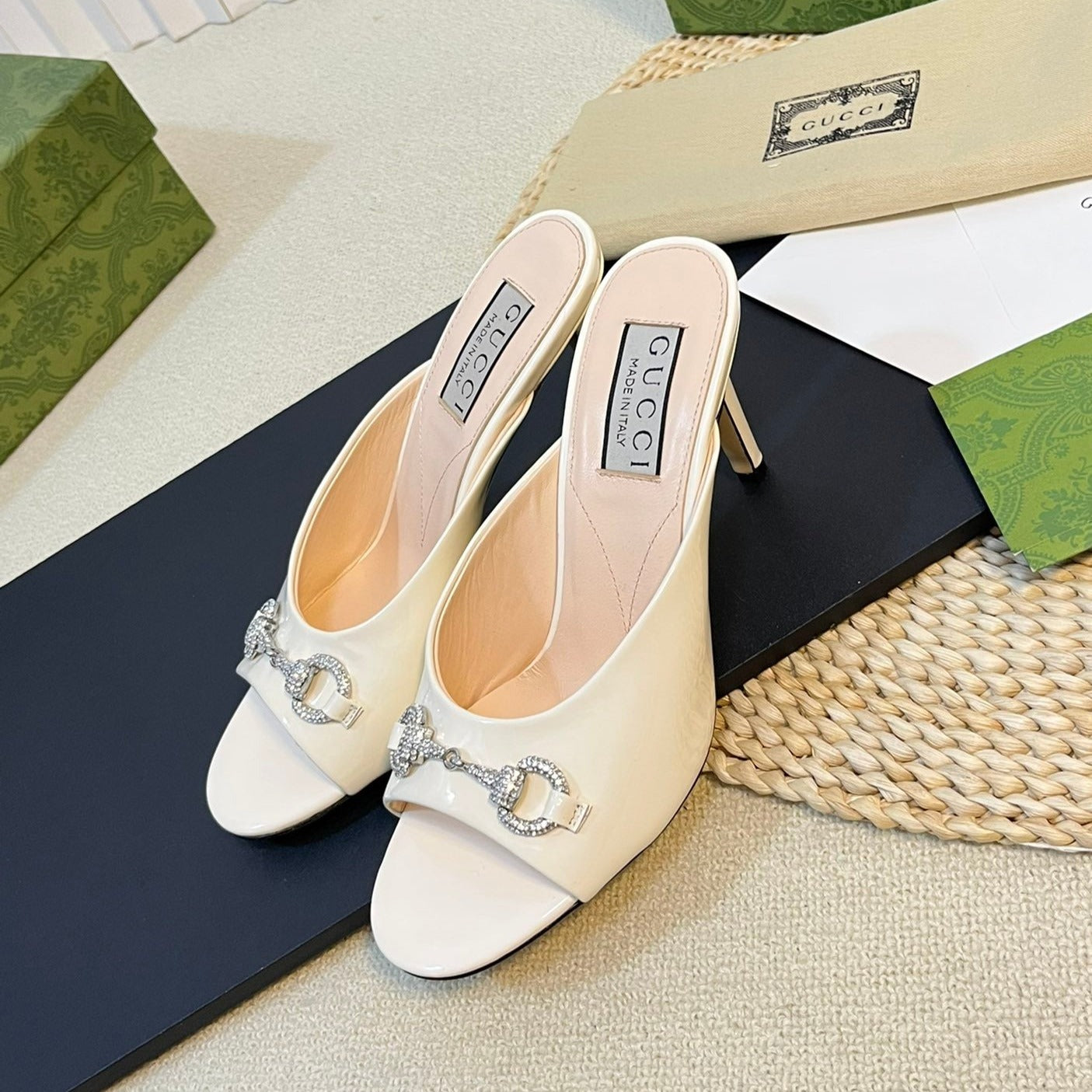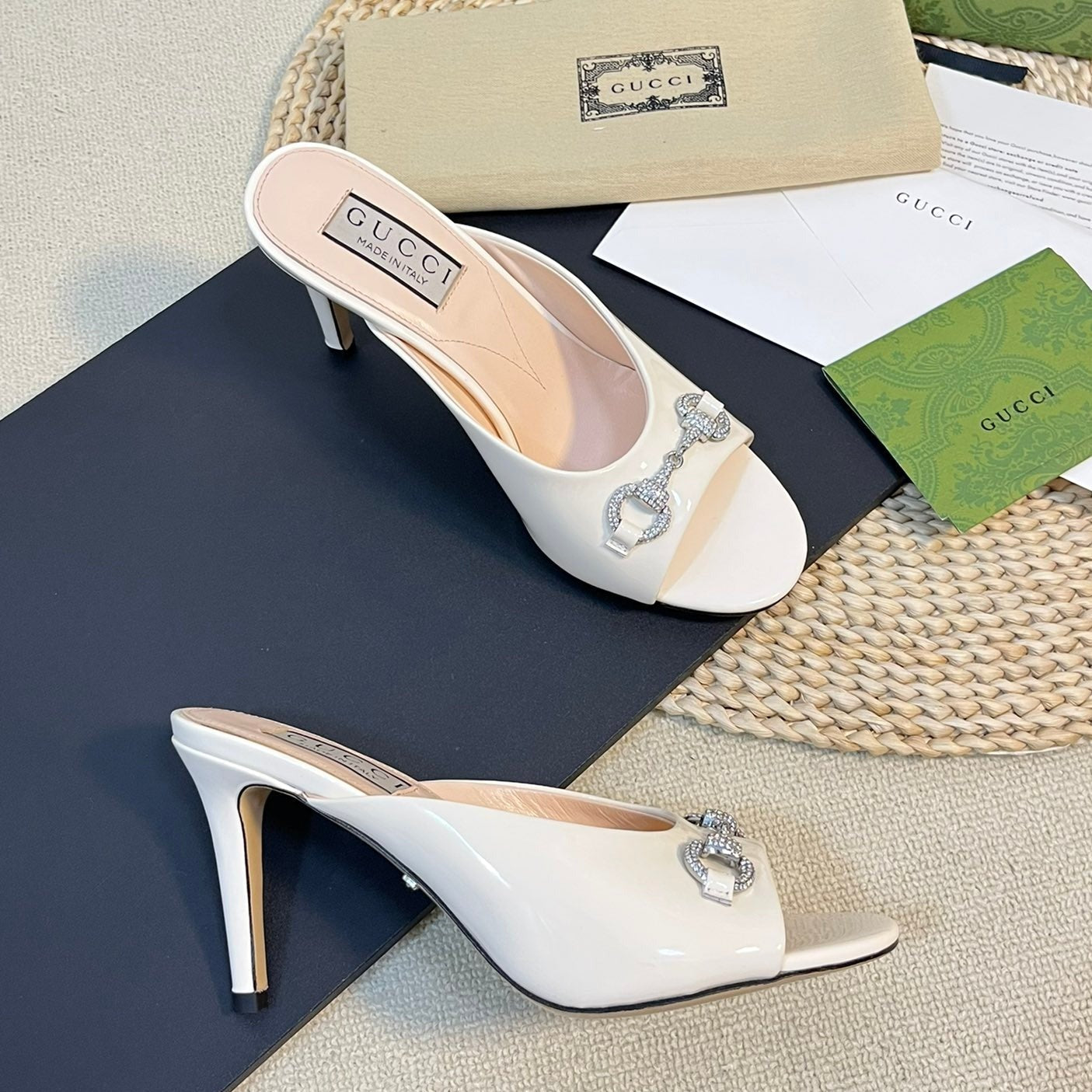 GG Women's Horsebit mid-heel slide sandal in glossy White leather