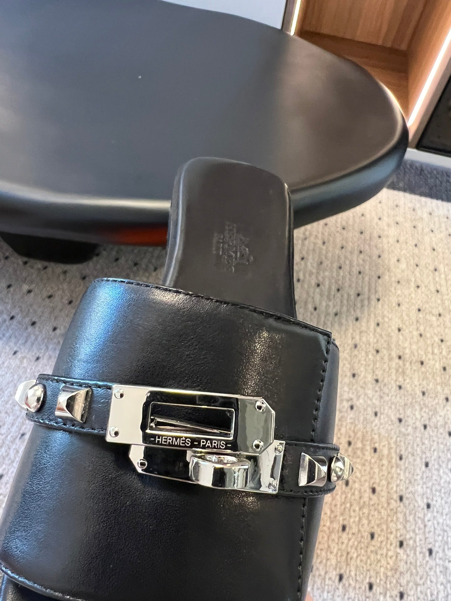 GIULIA FLAT SANDAL IN BLACK CALFSKIN