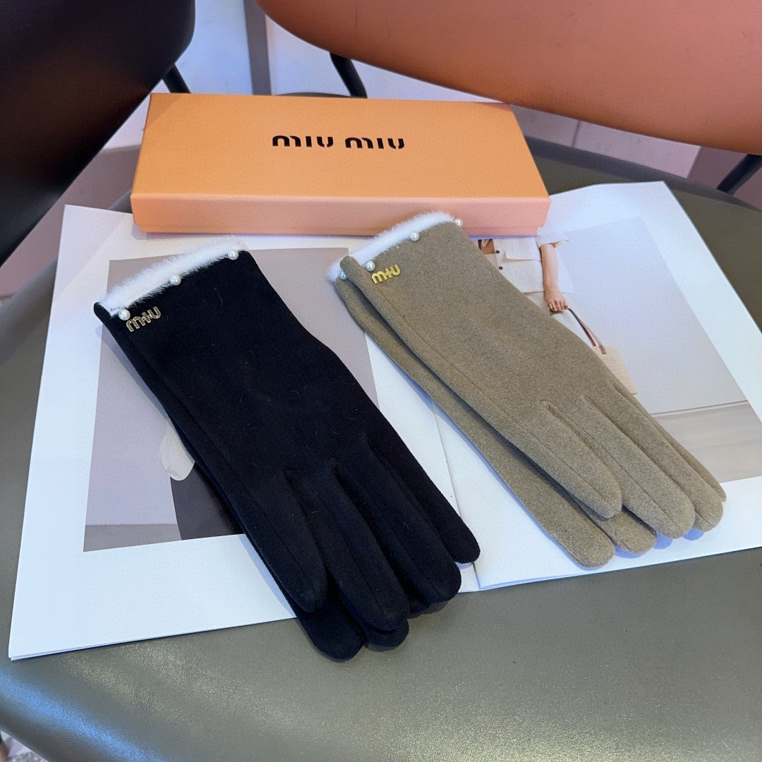 GLOVES IN KHAKI BEIGE WOOL MIX RABBIT FUR 458604