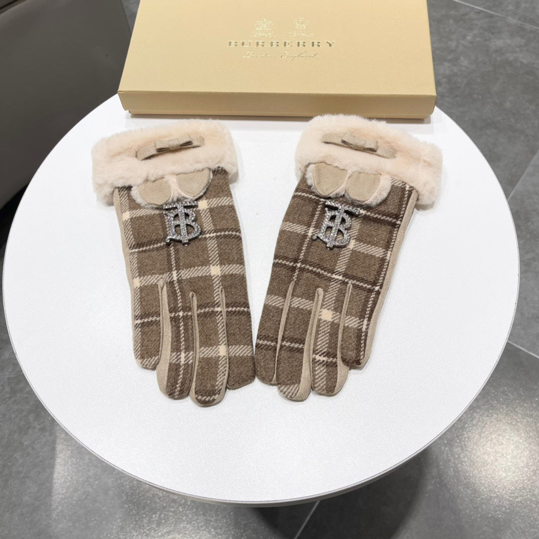 GLOVES IN MEDIUM BROWN WOOL AND RABBIT FUR 158884