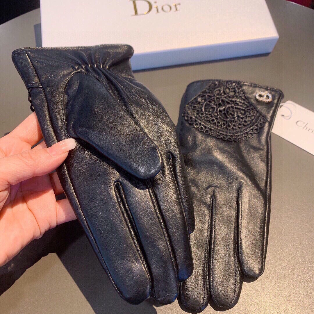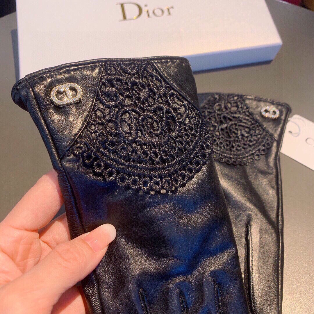 GLOVES WITH LACE TRIM IN BLACK LAMBSKIN 146816