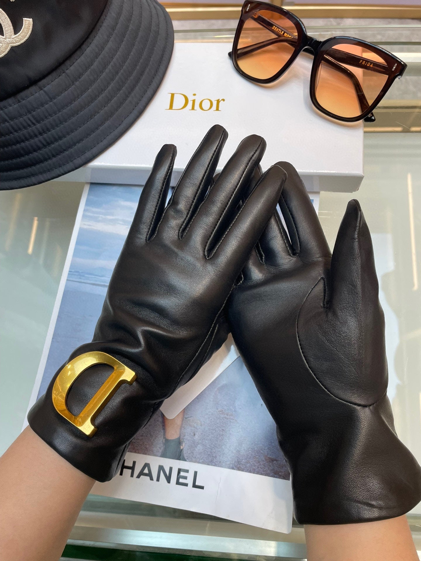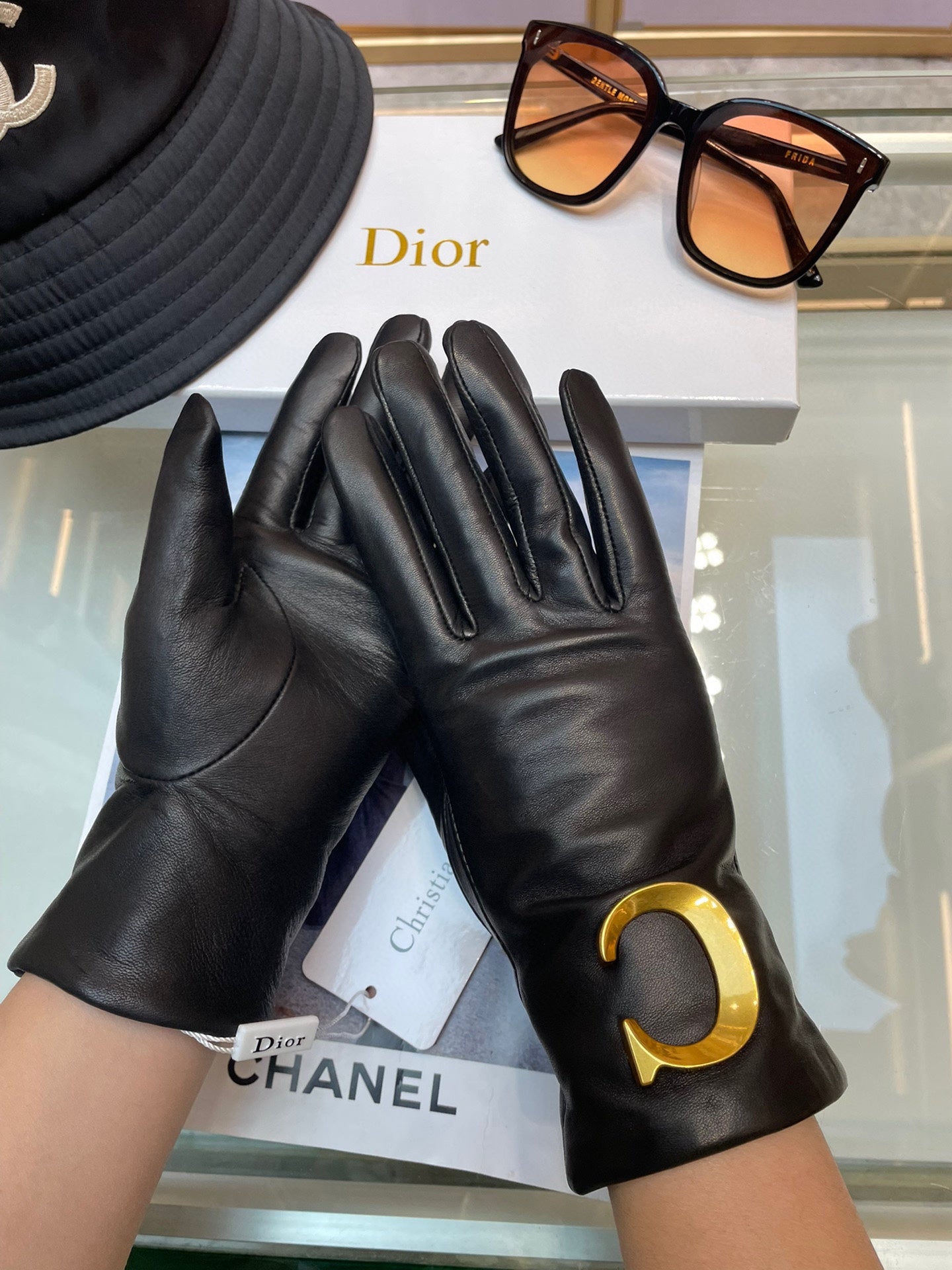 GLOVES WITH METAL HARDWARE IN BLACK LAMBSKIN 218820