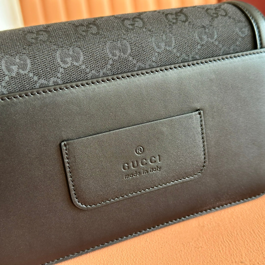 GO SMALL SHOULDER BAG 21.5 IN BLACK GG CANVAS GOLD HARDWARE