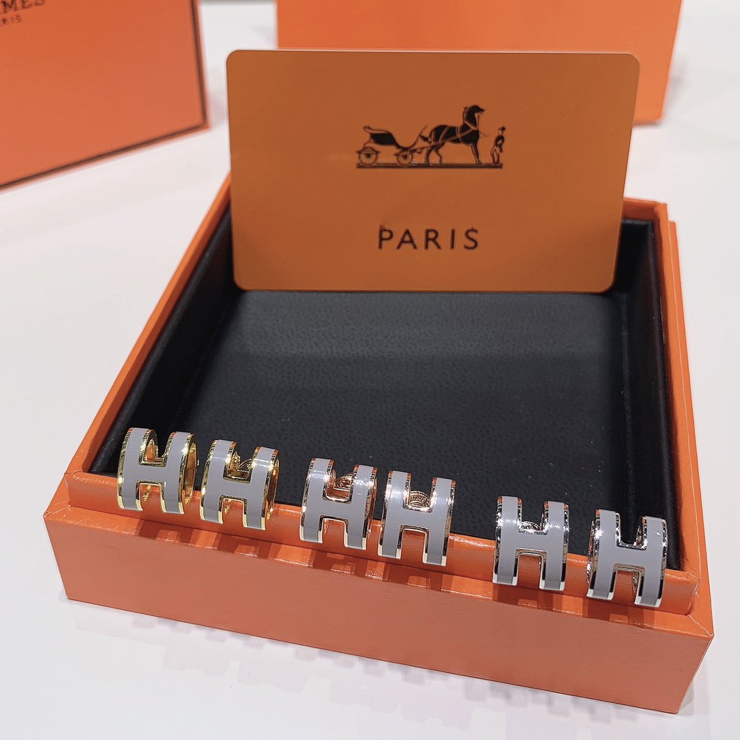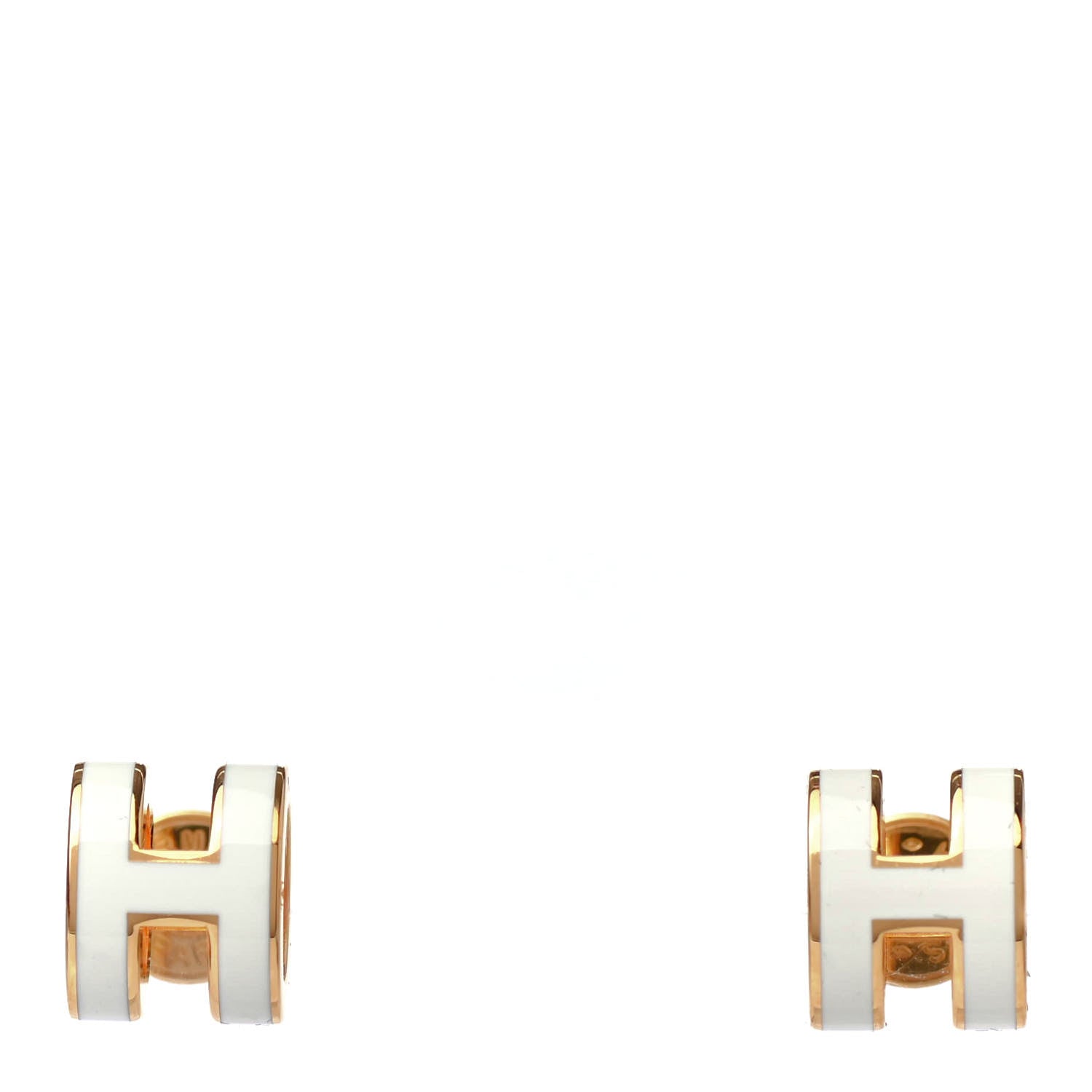 GOLD LACQUERED MINI POP H EARRINGS WHITE