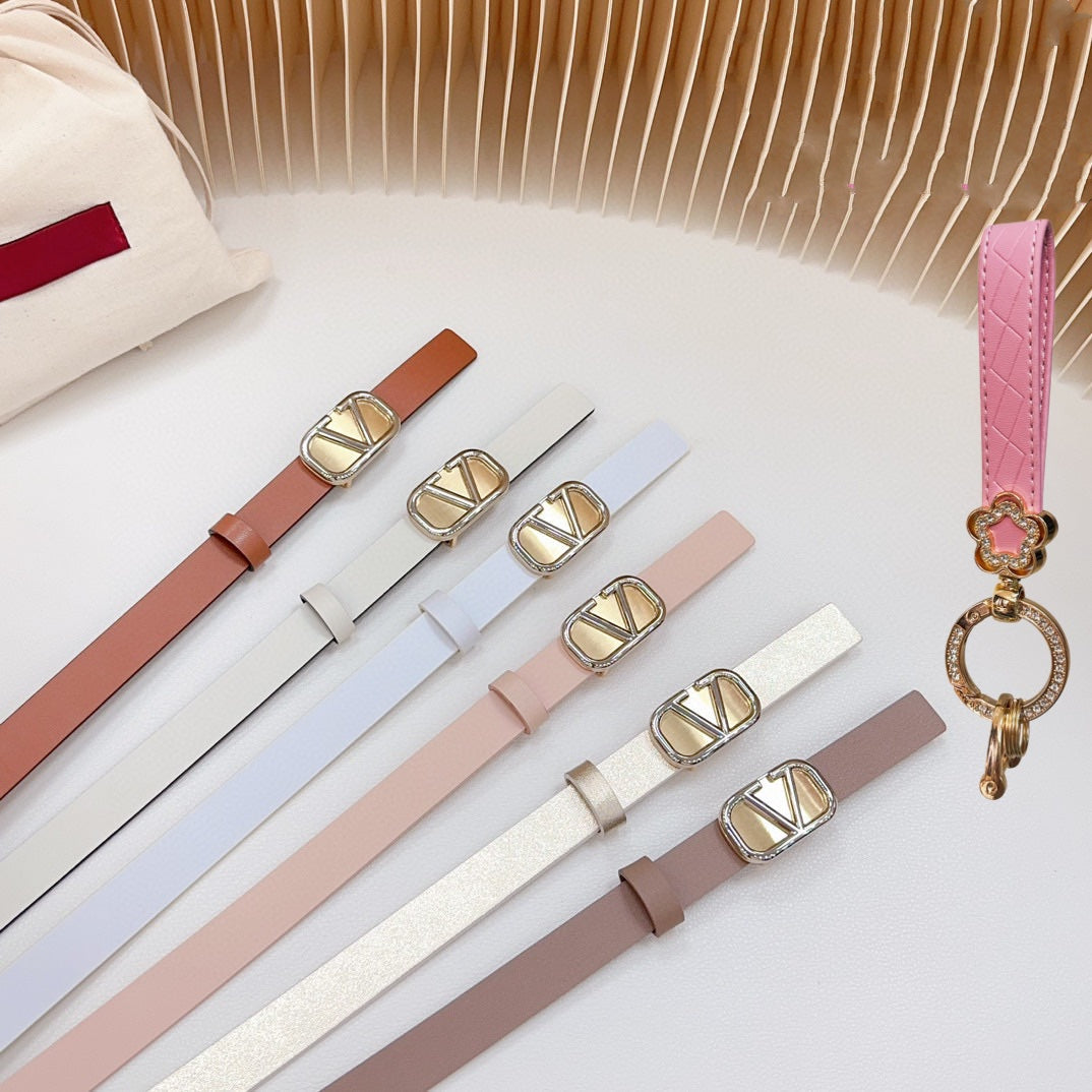 Gold Vlogo and Silver Hardware Buckle Black Calfskin 20mm