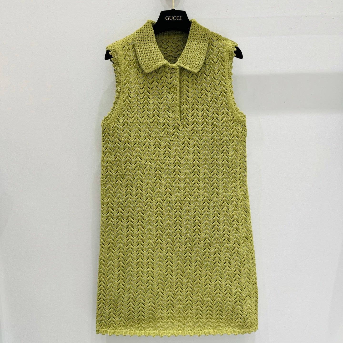 GUCCI SLEEVELESS KNIT POLO DRESS IN BUTTER YELLOW 267480
