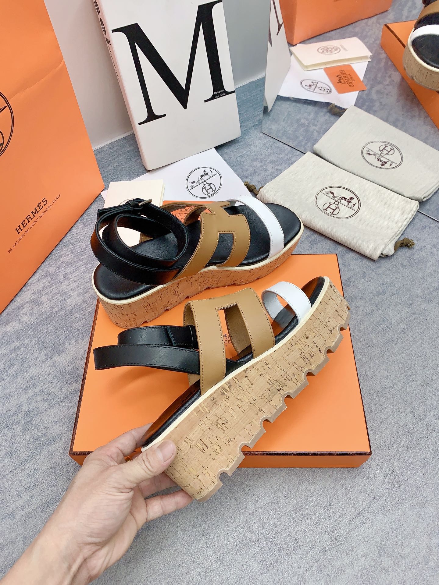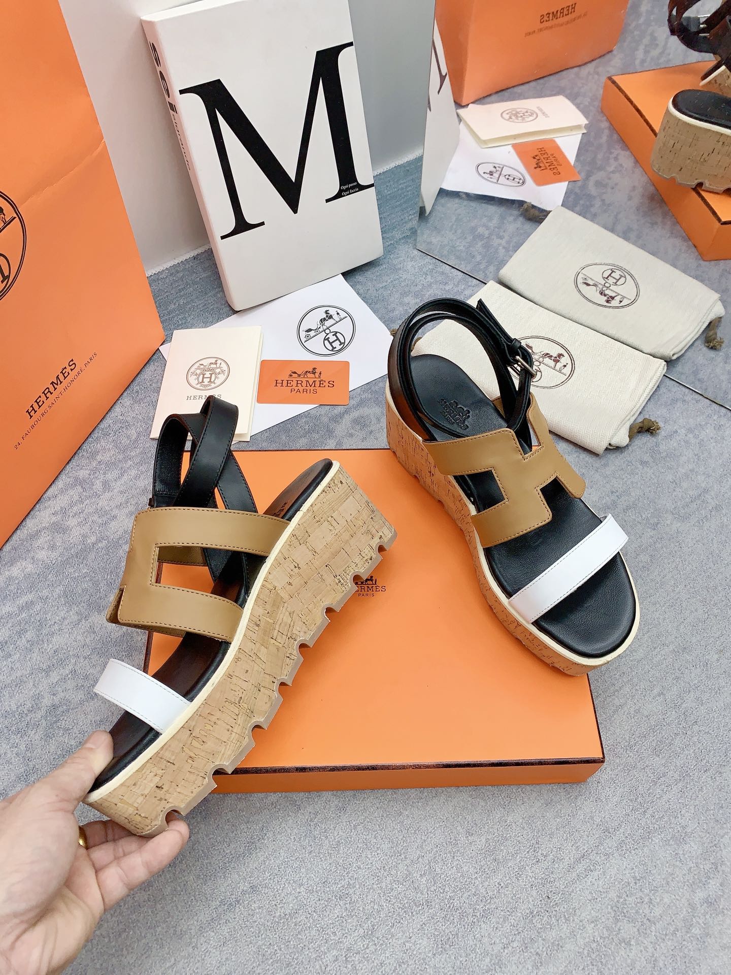 HAVANE 30 SANDAL IN WHITE AND PEANUT BROWN CALFSKIN