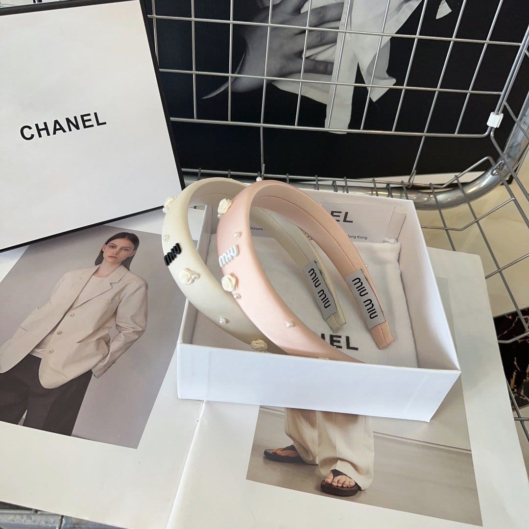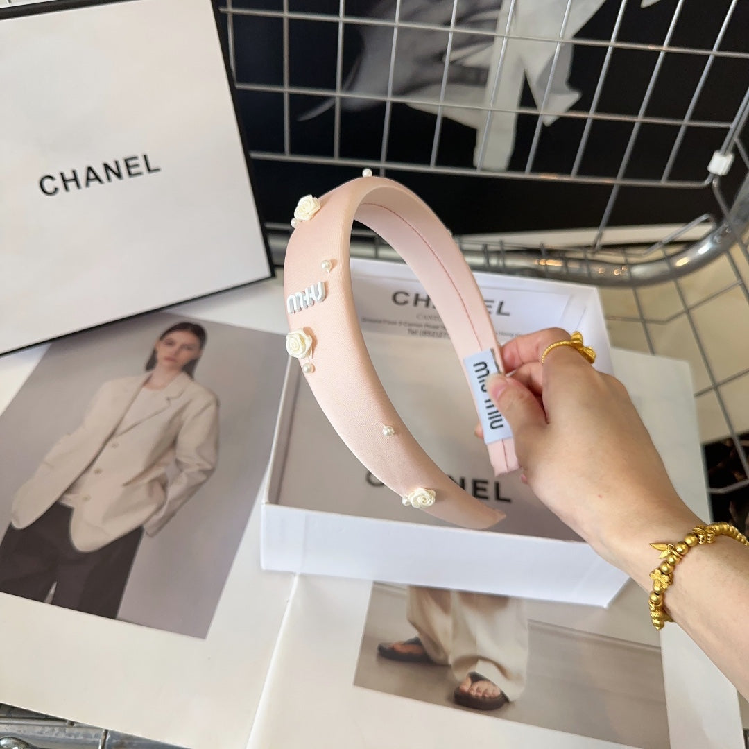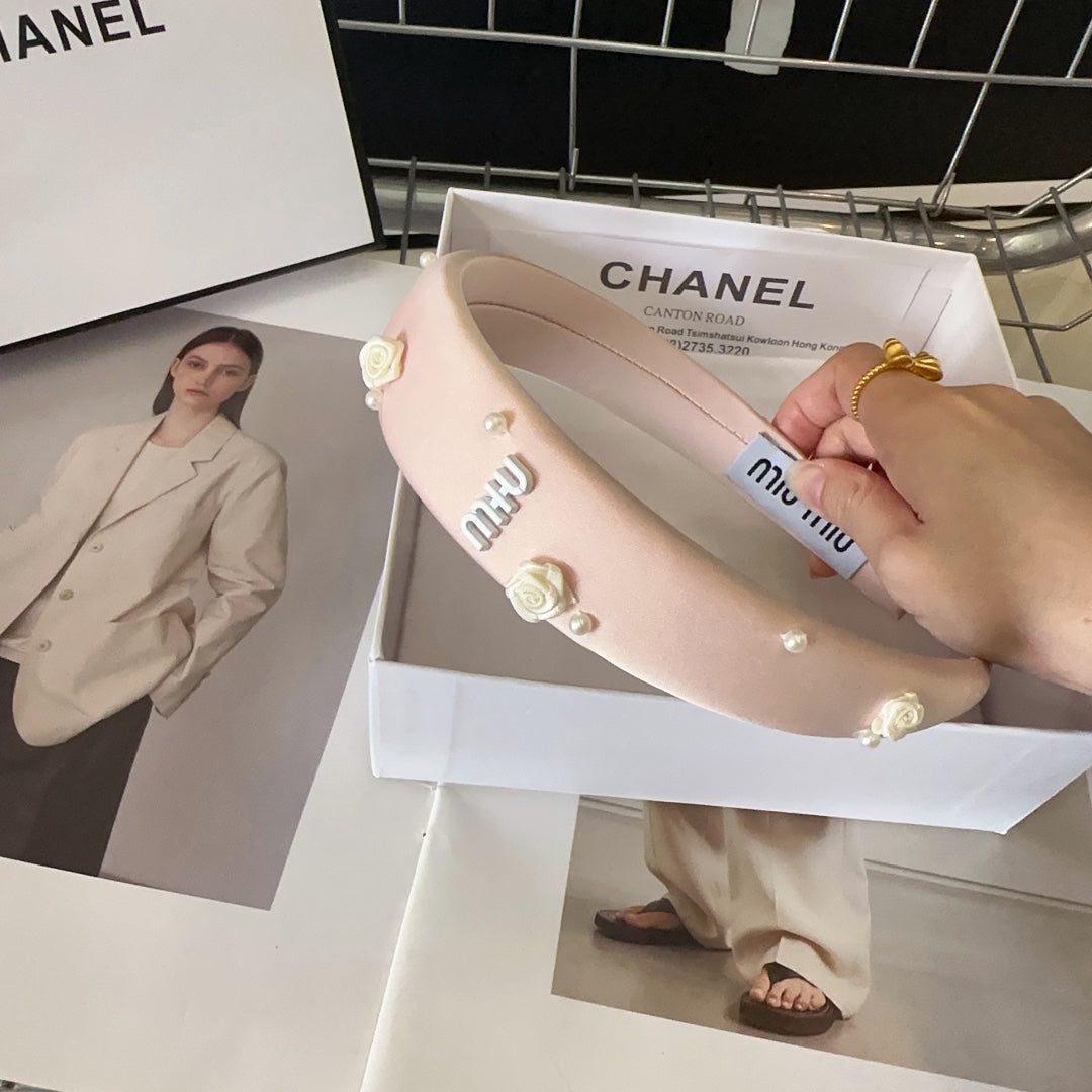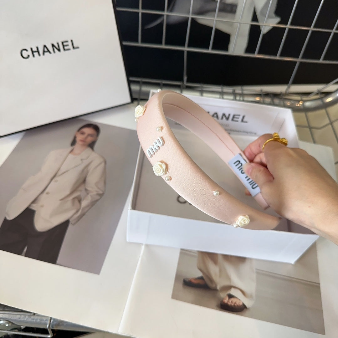 HEADBAND EMBELLISHED FLOWER AND PEARL IN LIGHT PINK SILK 194315
