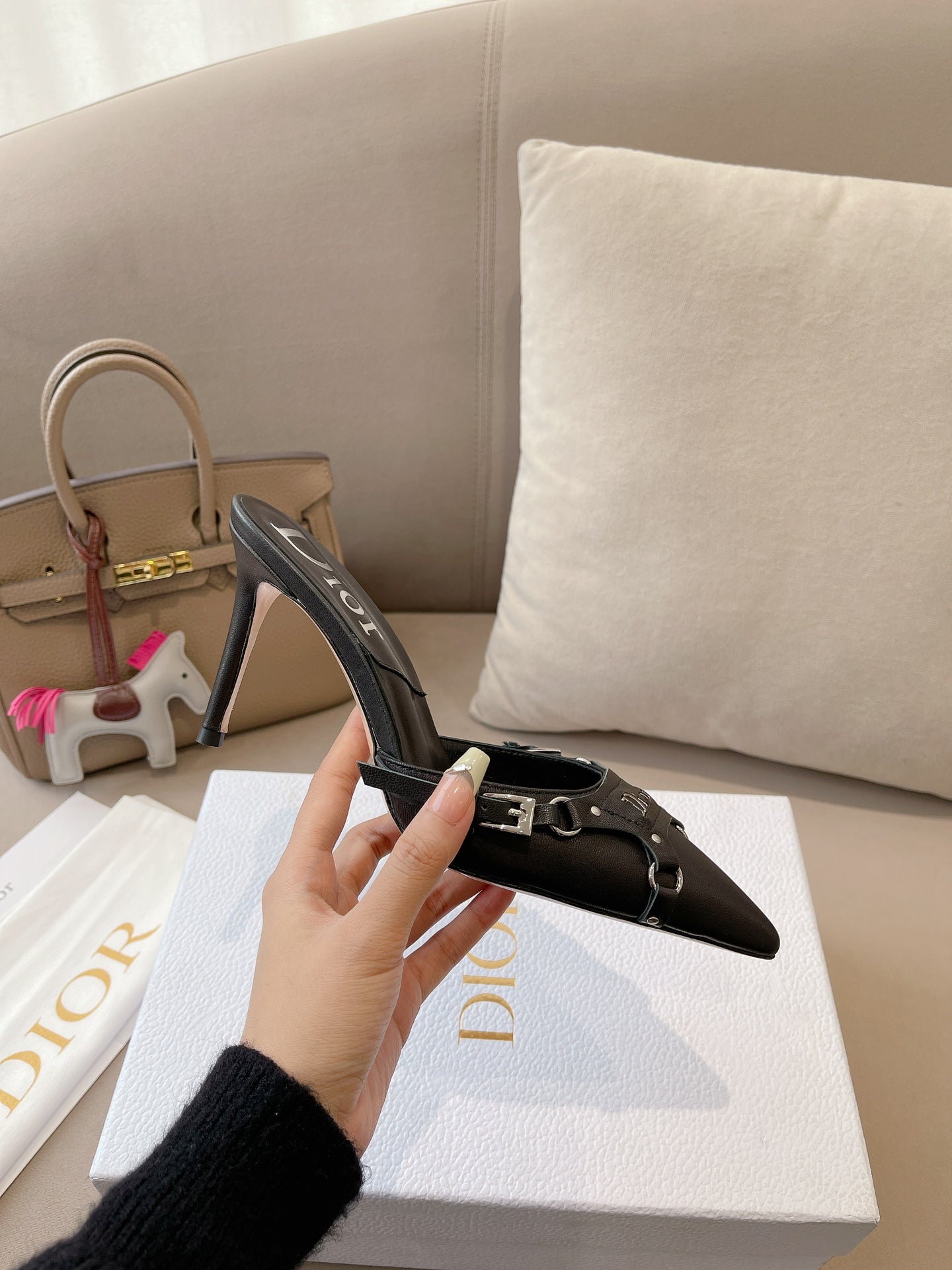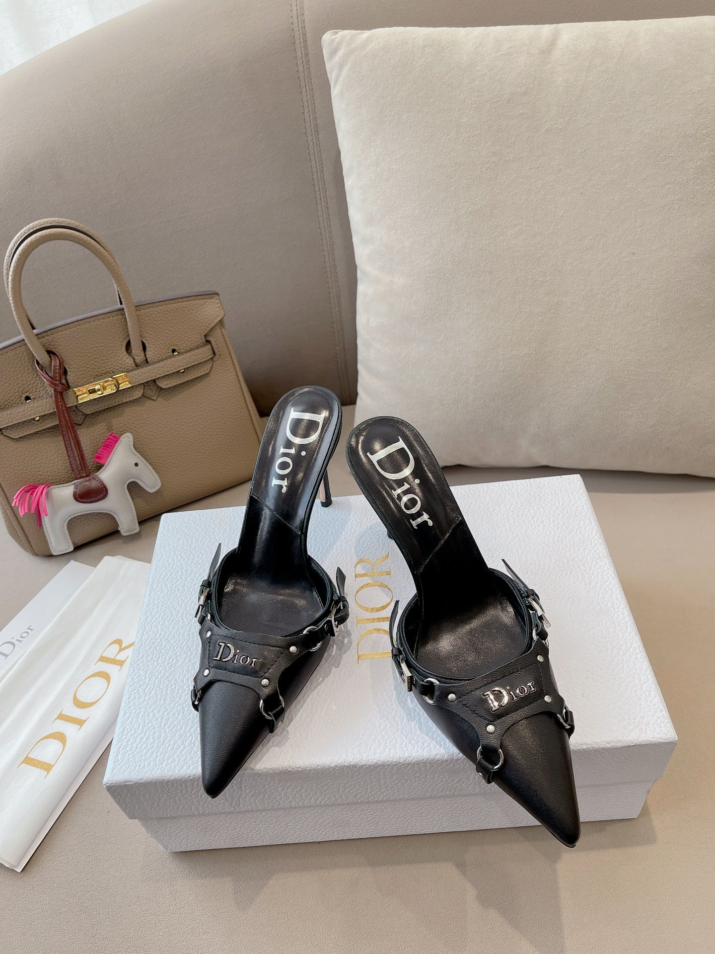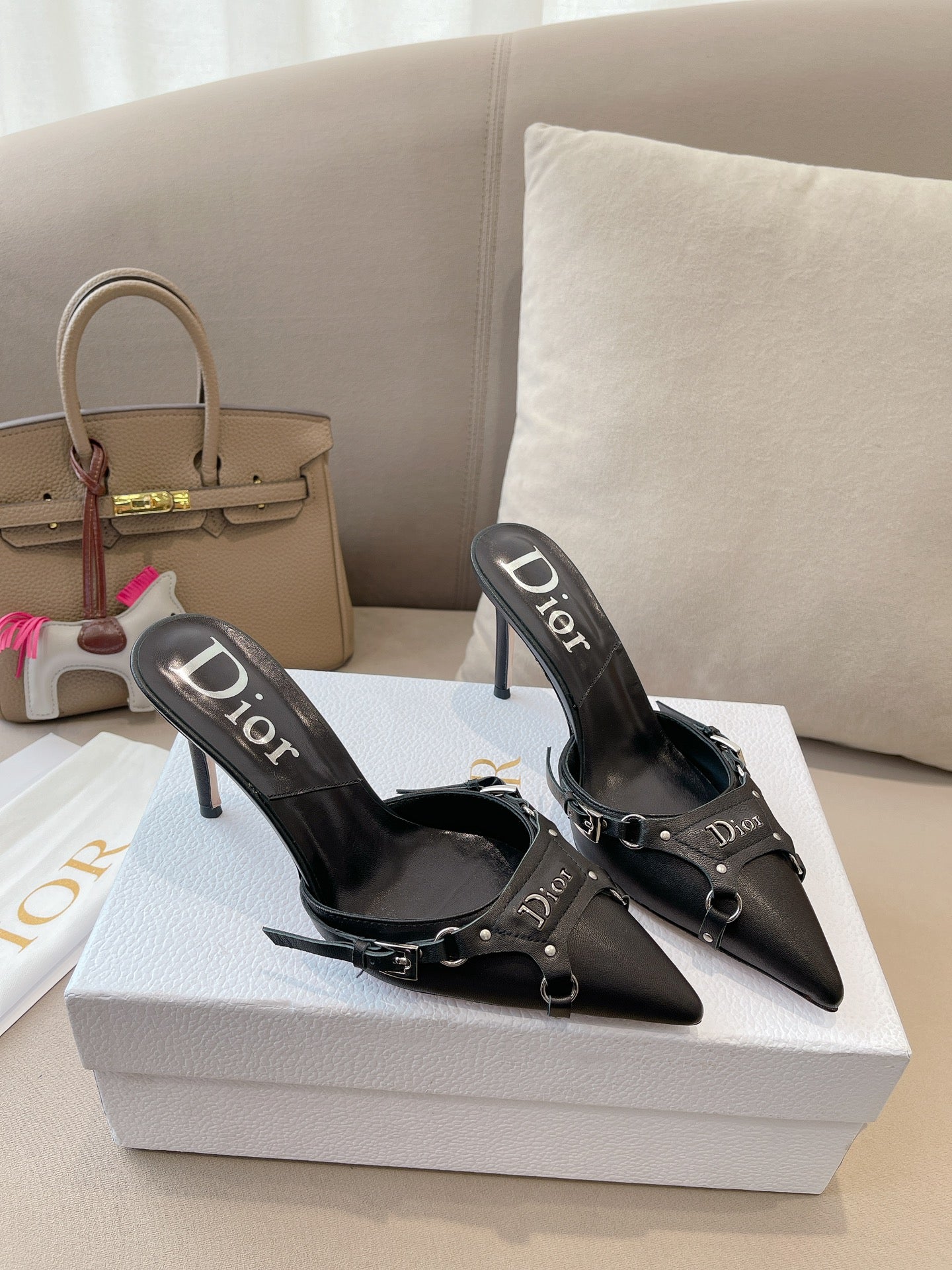 HEELED MULES 85MM IN BLACK LAMBSKIN