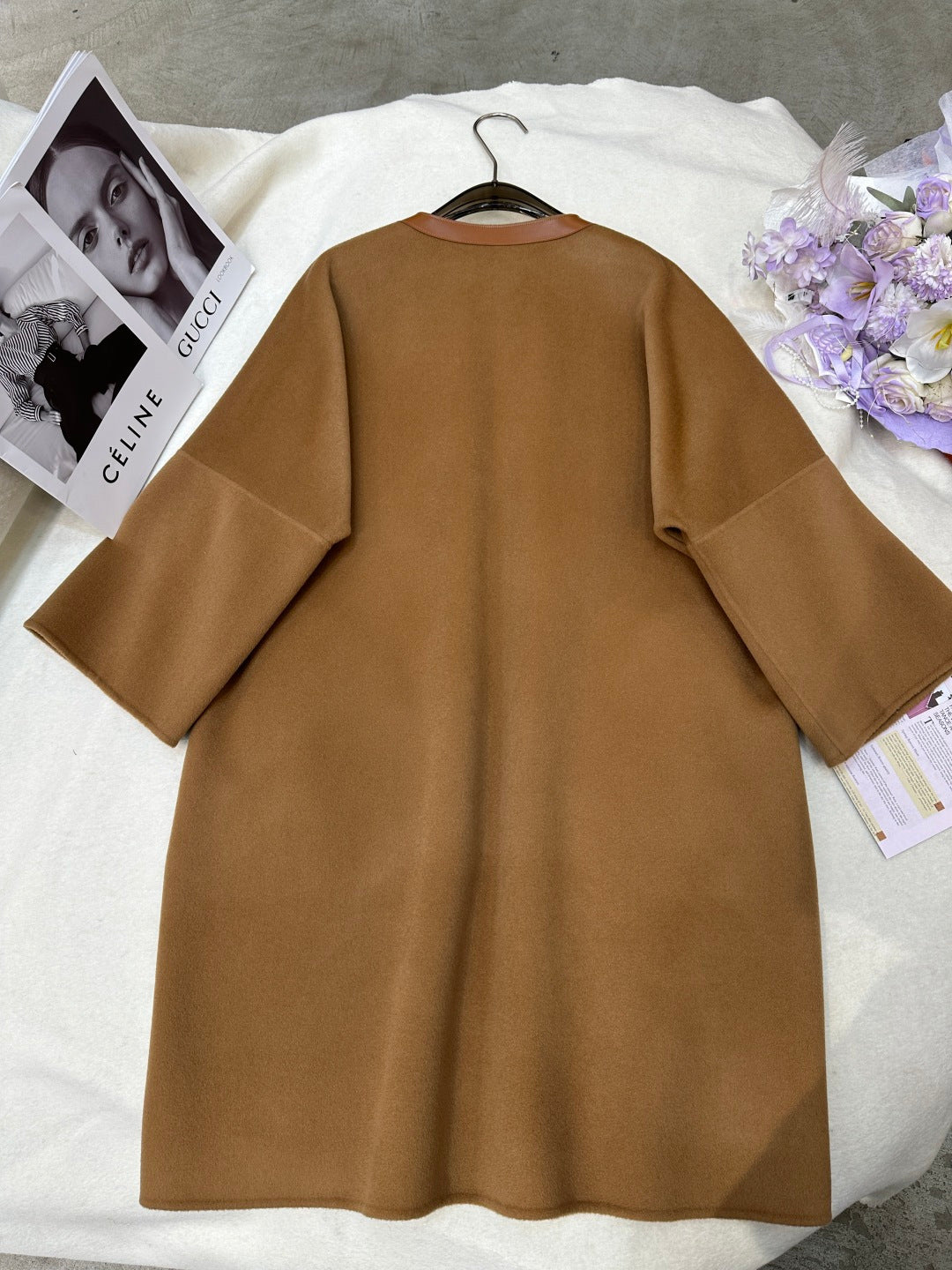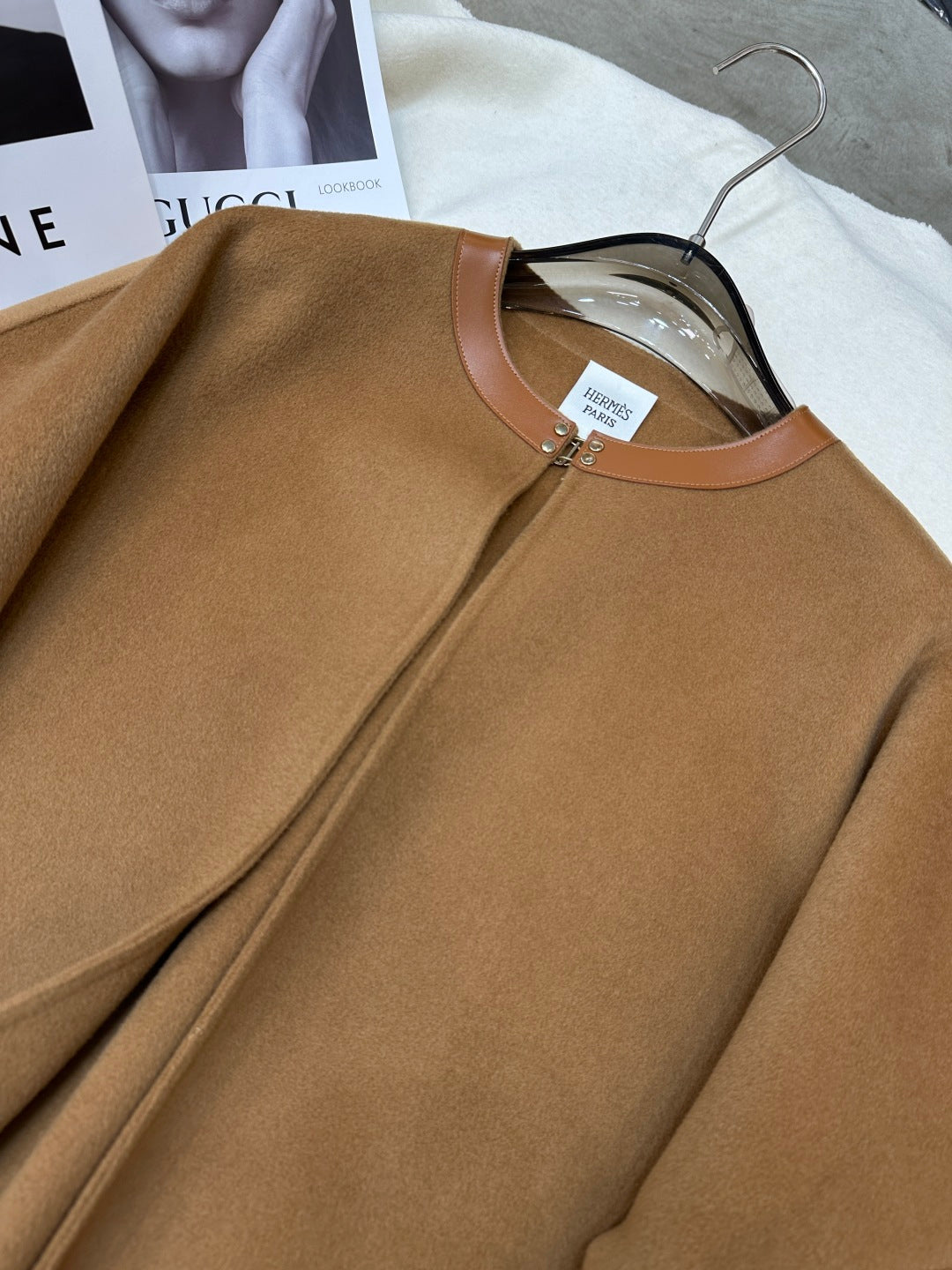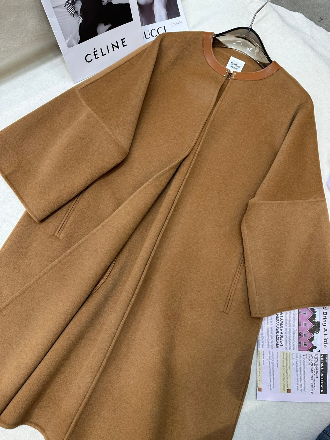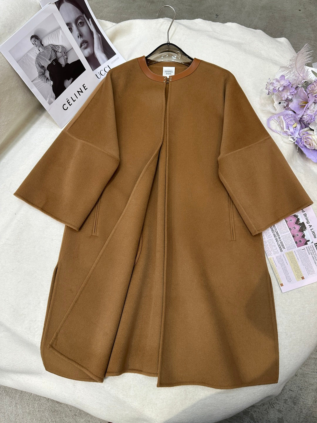 HERMES 25S LONG CASHMERE COAT WITH ROUND NECK 277