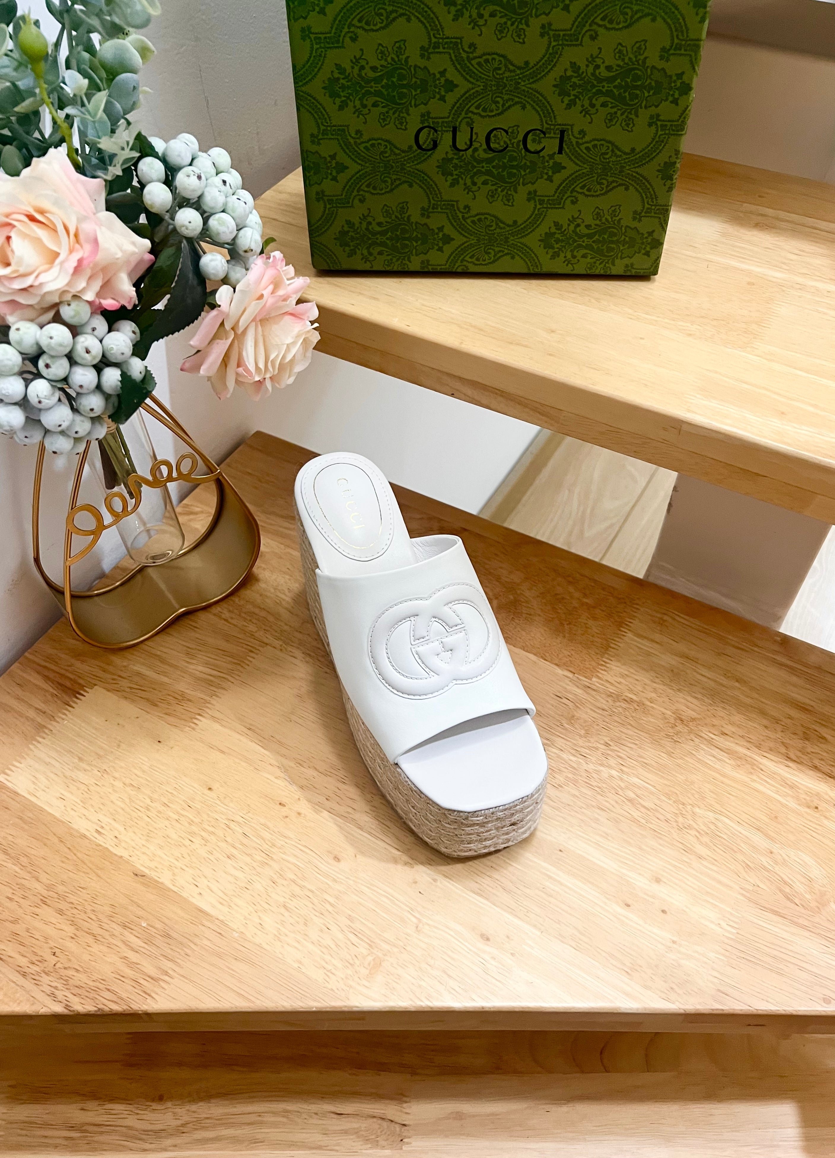 HIGH 10CM WEDGE SANDALS IN WHITE SHEEPSKIN
