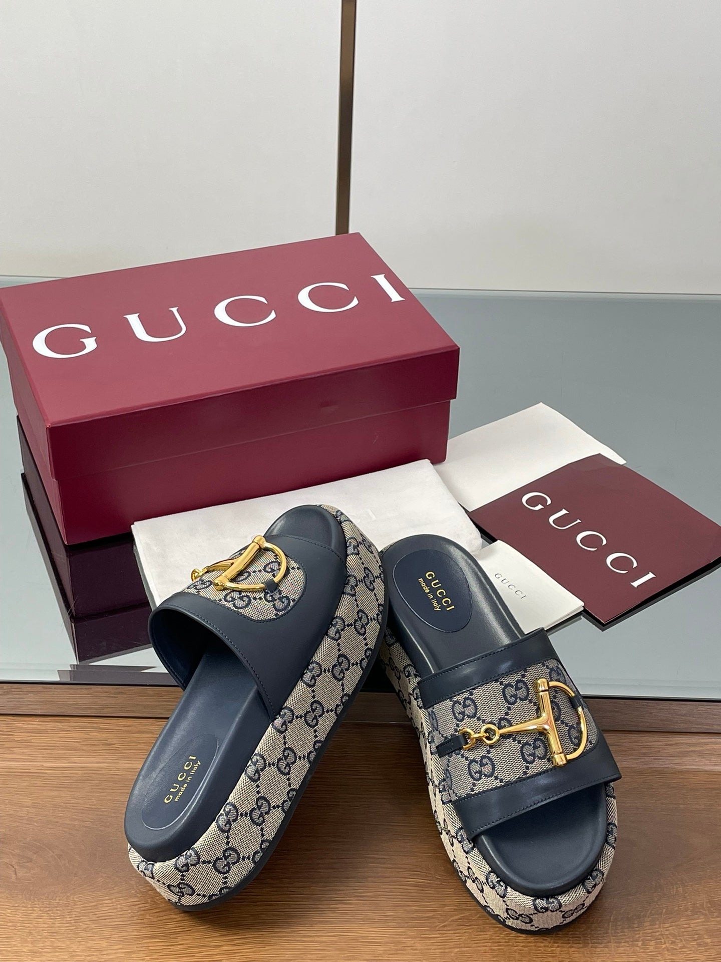 HIGH 5.5 CM WEDGE SANDALS IN BLACK AND BEIGE CALFSKIN AND FABRIC