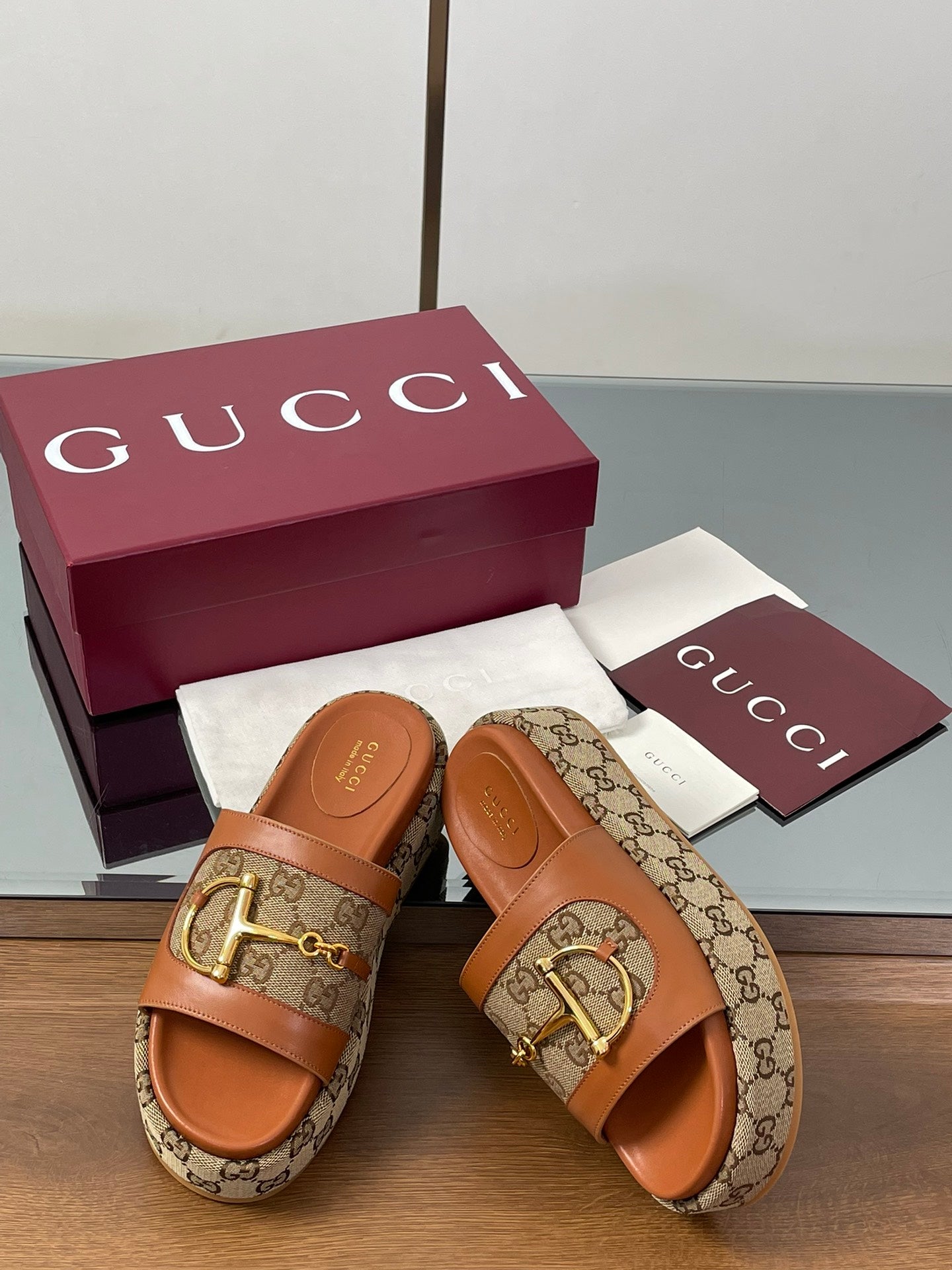 HIGH 5.5 CM WEDGE SANDALS IN BURNT BROWN MIX BEIGE CALFSKIN AND FABRIC