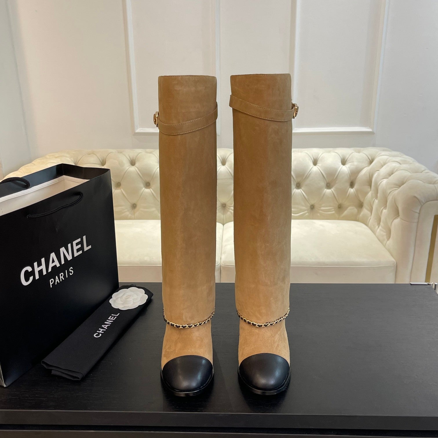 HIGH BOOTS 6.5 CM IN CIDER BROWN SUEDE AND BLACK CALFSKIN