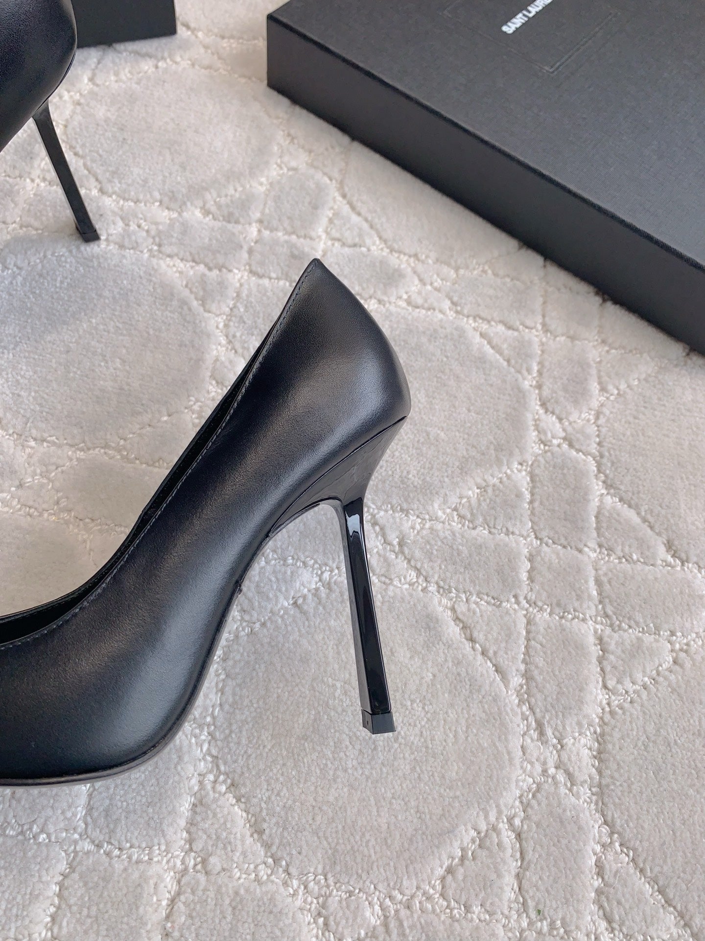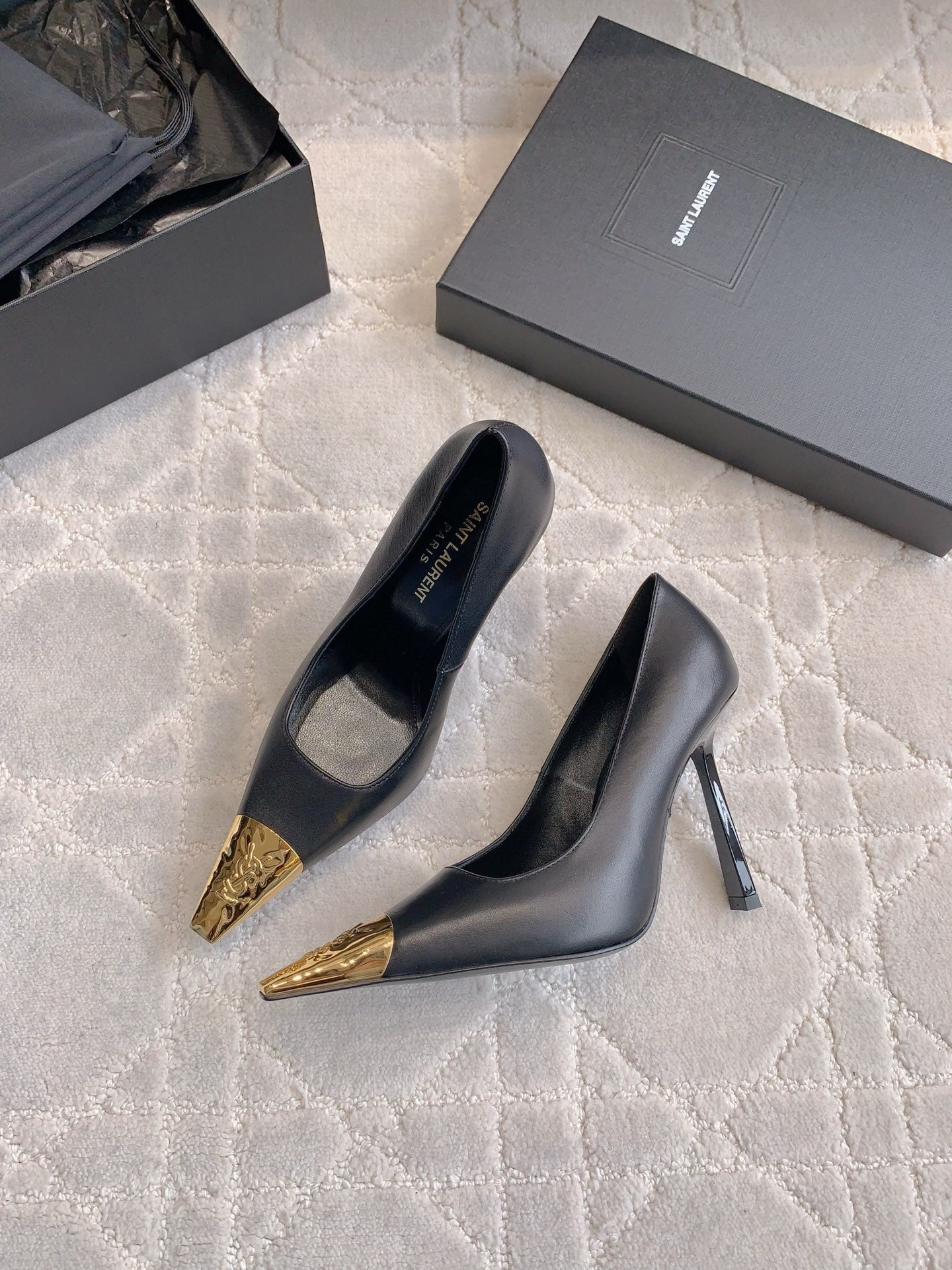 HIGH HEEL 10 CM PUMP IN BLACK CALFSKIN WITH GOLD HARDWARE