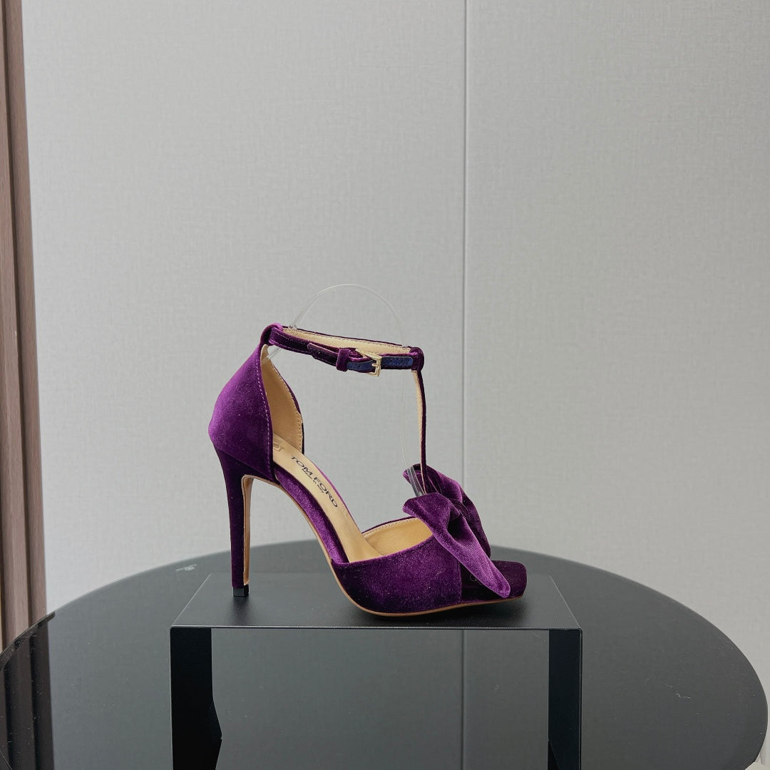 HIGH HEEL 10 SANDAL IN WINE PURPLE VELVET WITH BOW