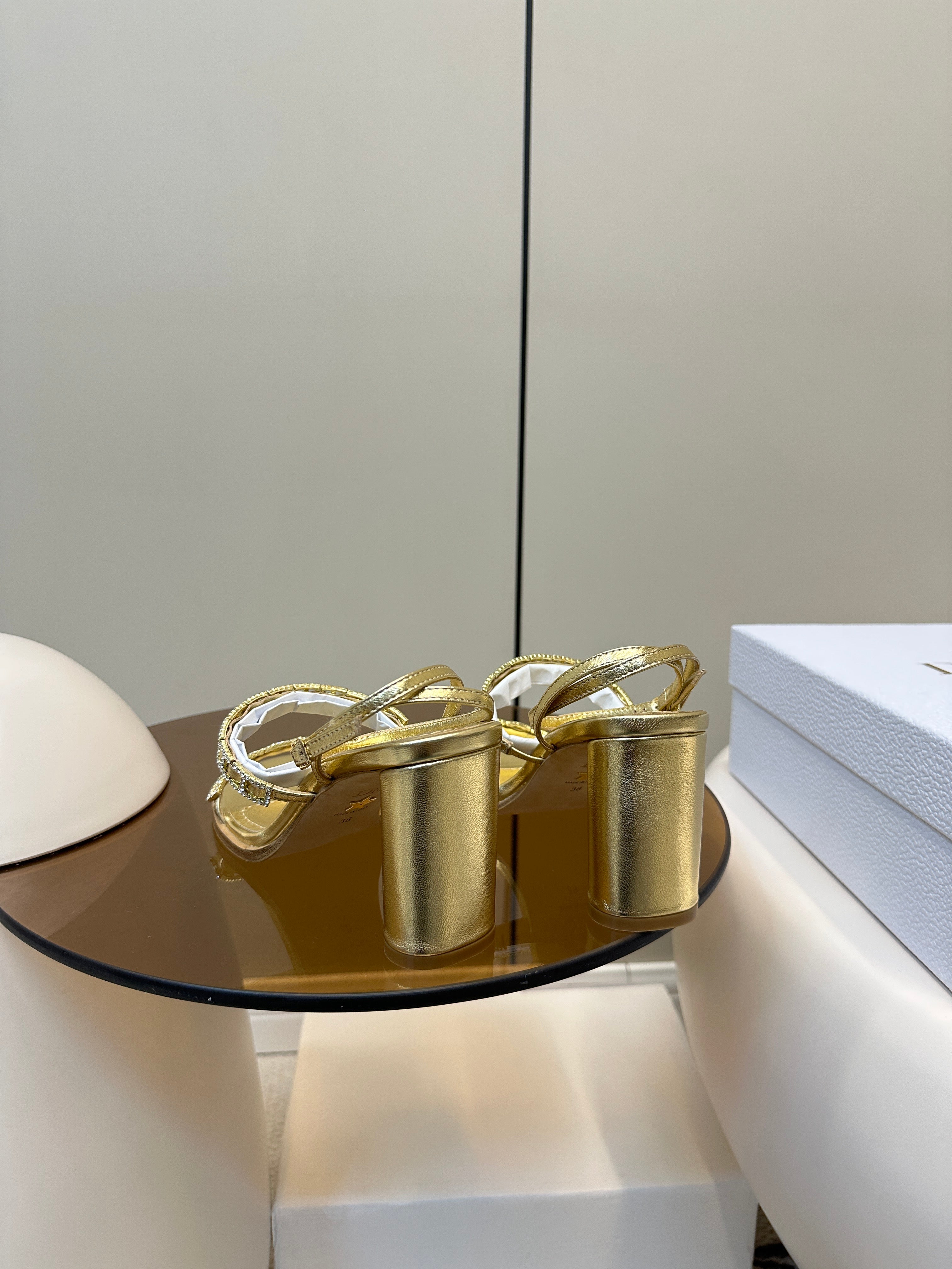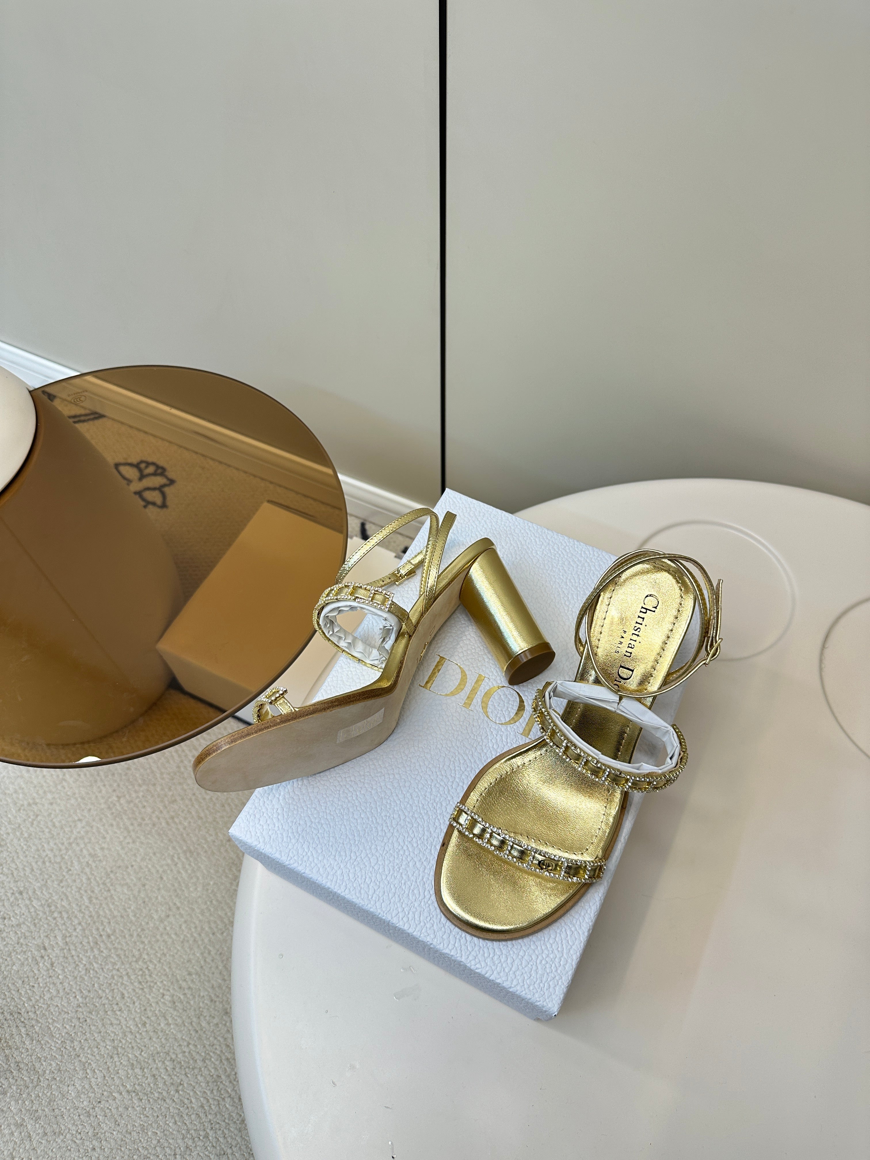HIGH HEEL 25S SANDALS 85MM IN SHINY GOLD CALFSKIN RHINESTONES STRAP