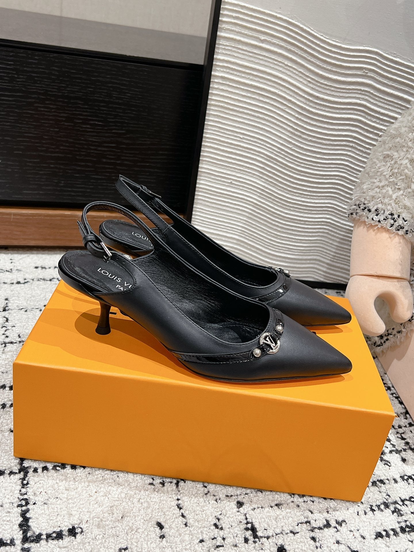 HIGH HEEL 4 CM SLINGBACKS IN BLACK CALFSKIN