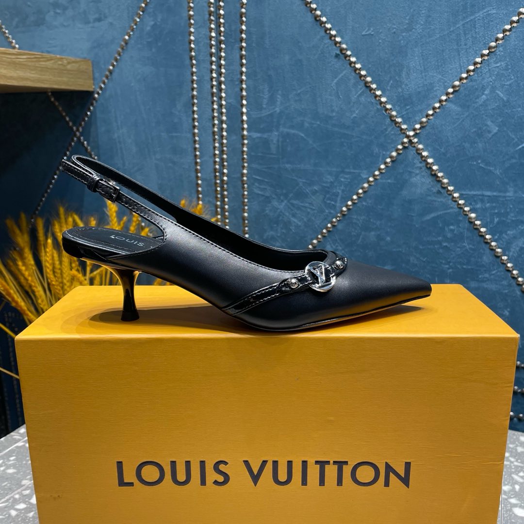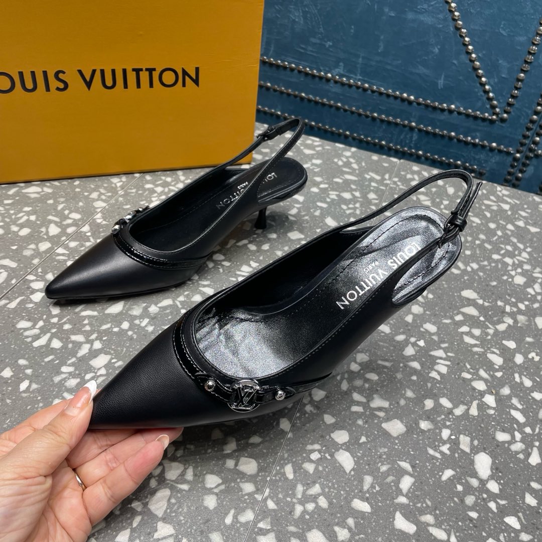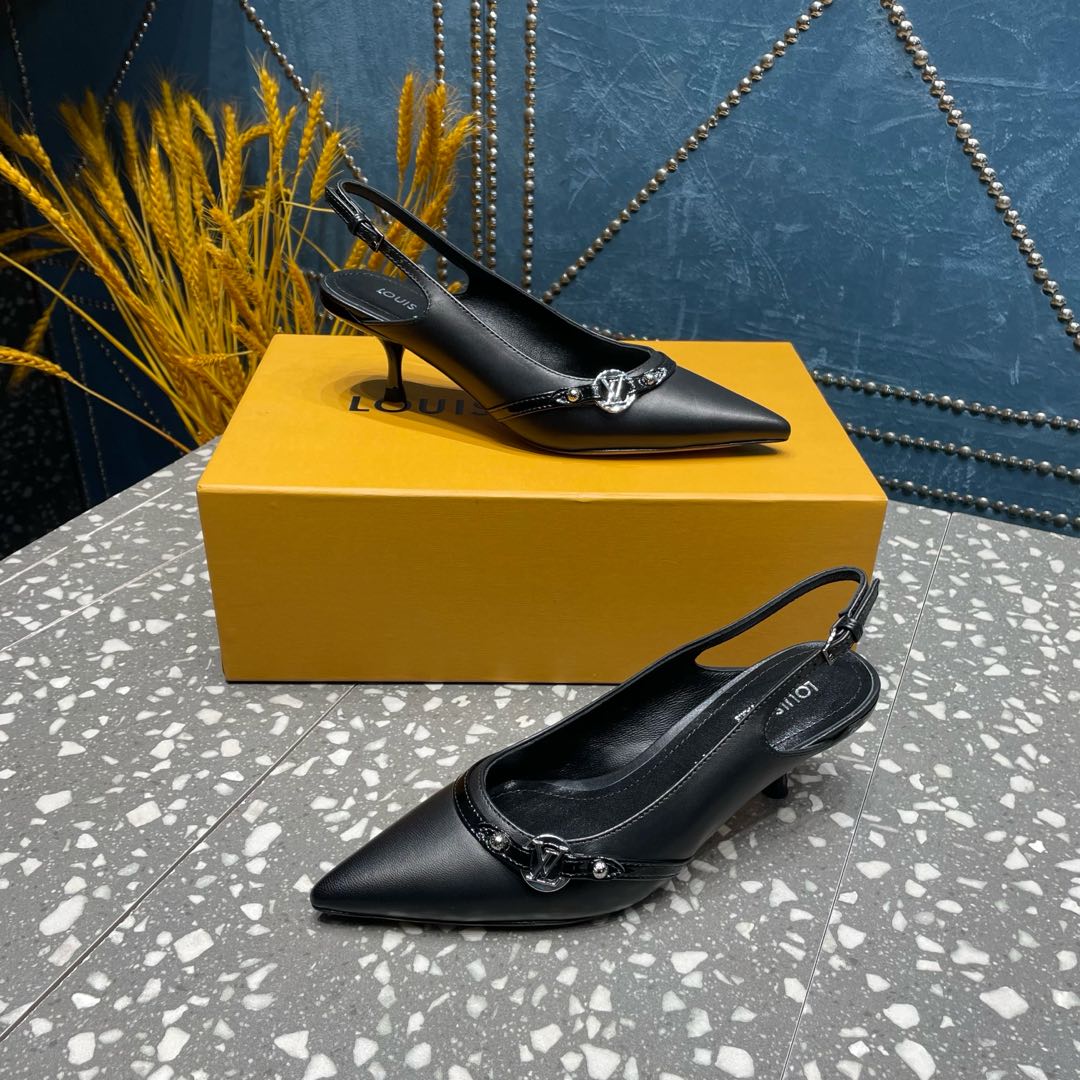 HIGH HEEL 55 MM SLINGBACKS IN BLACK SHEEPSKIN