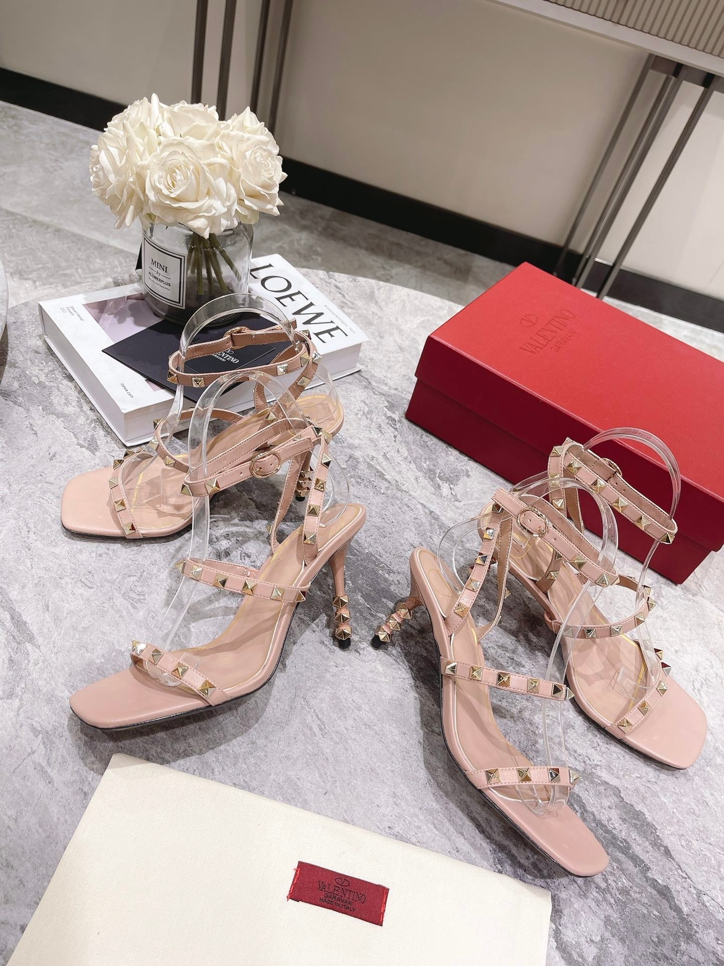 HIGH HEEL 6 CM SANDAL IN PEACHY PINK LAMBSKIN WITH STUDS