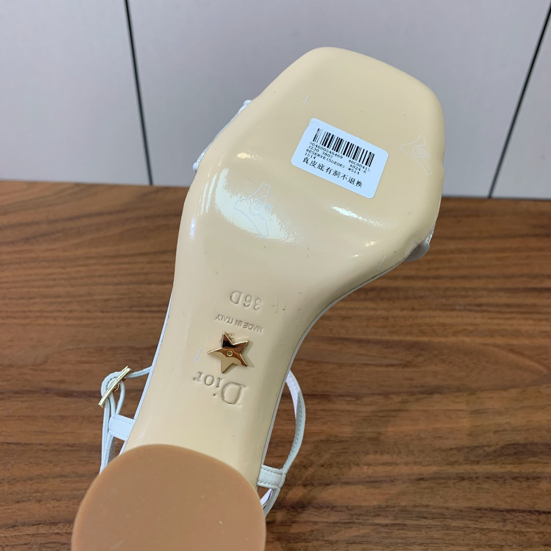 HIGH HEEL EMBROIDERED SANDAL IN WHITE CALFSKIN AND WOVEN STRAPS