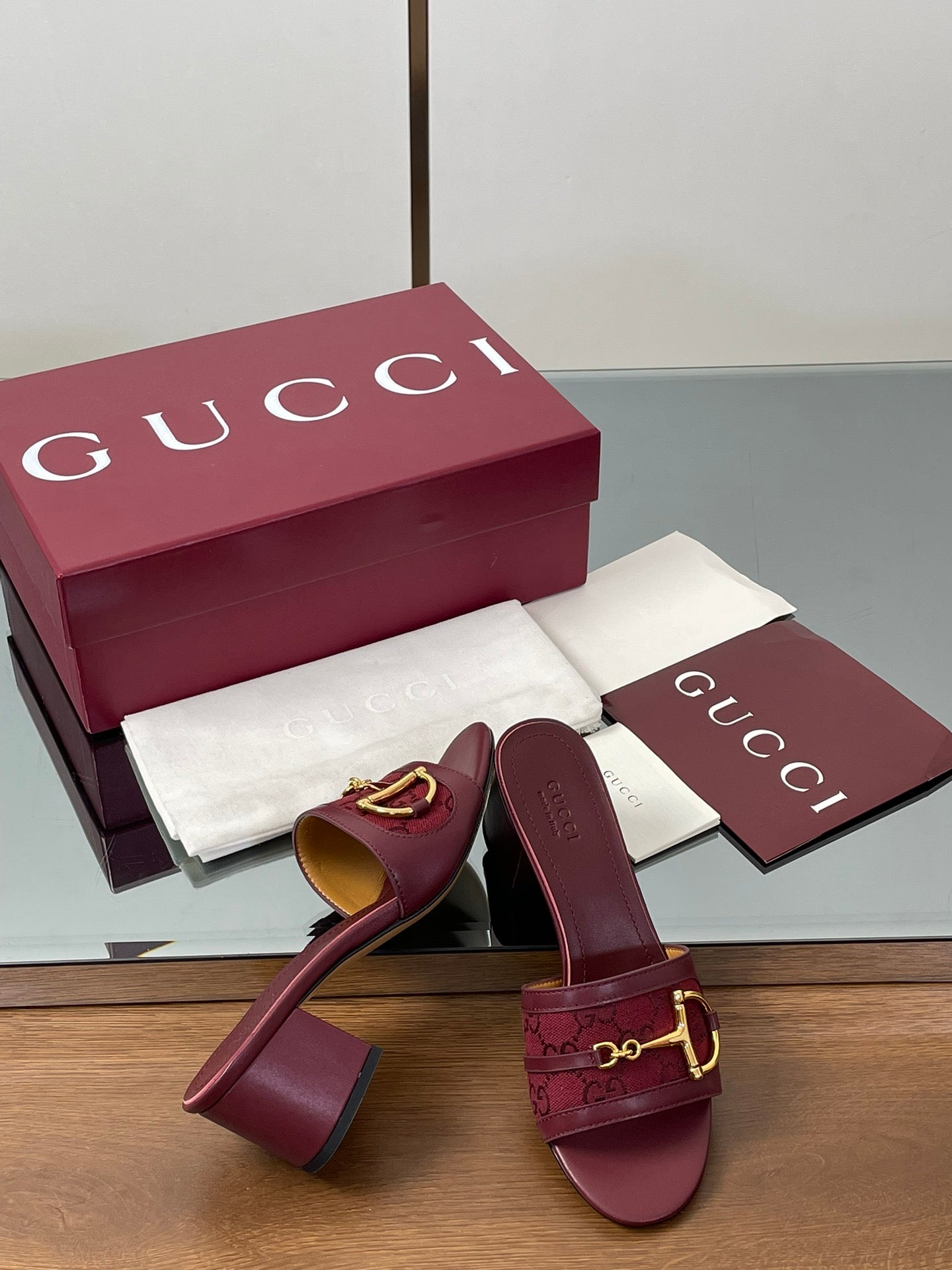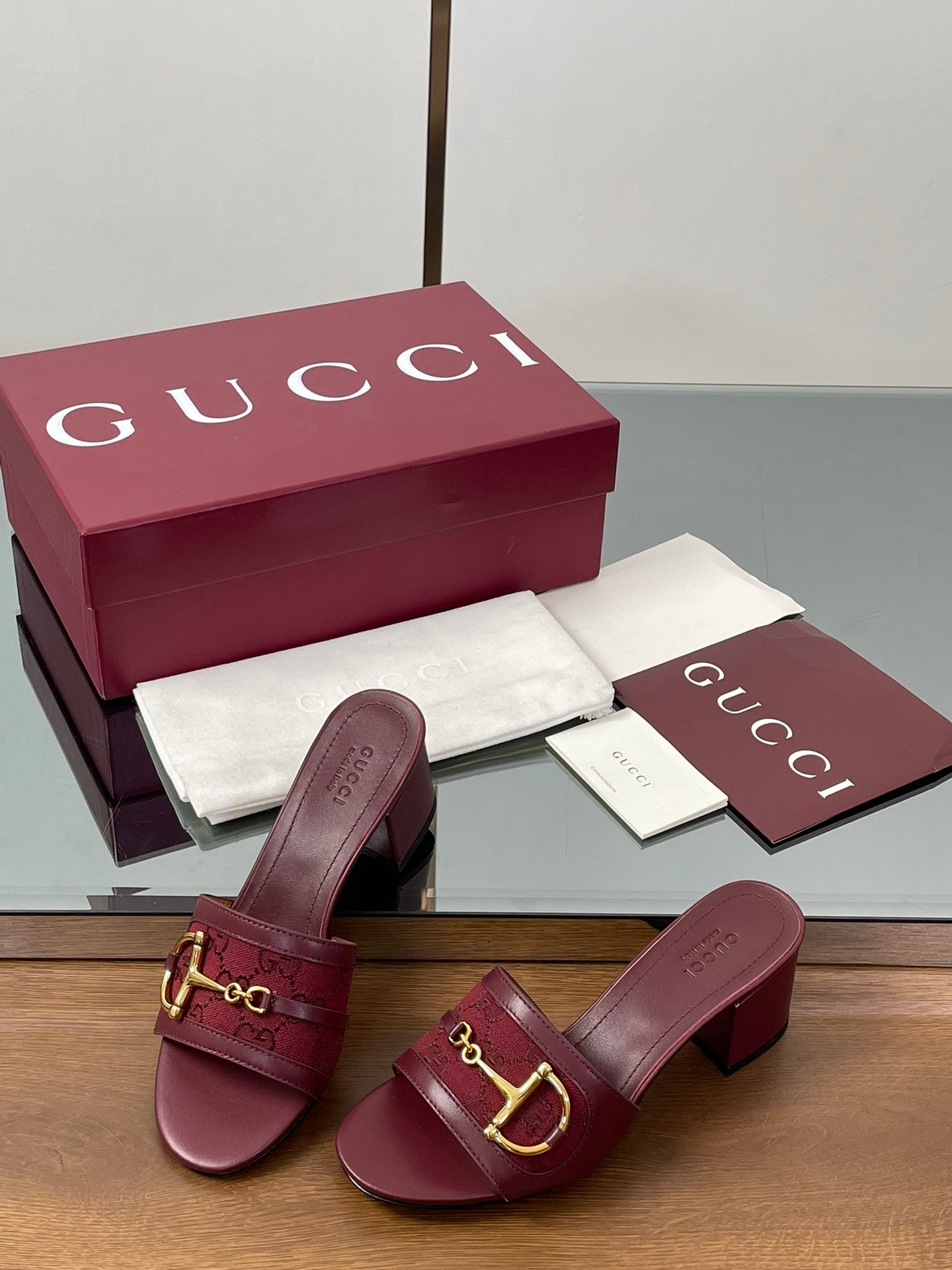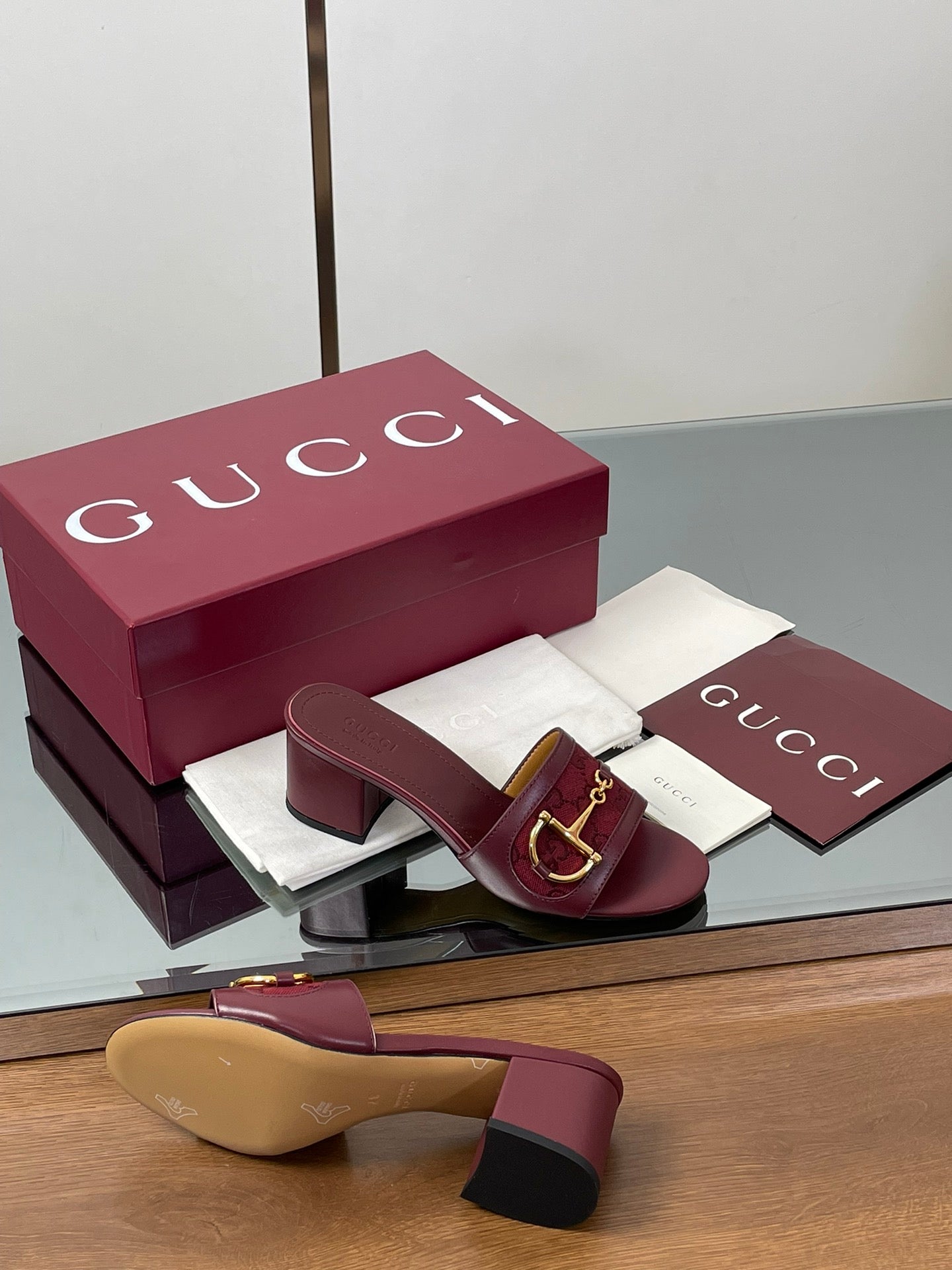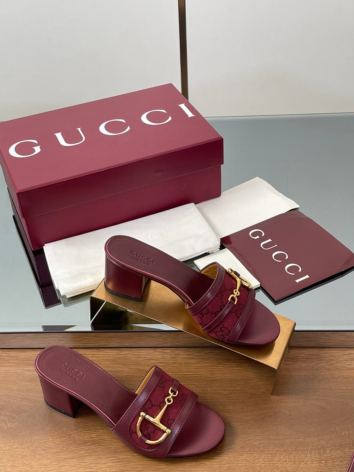 HIGH HEEL MULE 5.5 CM IN DARK RED CALFSKIN MIX FABRIC AND GOLD HARDWARE