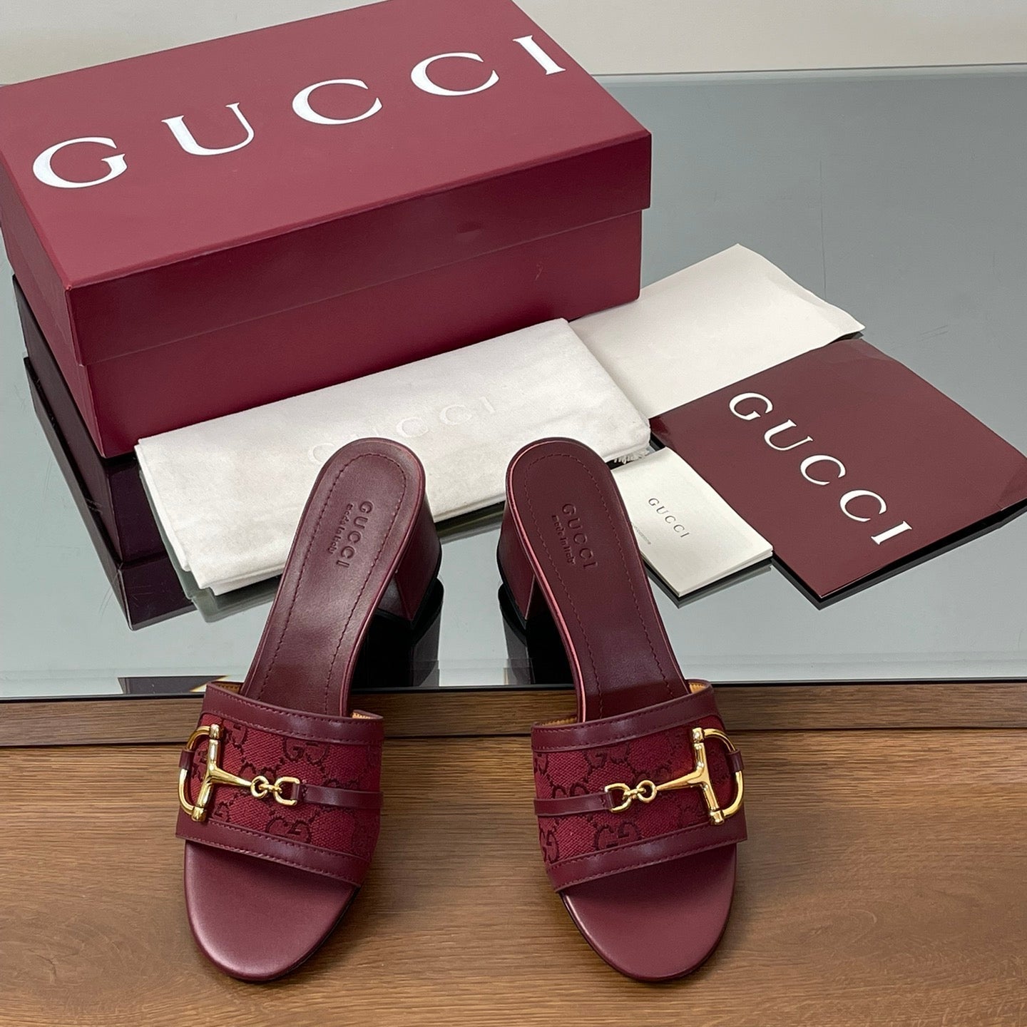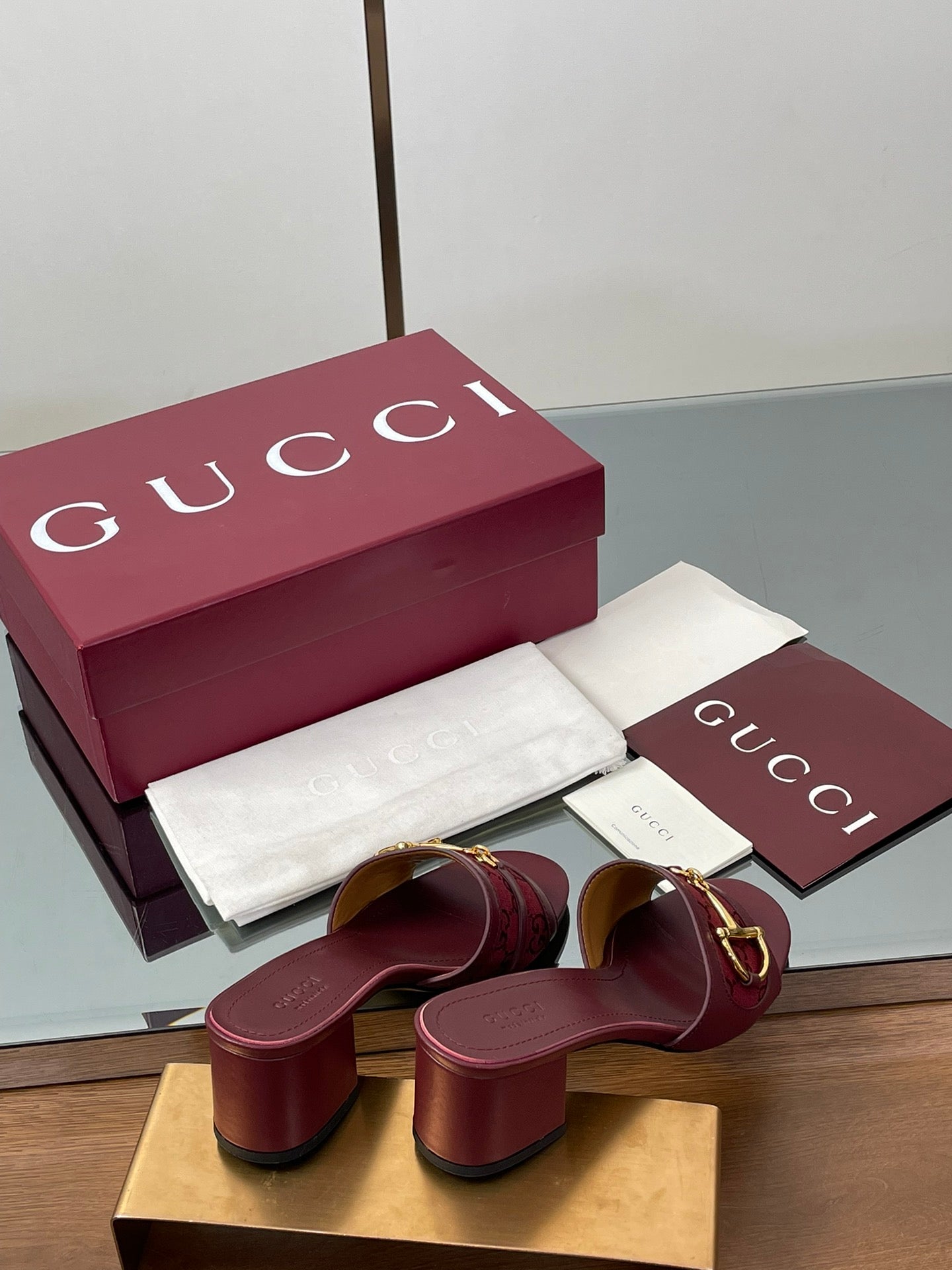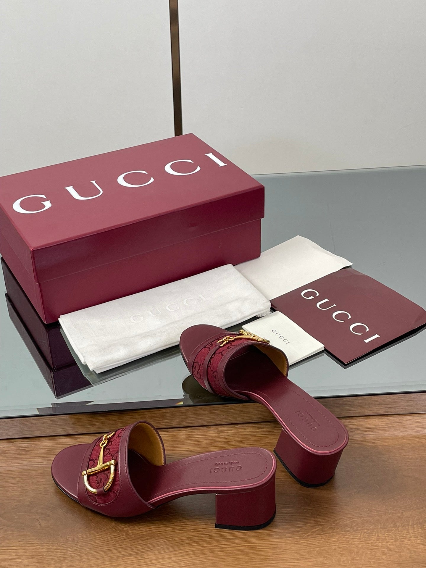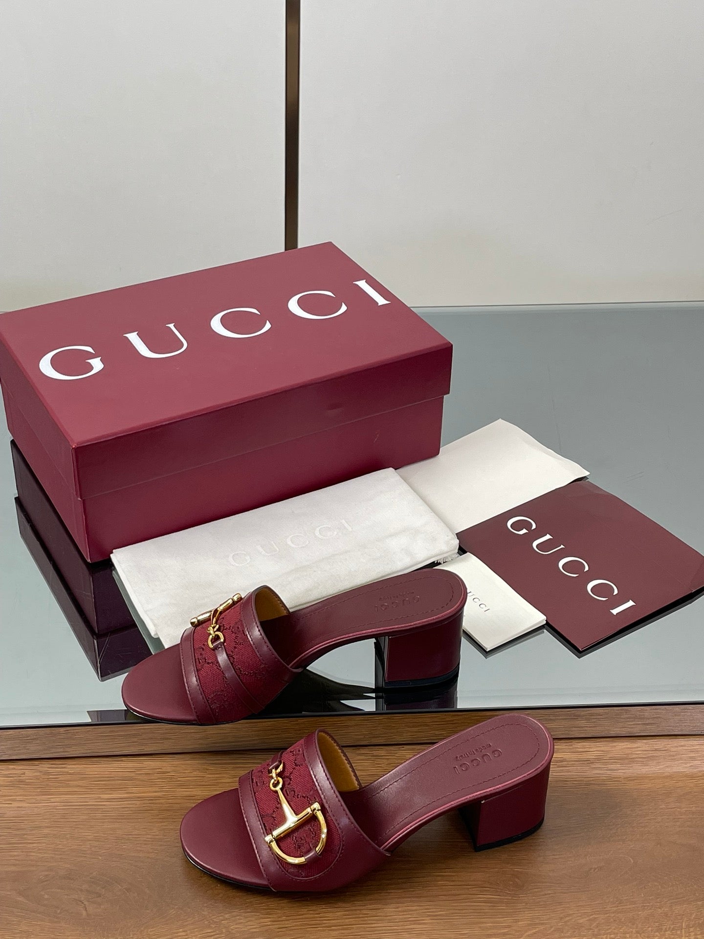 HIGH HEEL MULE 5.5 CM IN DARK RED CALFSKIN MIX FABRIC AND GOLD HARDWARE