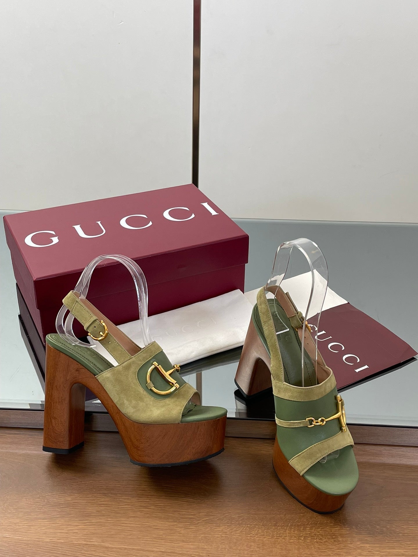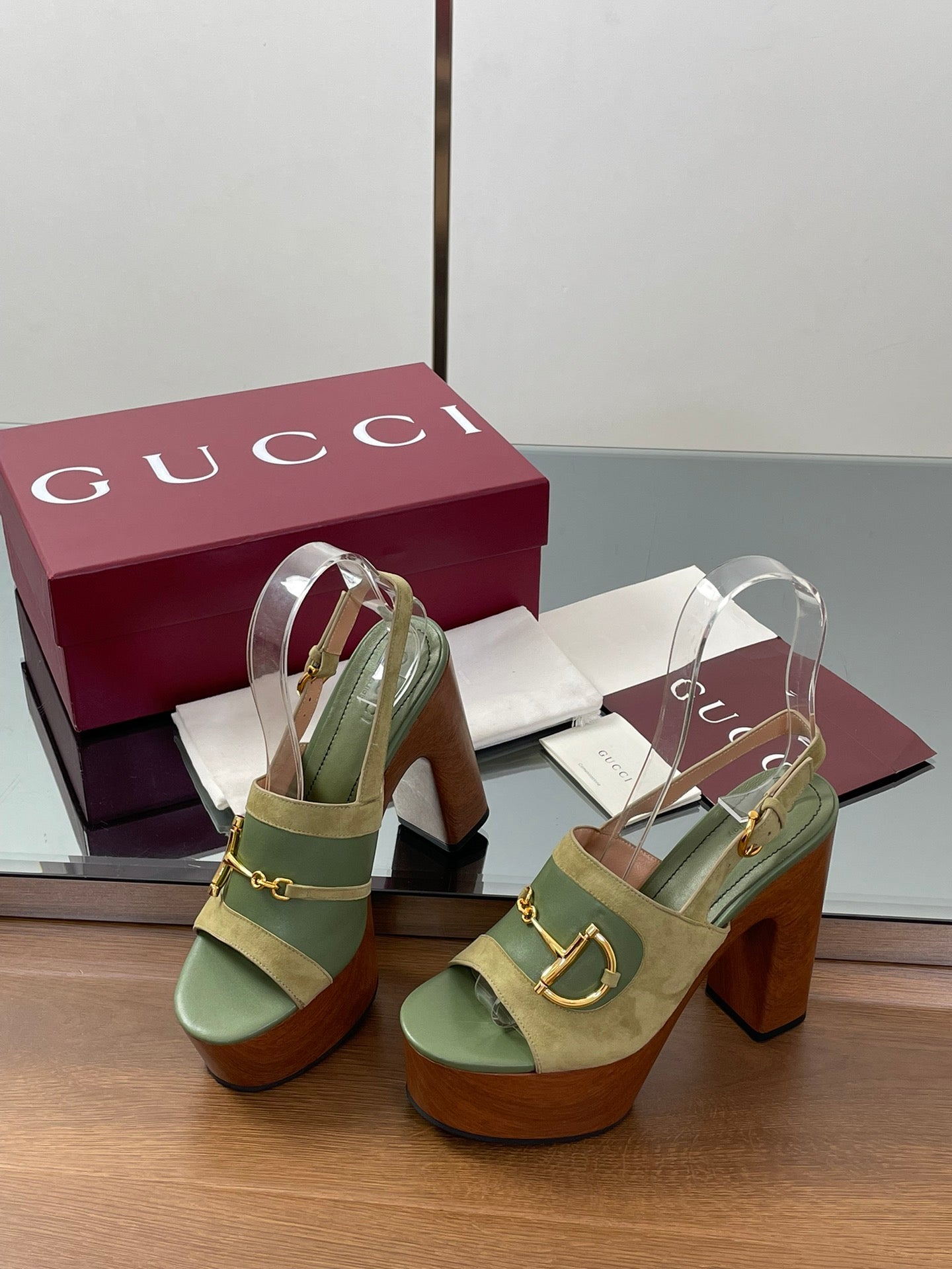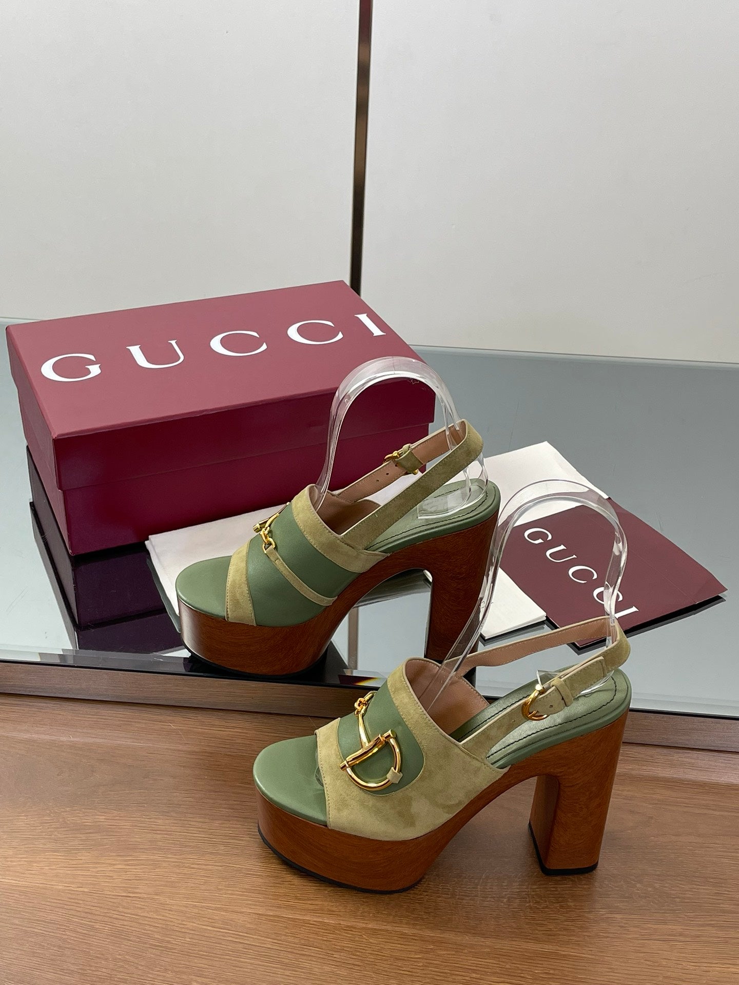 HIGH HEEL SANDALS 13 CM IN MOSS GREEN CALFSKIN MIX SUEDE GOLD HARDWARE