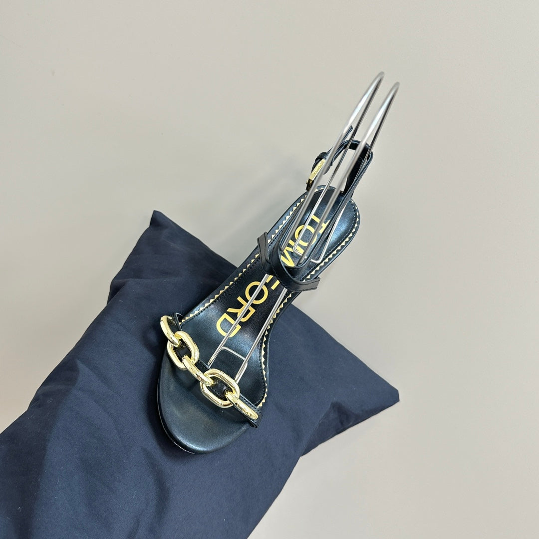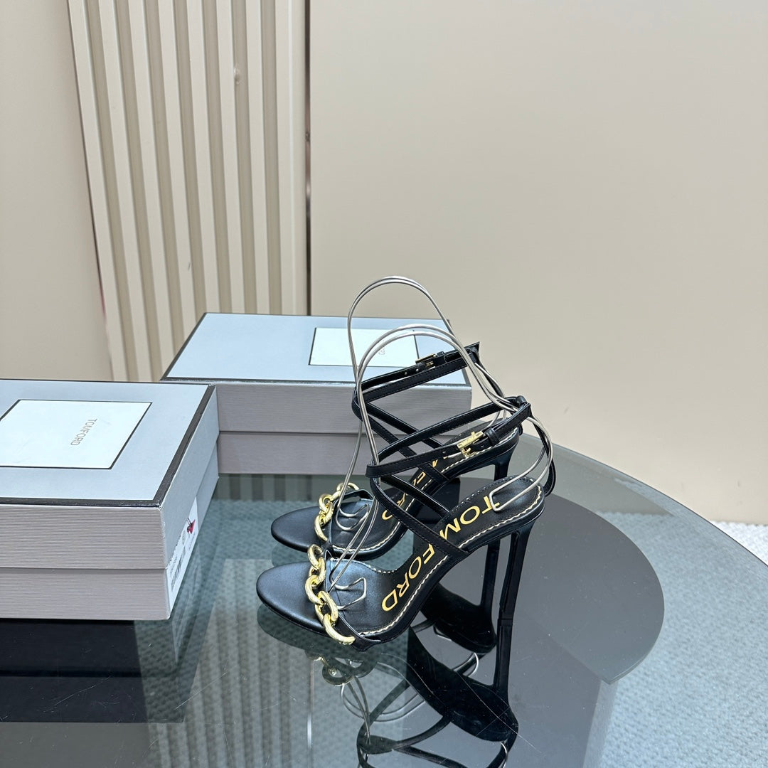 HIGH-HEELED 10 CM SANDAL IN BLACK LAMBSKIN WITH GOLD HARDWARE