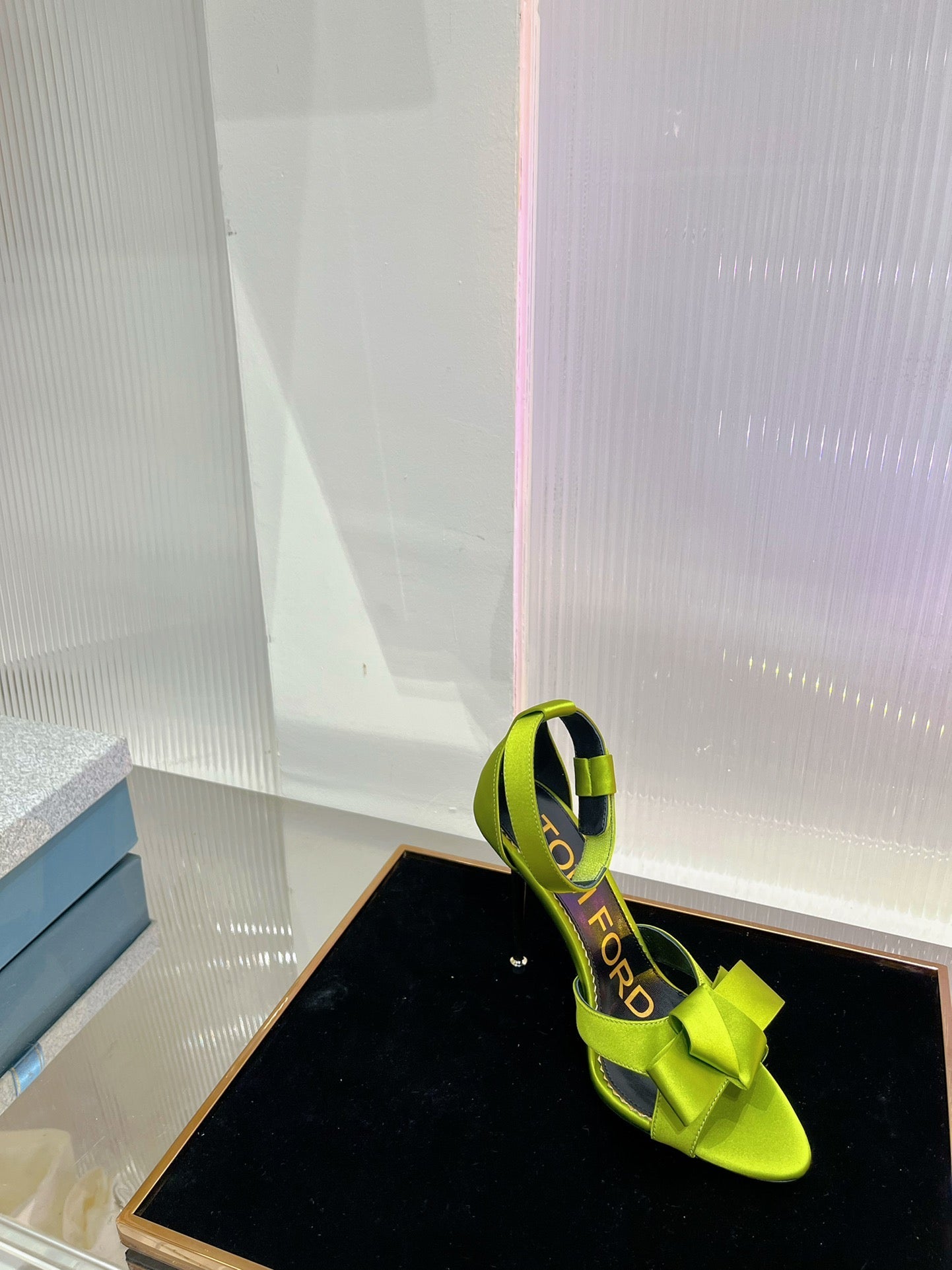HIGH HEELS 11 CM IN PEAR GREEN PURE SILK AND LAMBSKIN