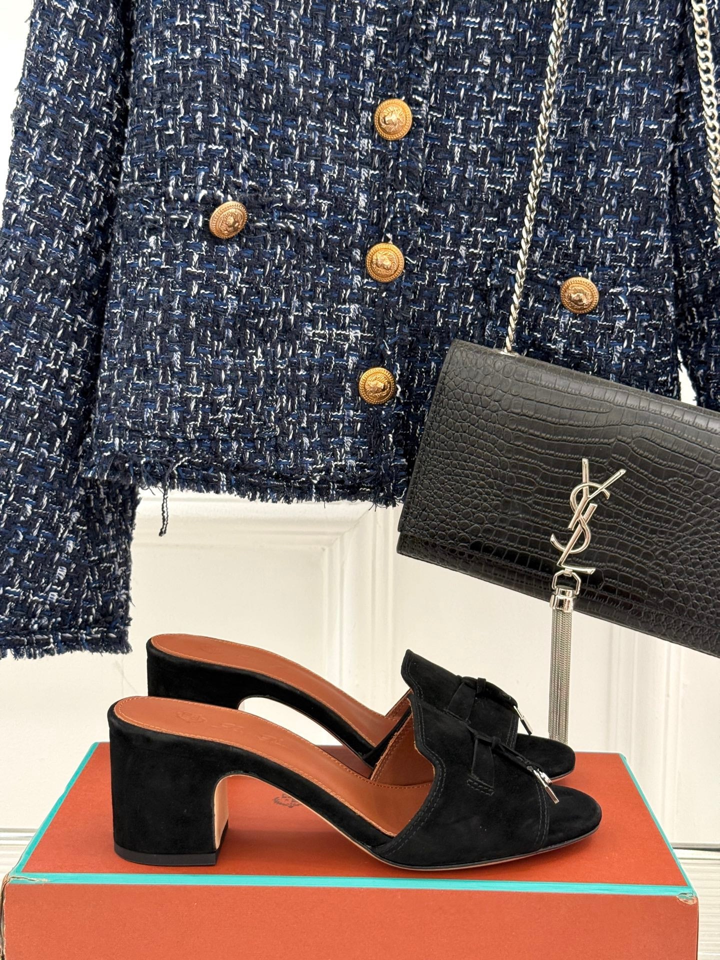 HIGH HEELS IN BLACK SUEDE AND LAMBSKIN