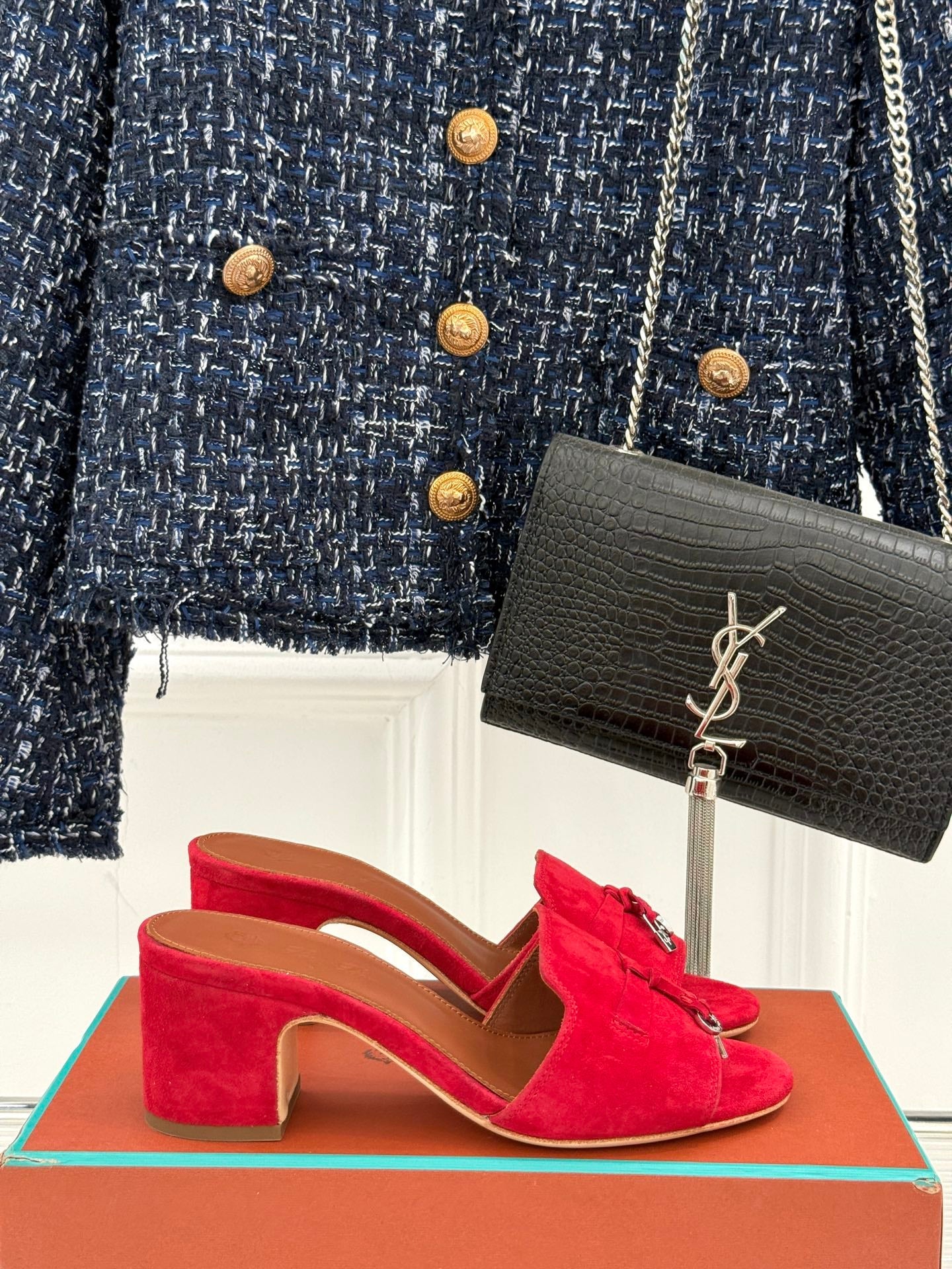 HIGH HEELS IN RED SUEDE AND LAMBSKIN