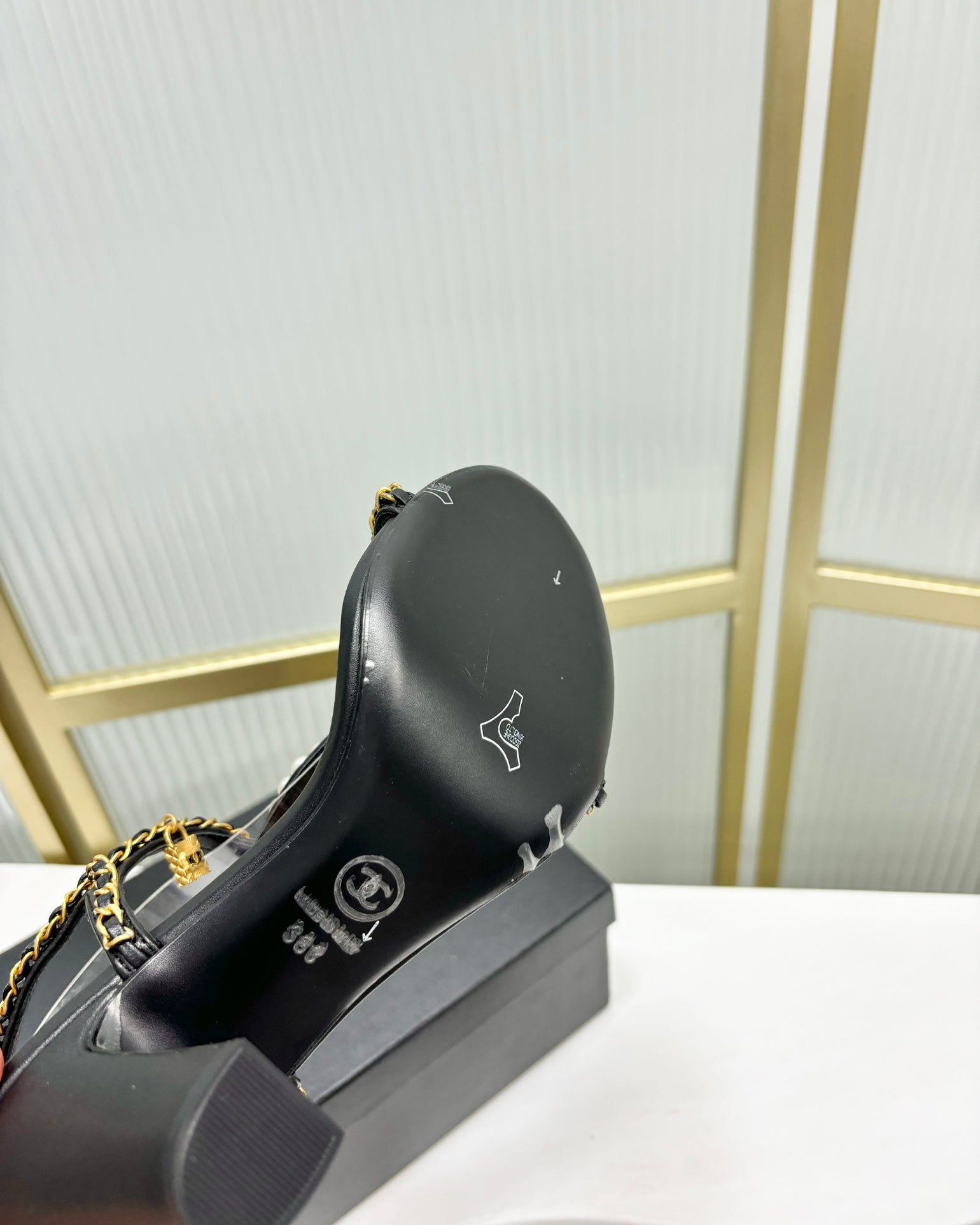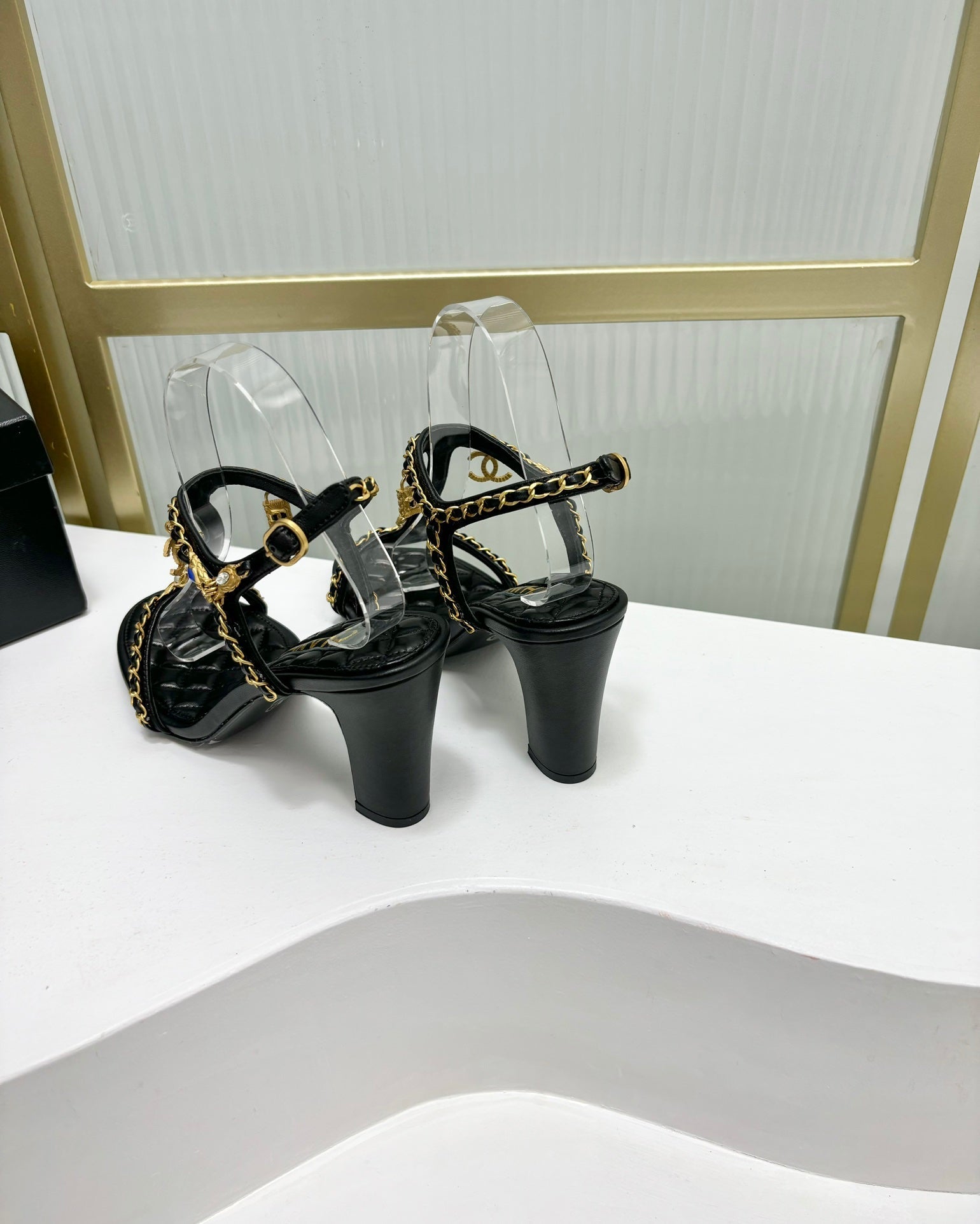 HIGH HEELS PEARL CHAIN IN BLACK COWHIDE