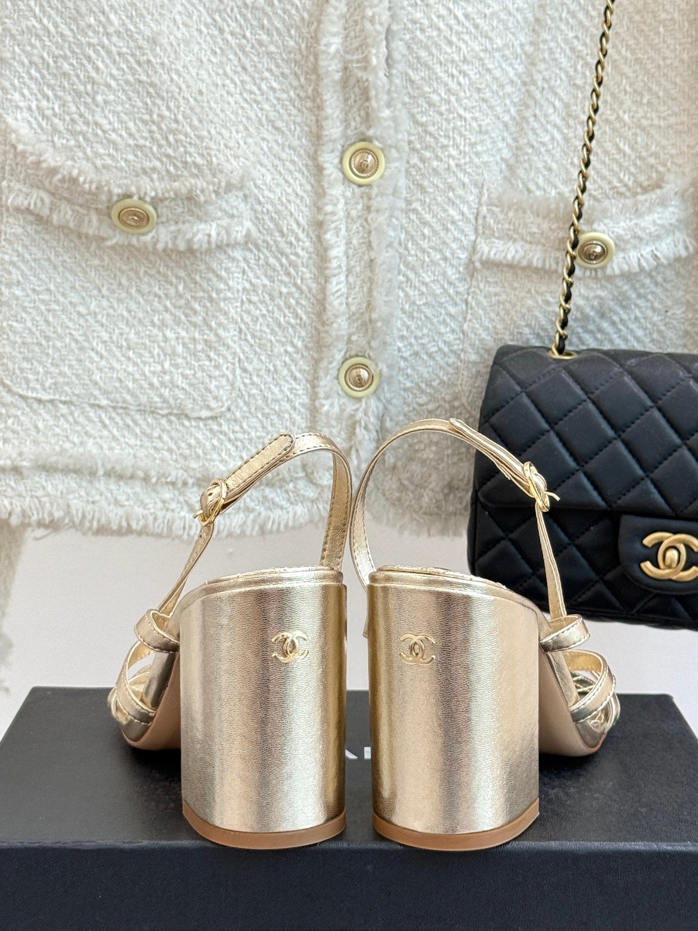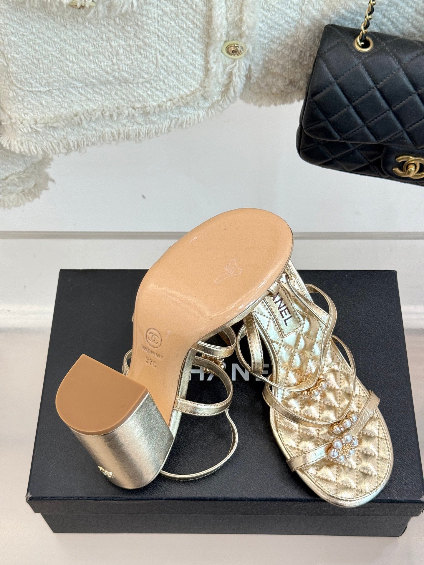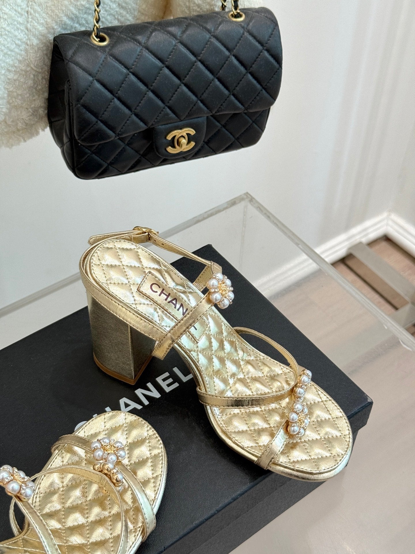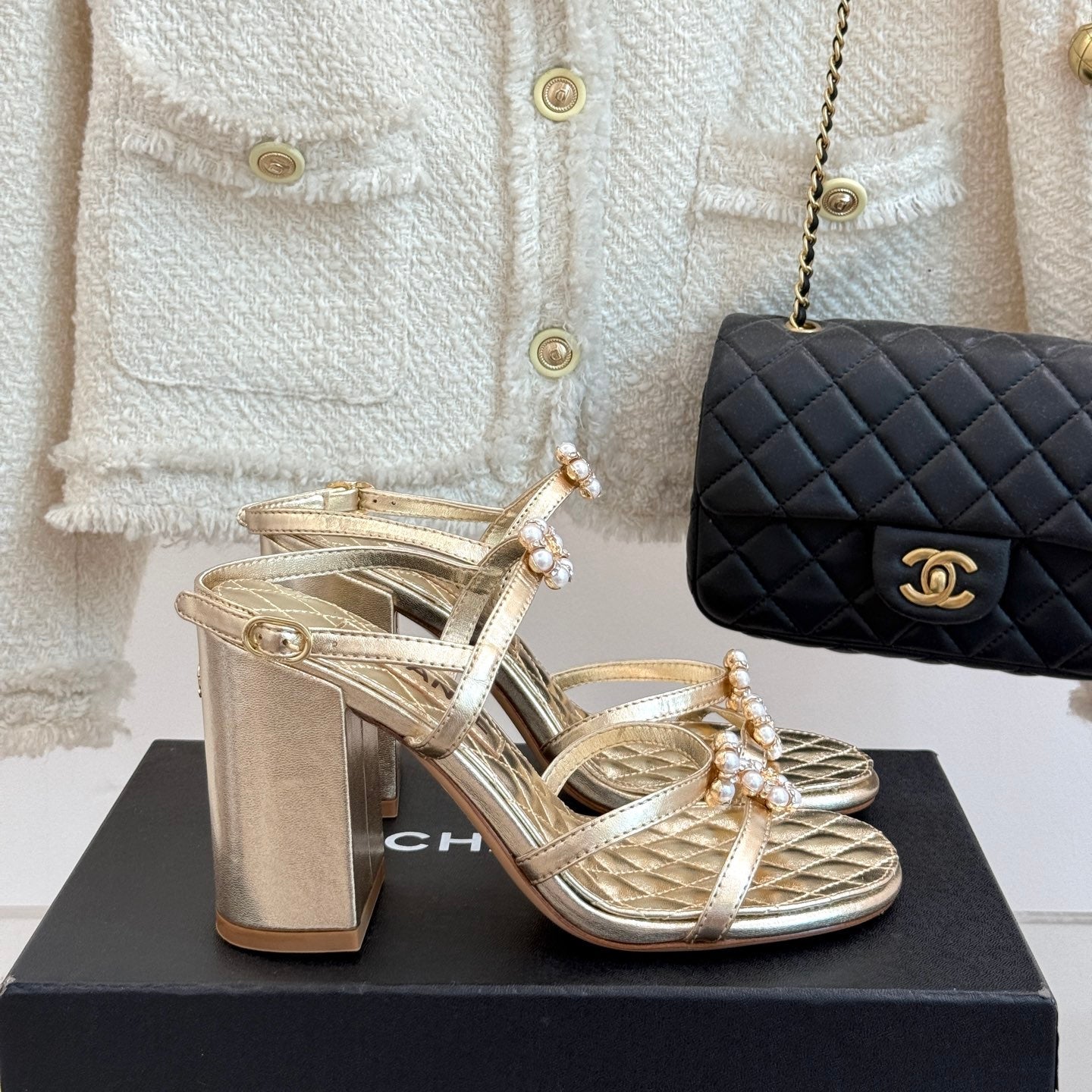 HIGH HEELS SANDAL IN GOLD LAMBSKIN PEARL FLOWERS