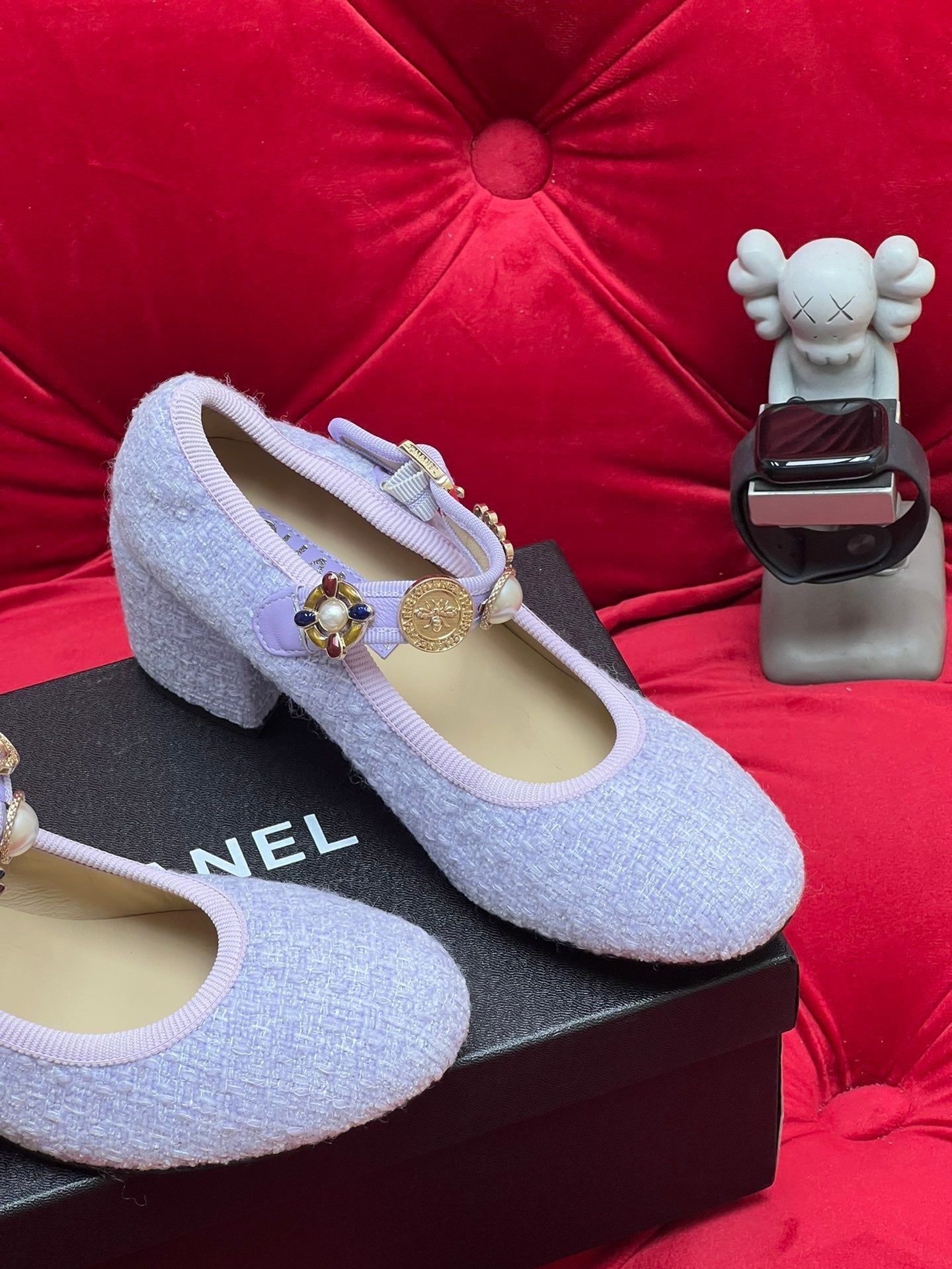 HIGH MARY JANE SHOES LIGHT BLUE WOOL TWEED
