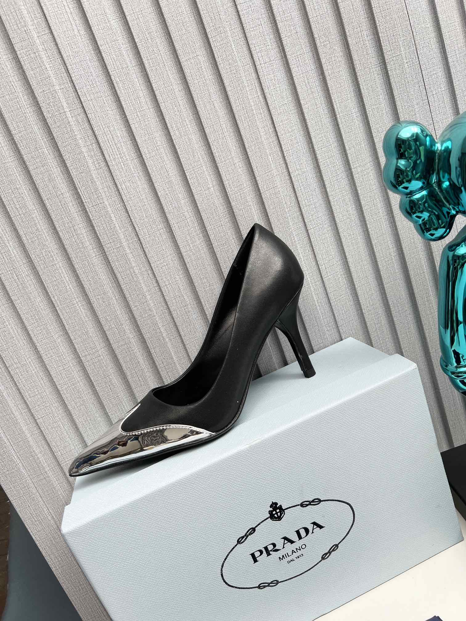 HIGH POINTED-TOE PUMPS IN SILVER MIX BLACK CALFSKIN