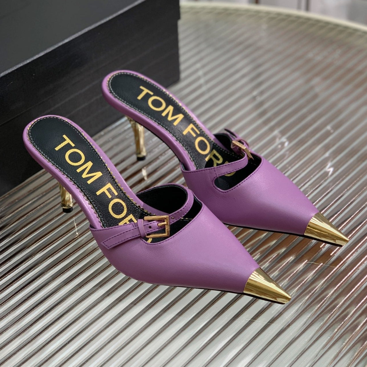 HIGH PUMP MULE 7 CM IN IRIS PURPLE CALFSKIN